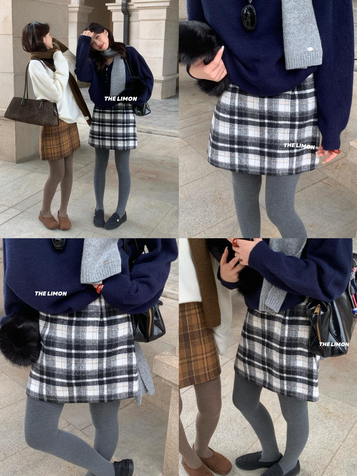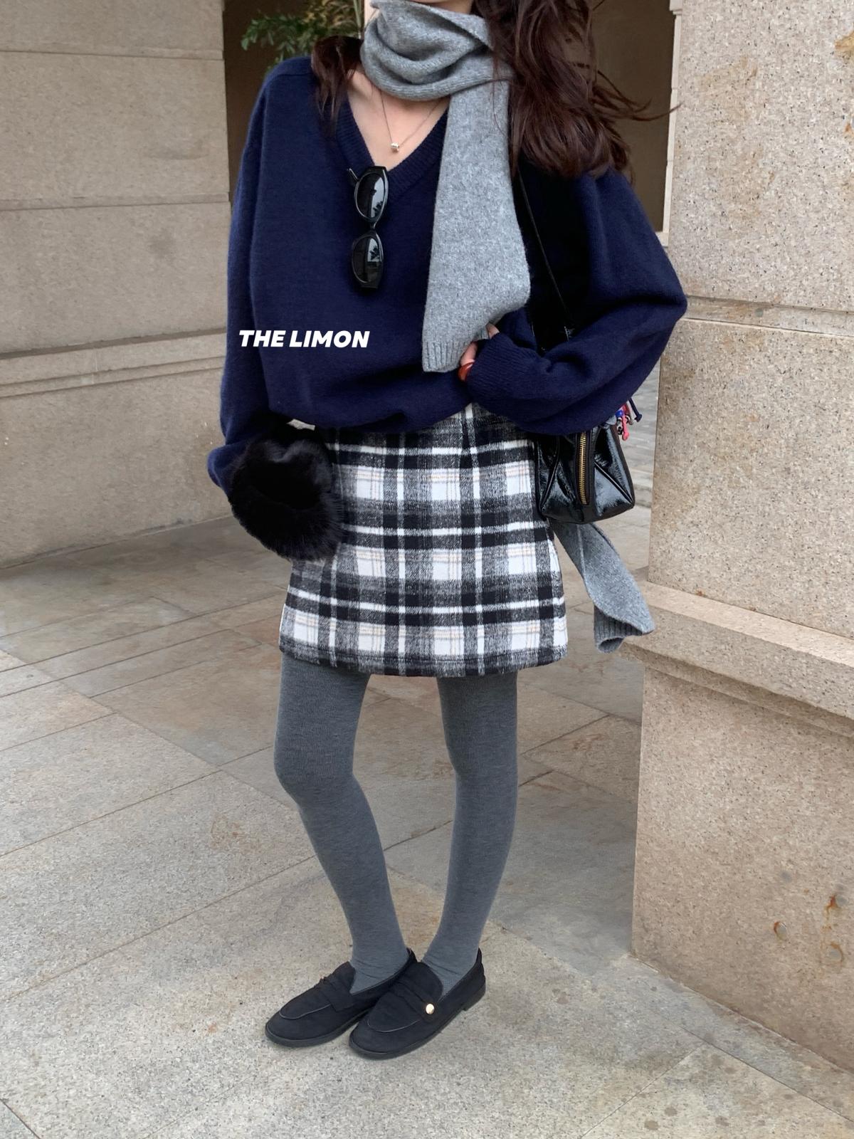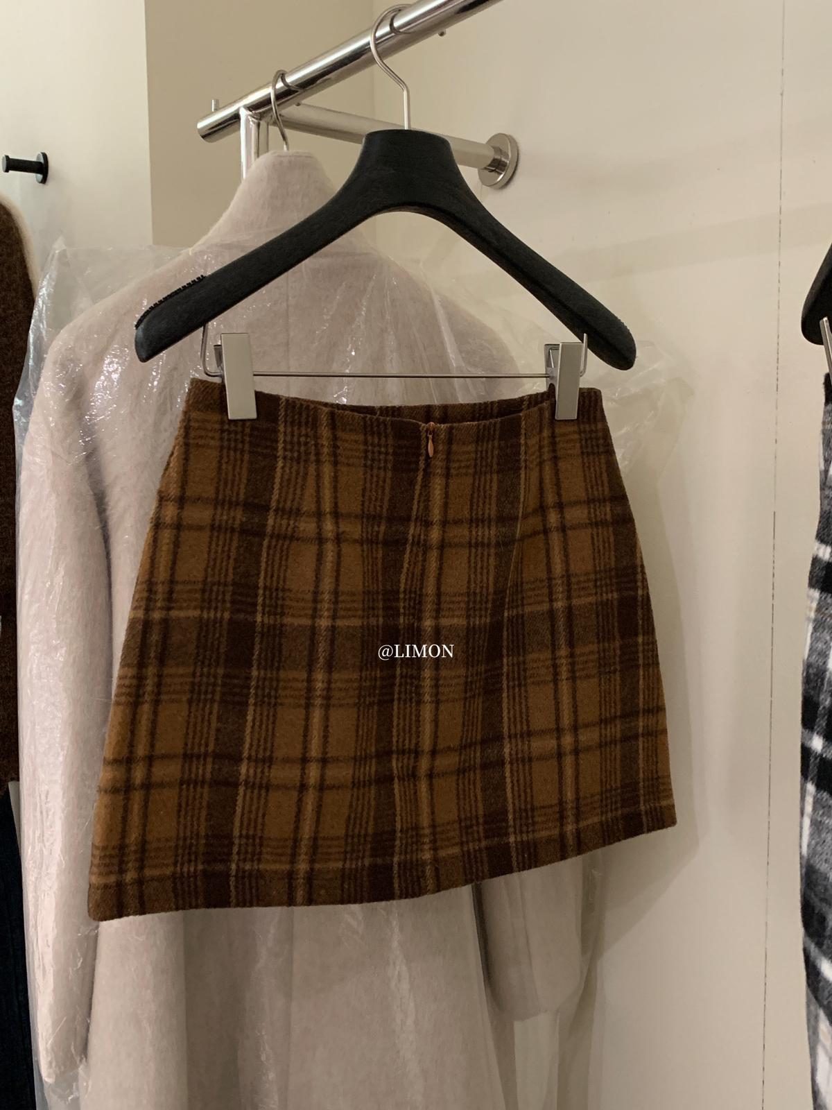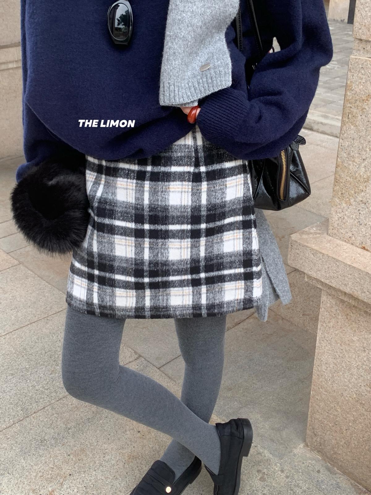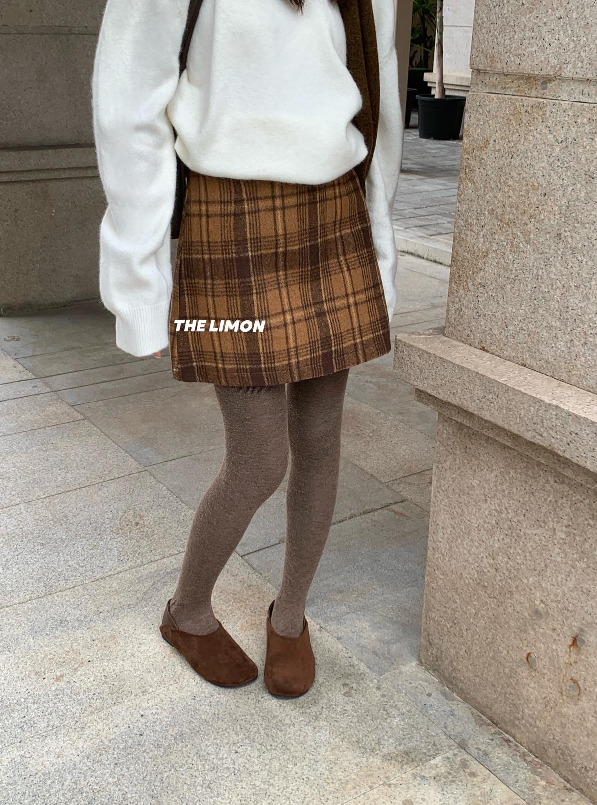 【C7763】復古格紋加厚毛呢顯瘦半身裙