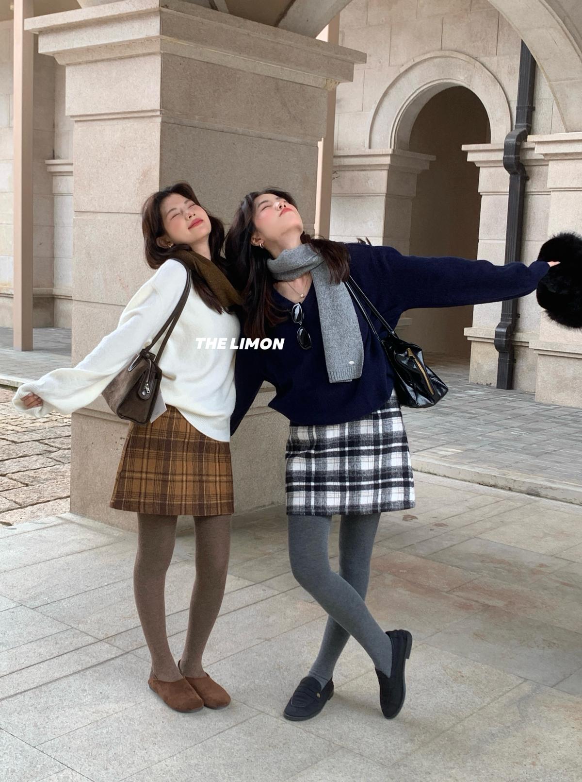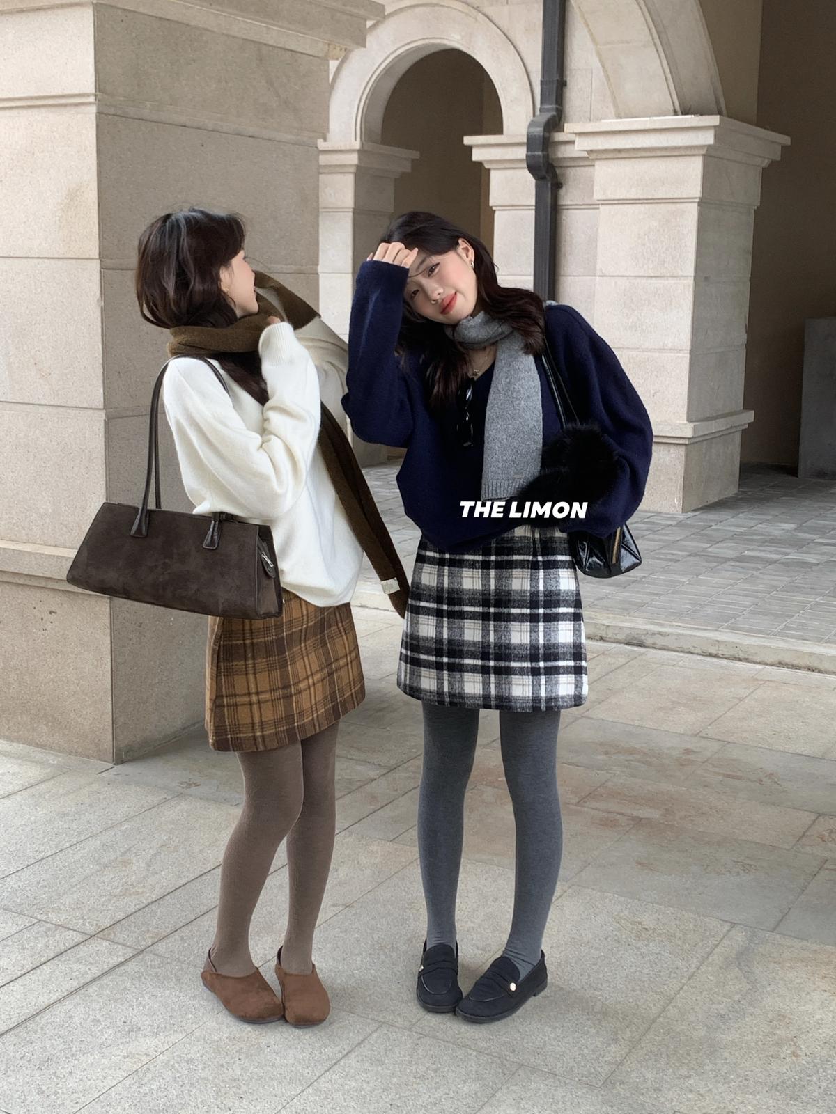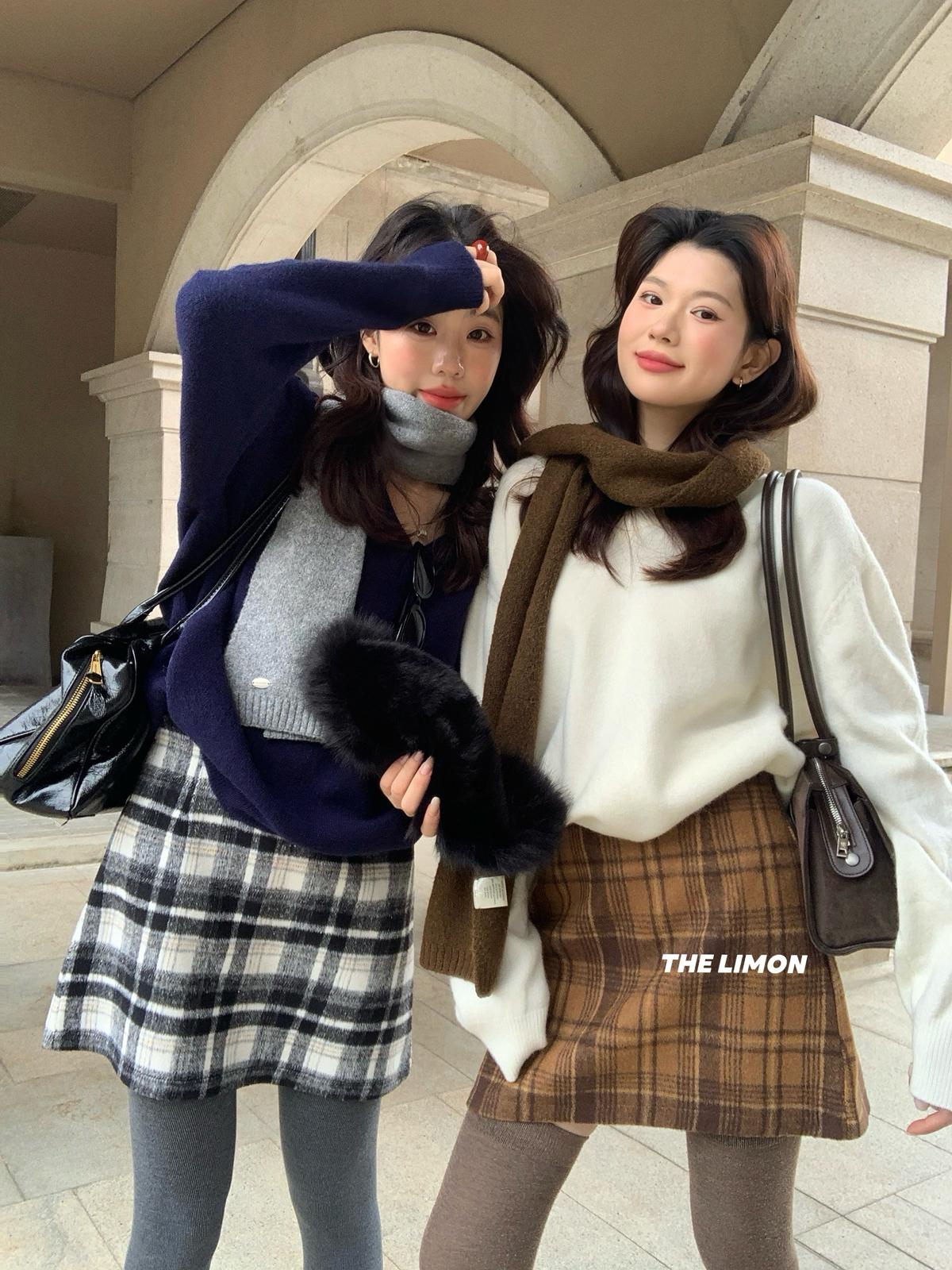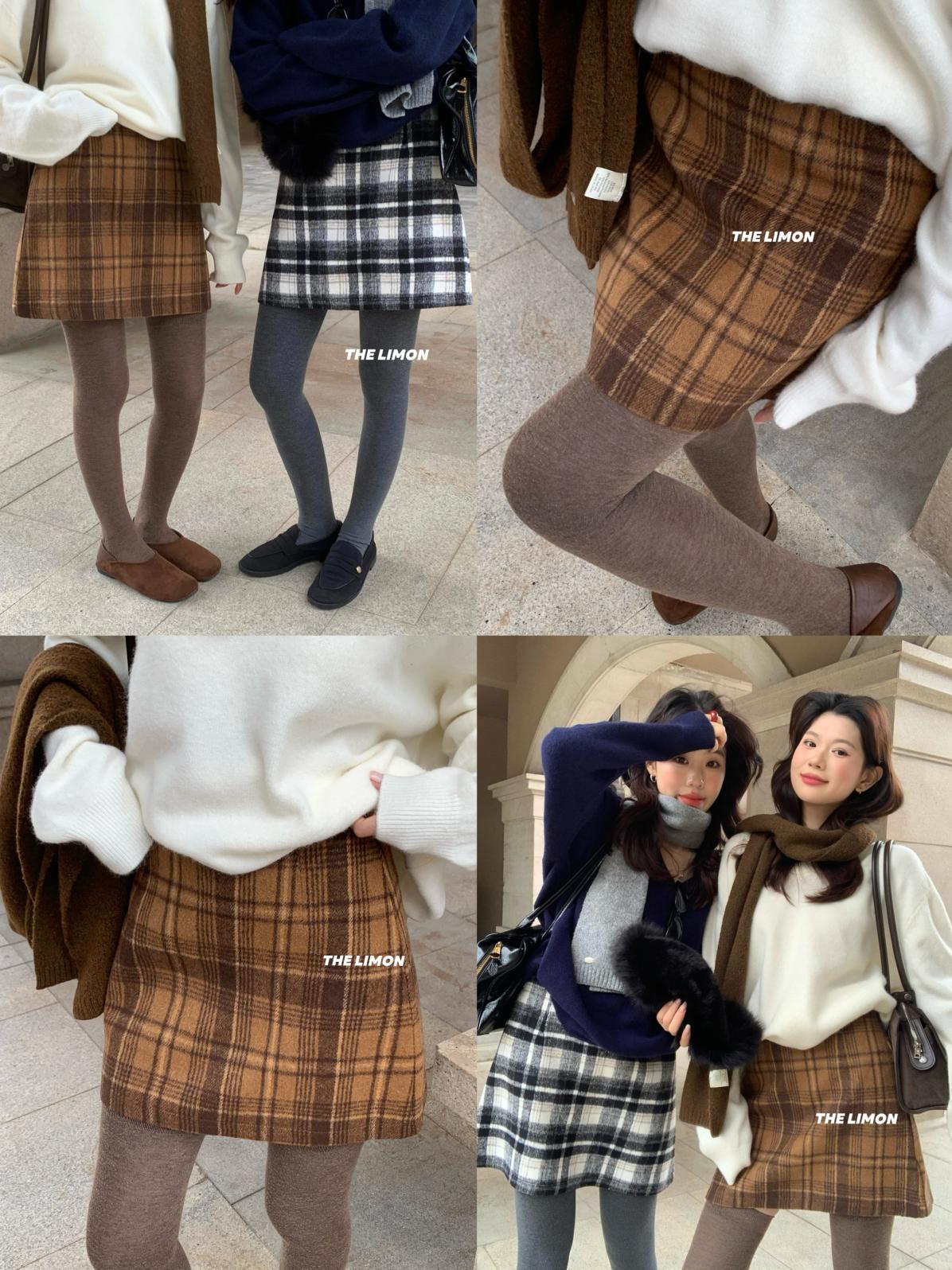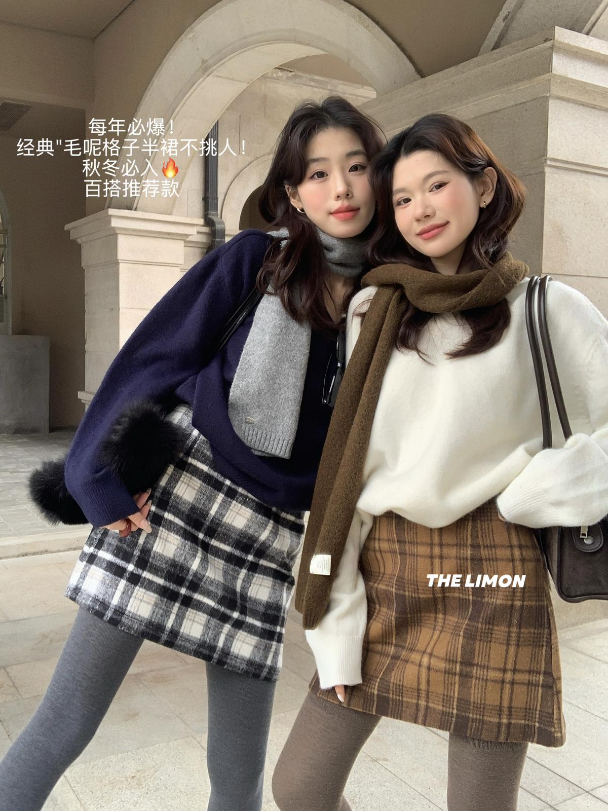 【C7763】復古格紋加厚毛呢顯瘦半身裙
