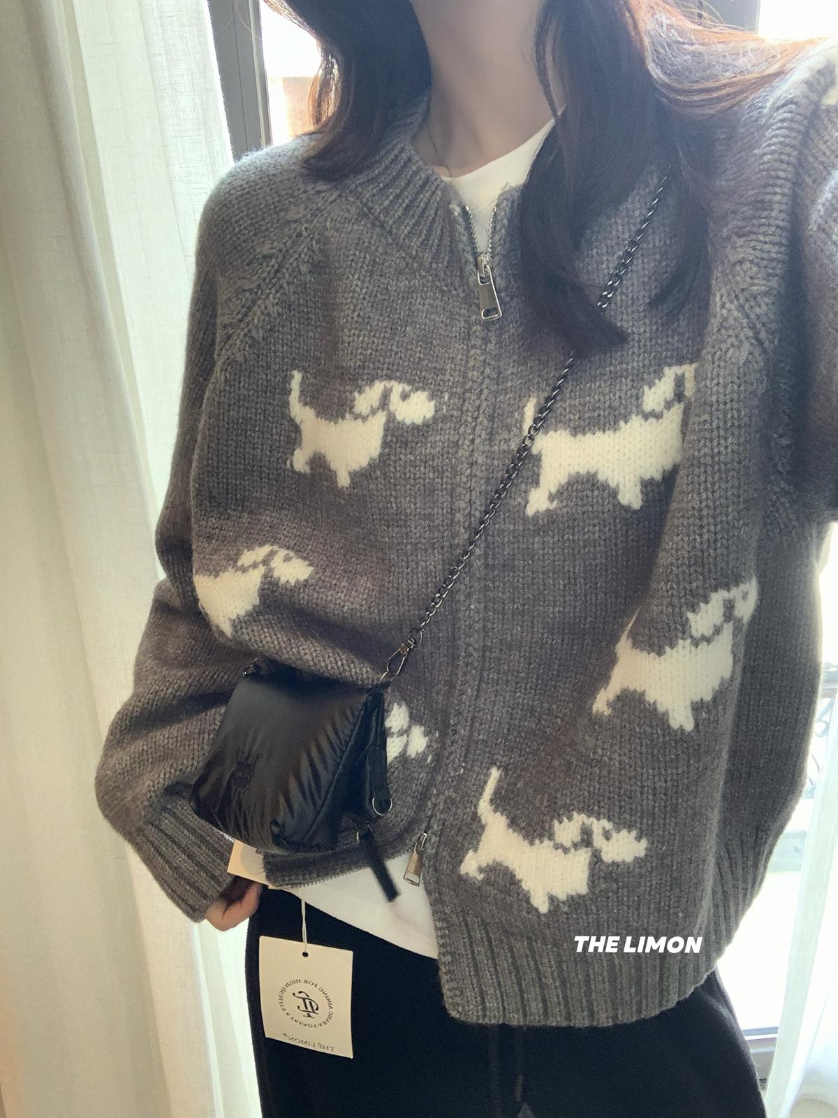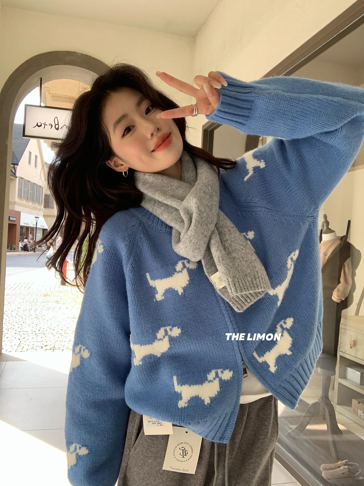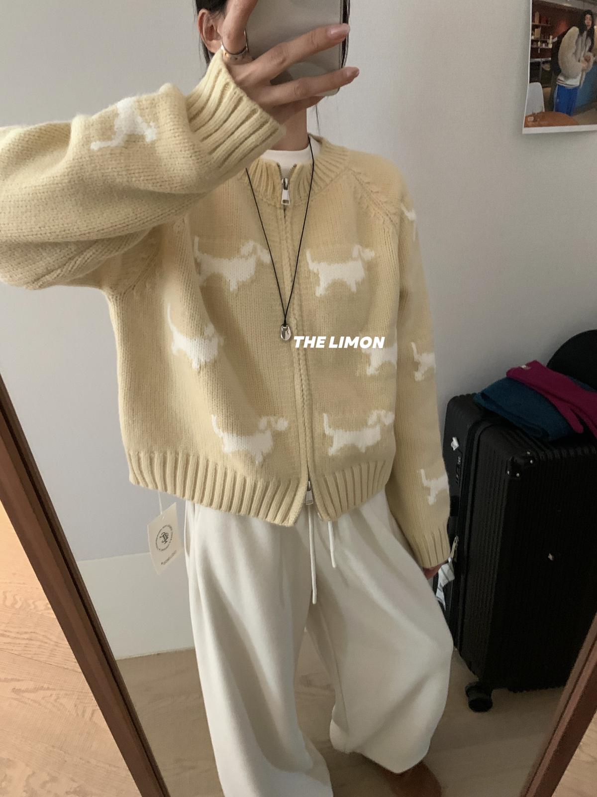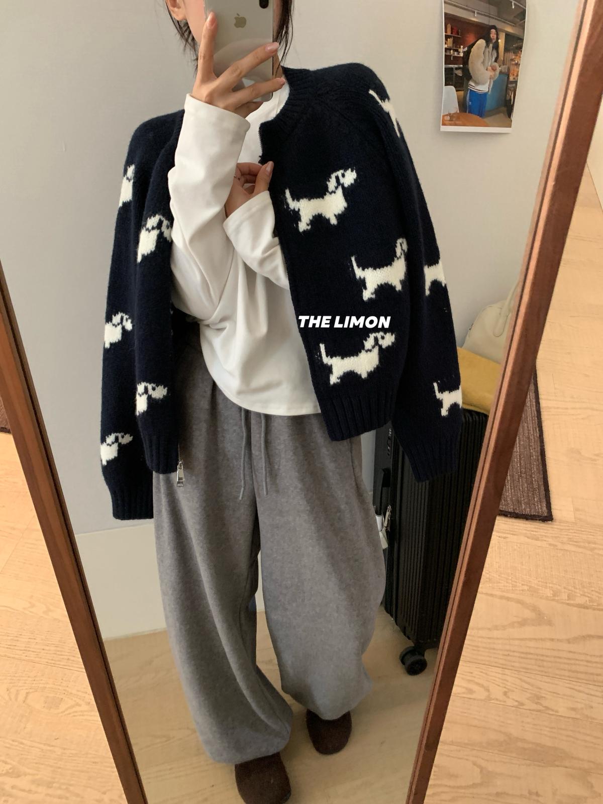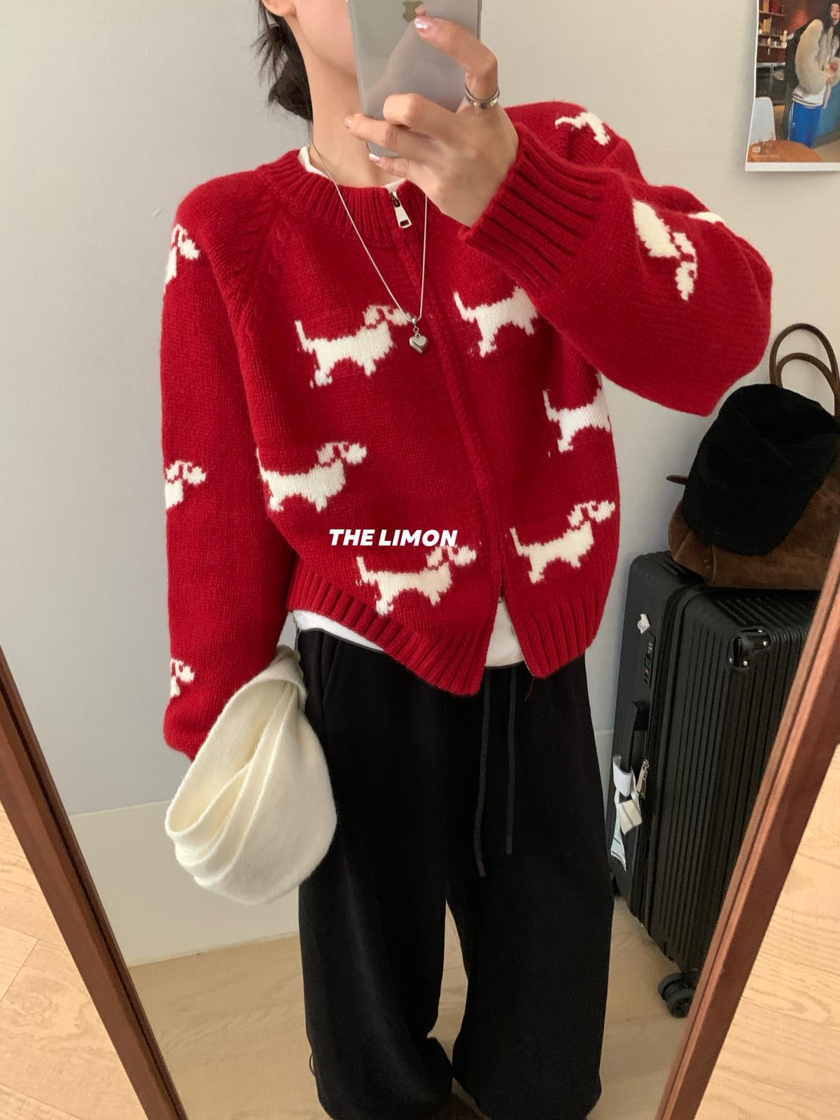 【C7765】韓系減齡趣味小狗圓領拉鍊北極絨開衫保暖毛衣