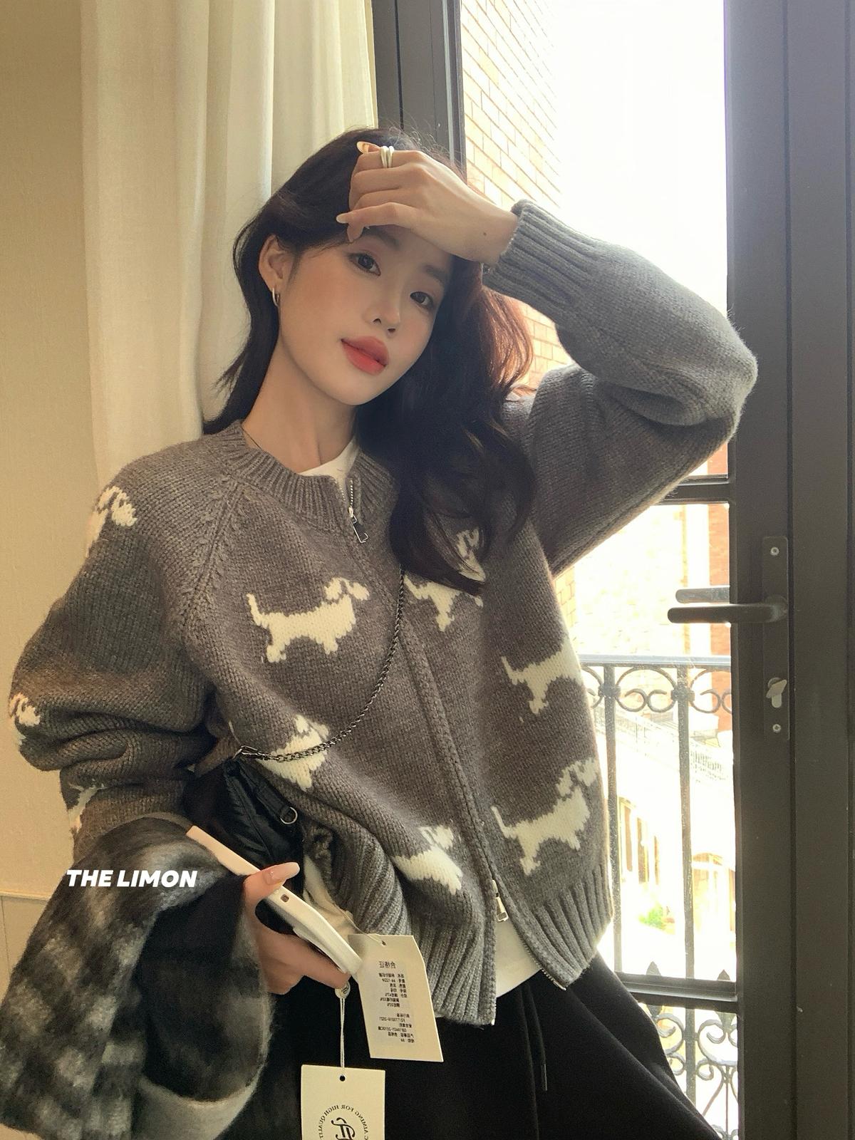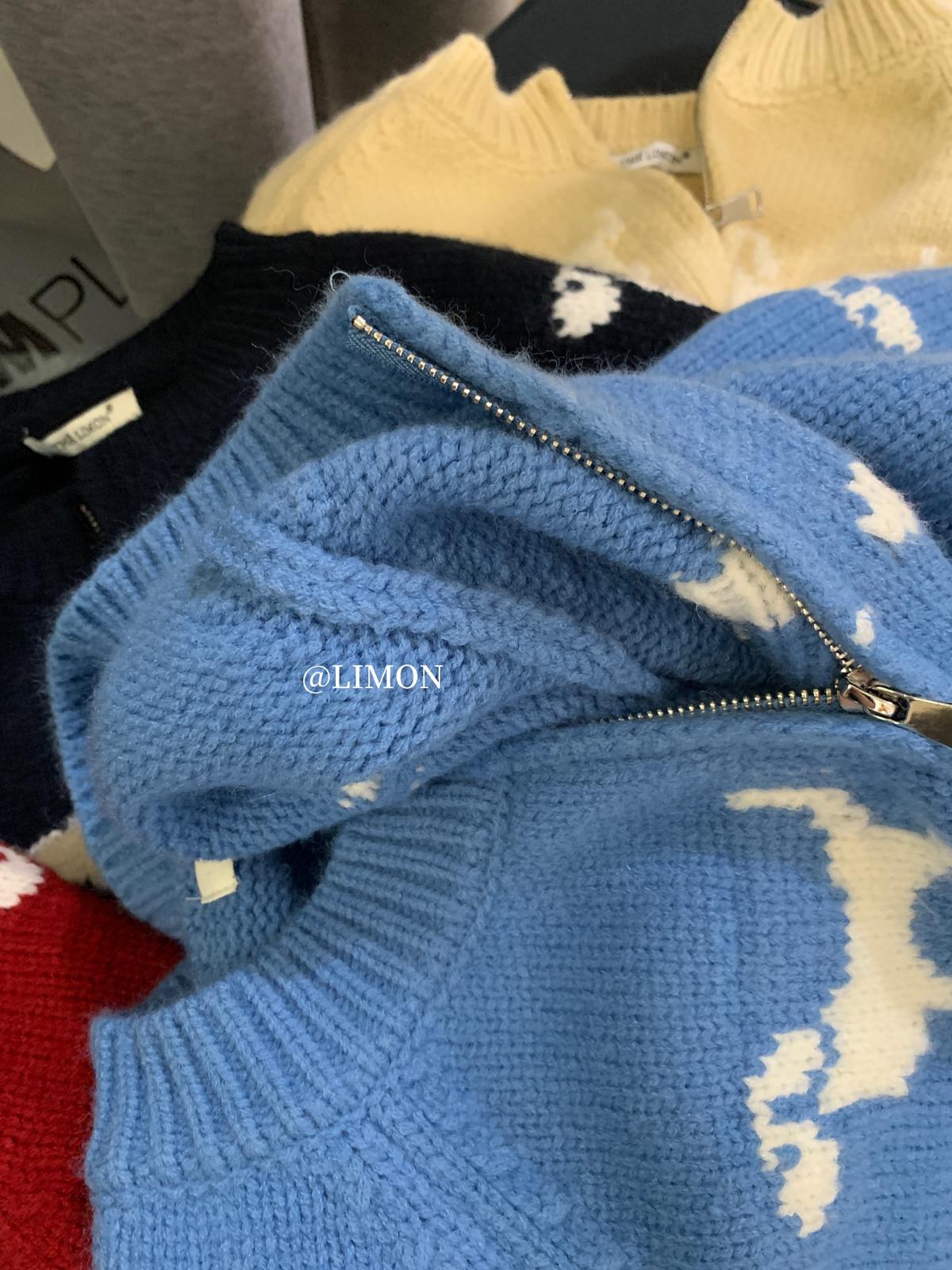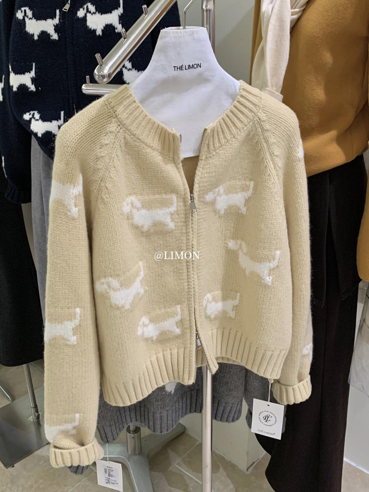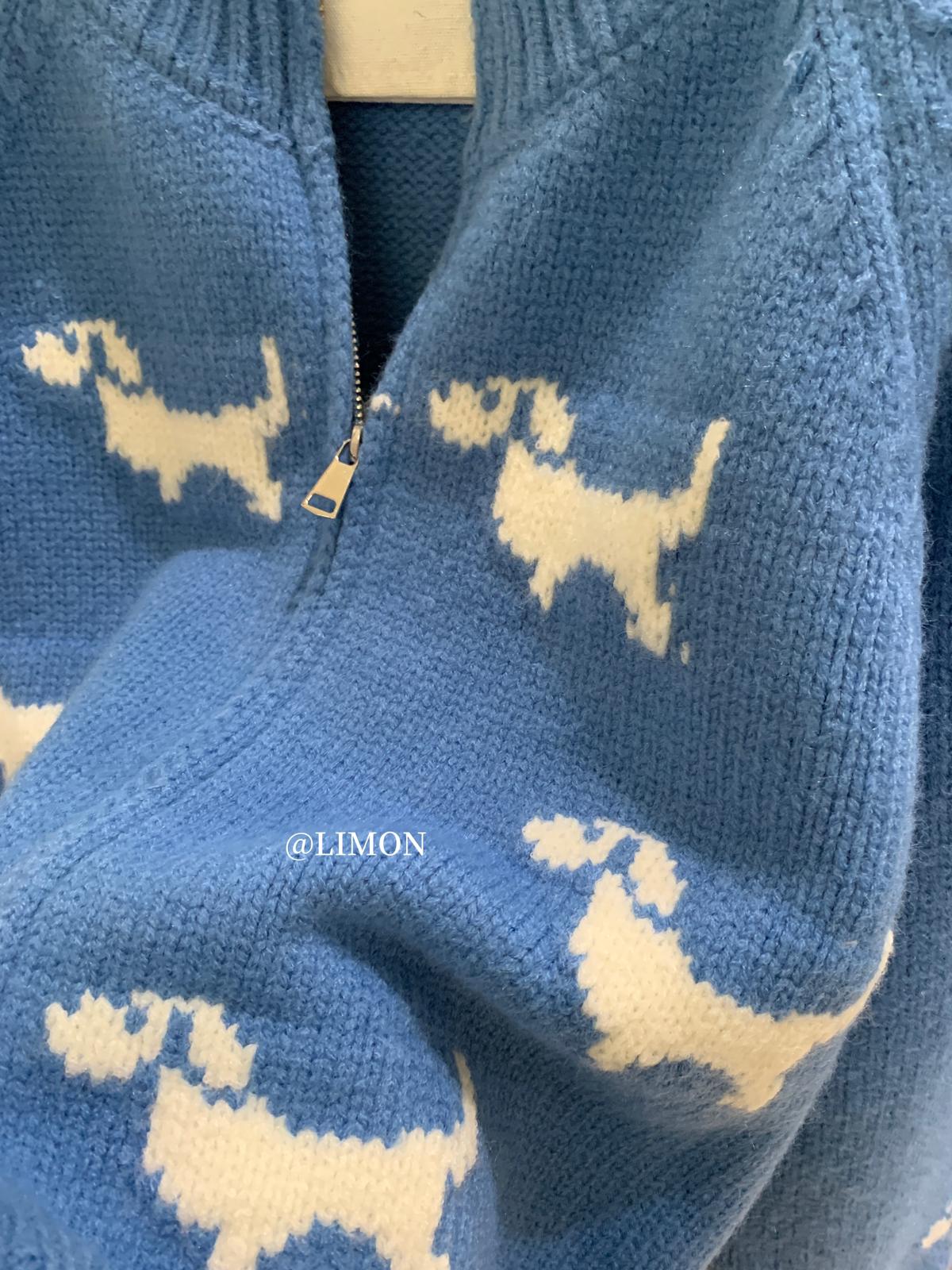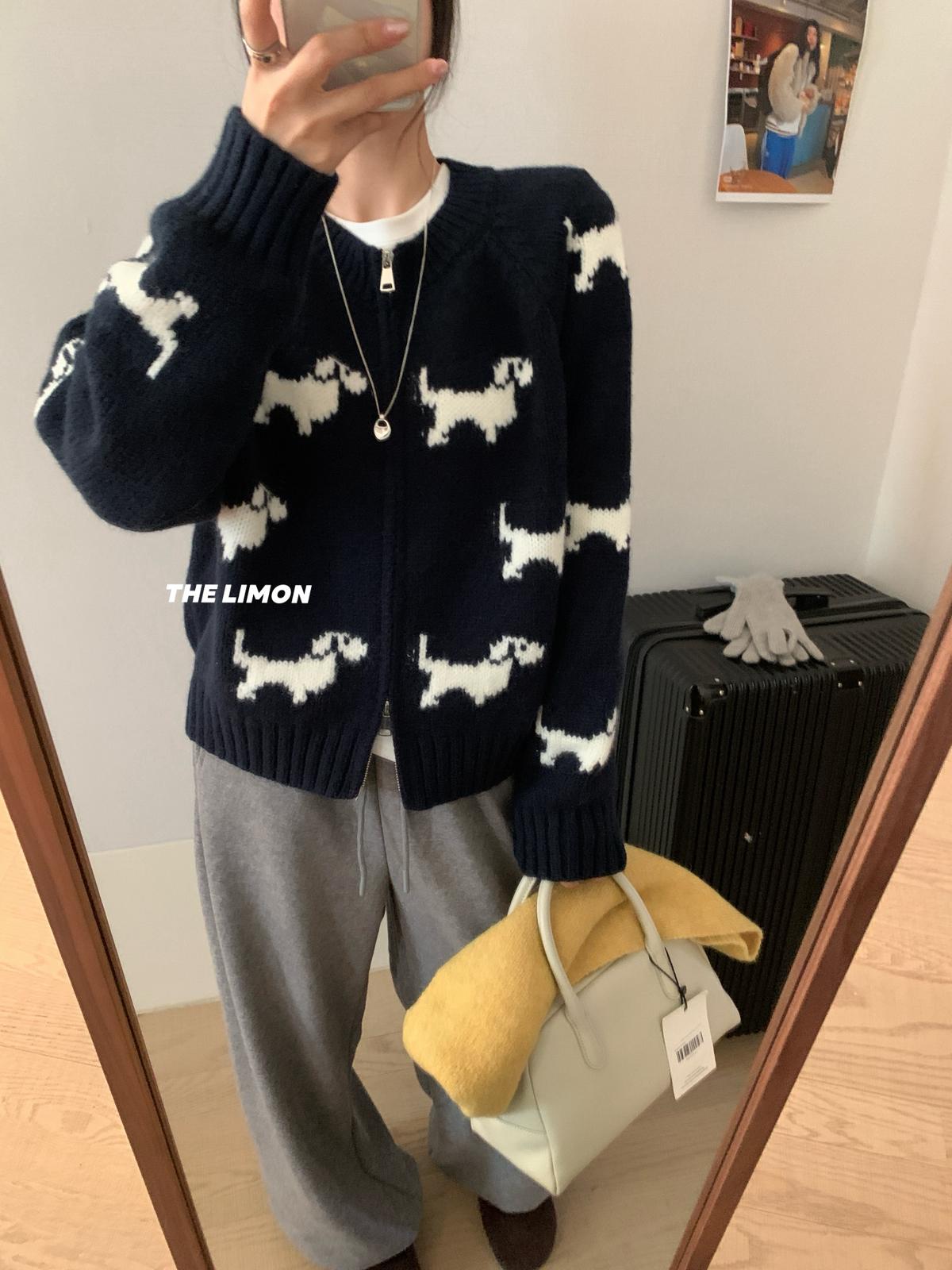 【C7765】韓系減齡趣味小狗圓領拉鍊北極絨開衫保暖毛衣