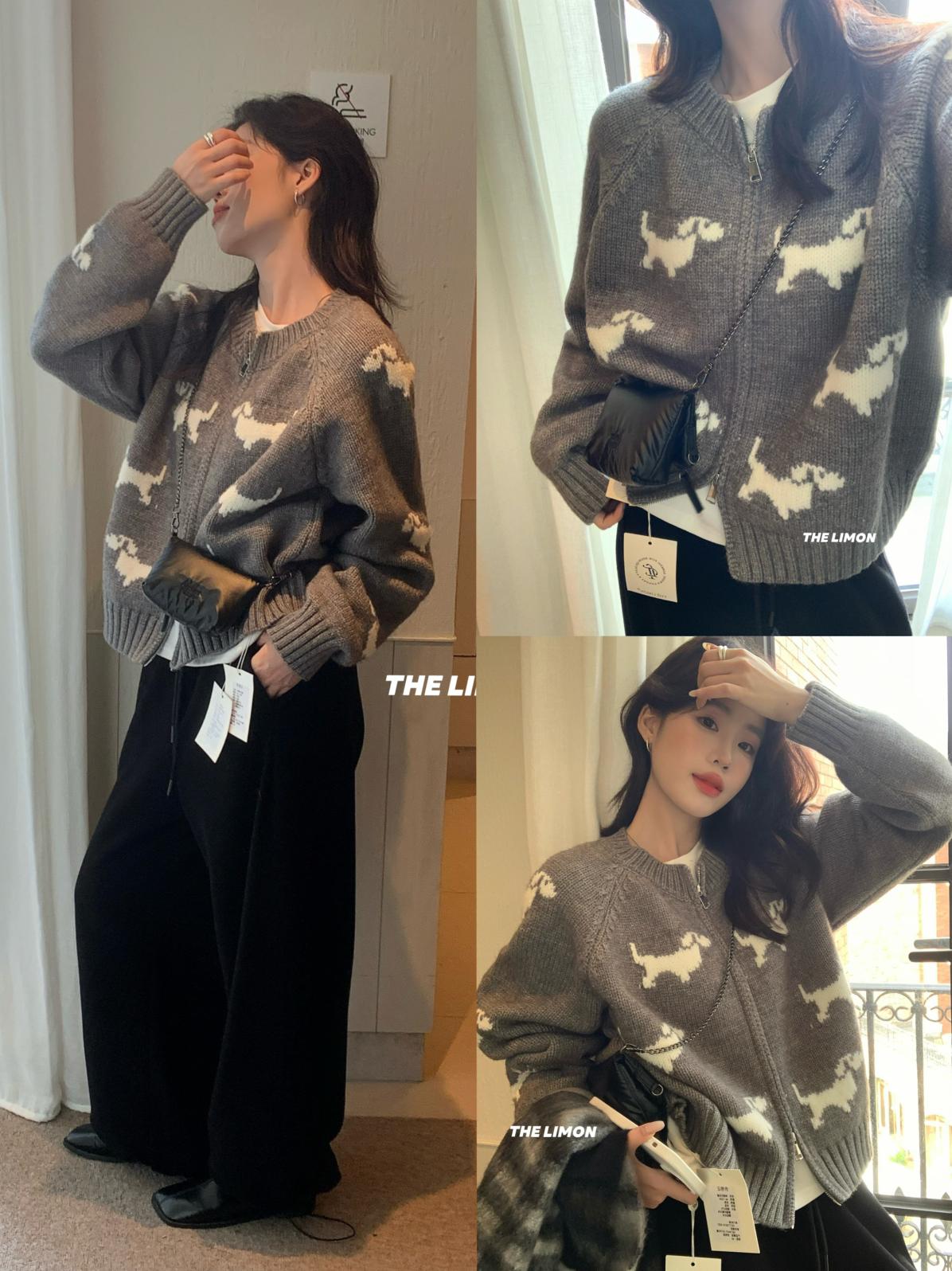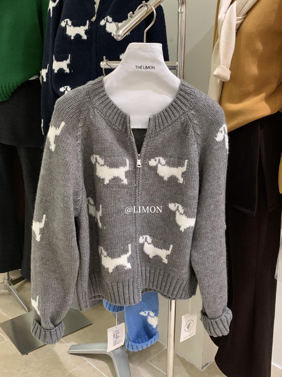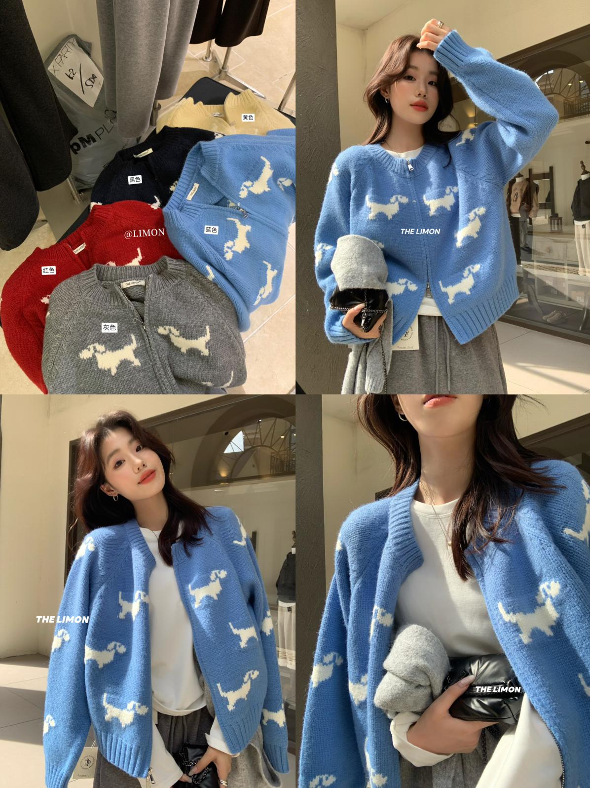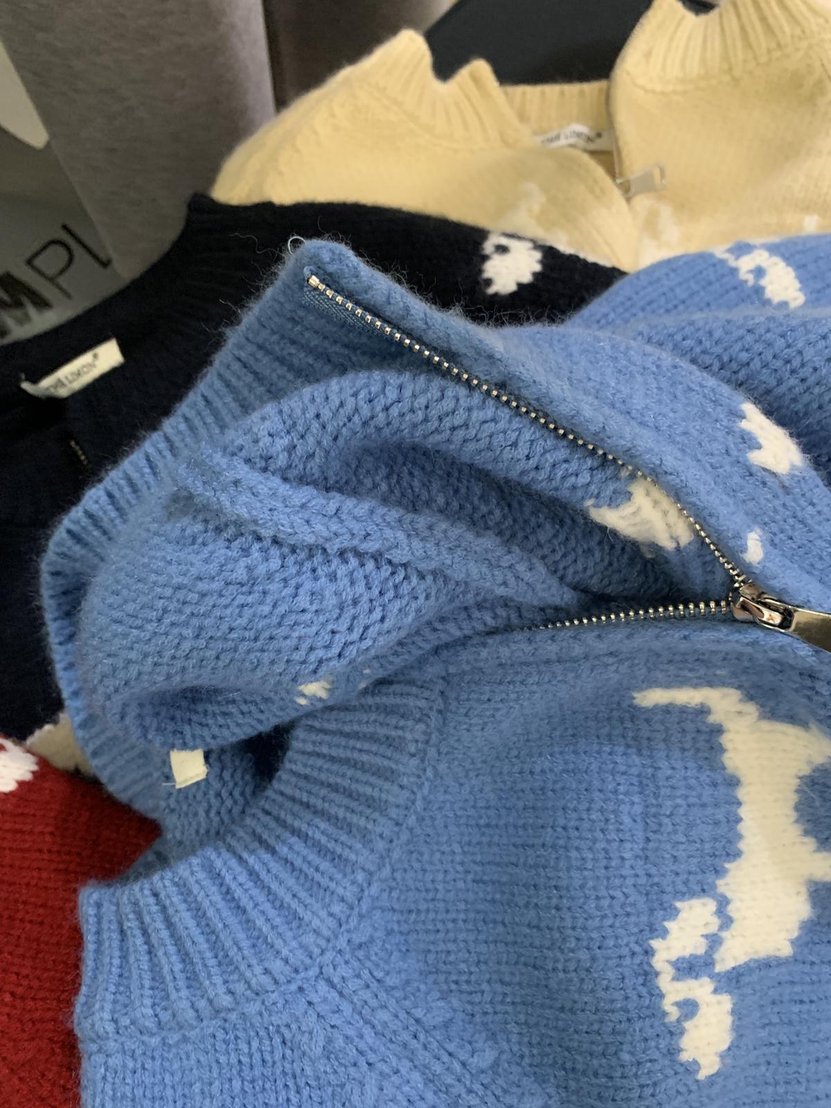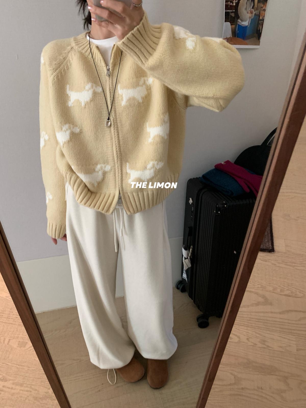 【C7765】韓系減齡趣味小狗圓領拉鍊北極絨開衫保暖毛衣