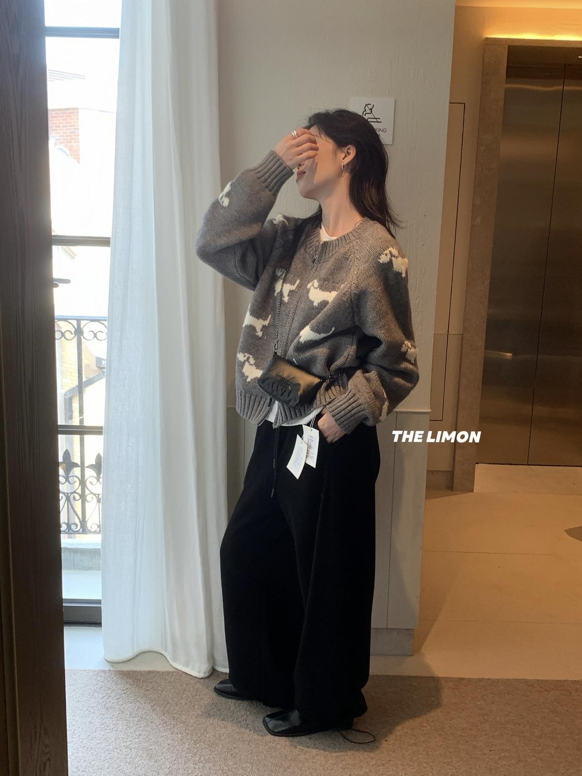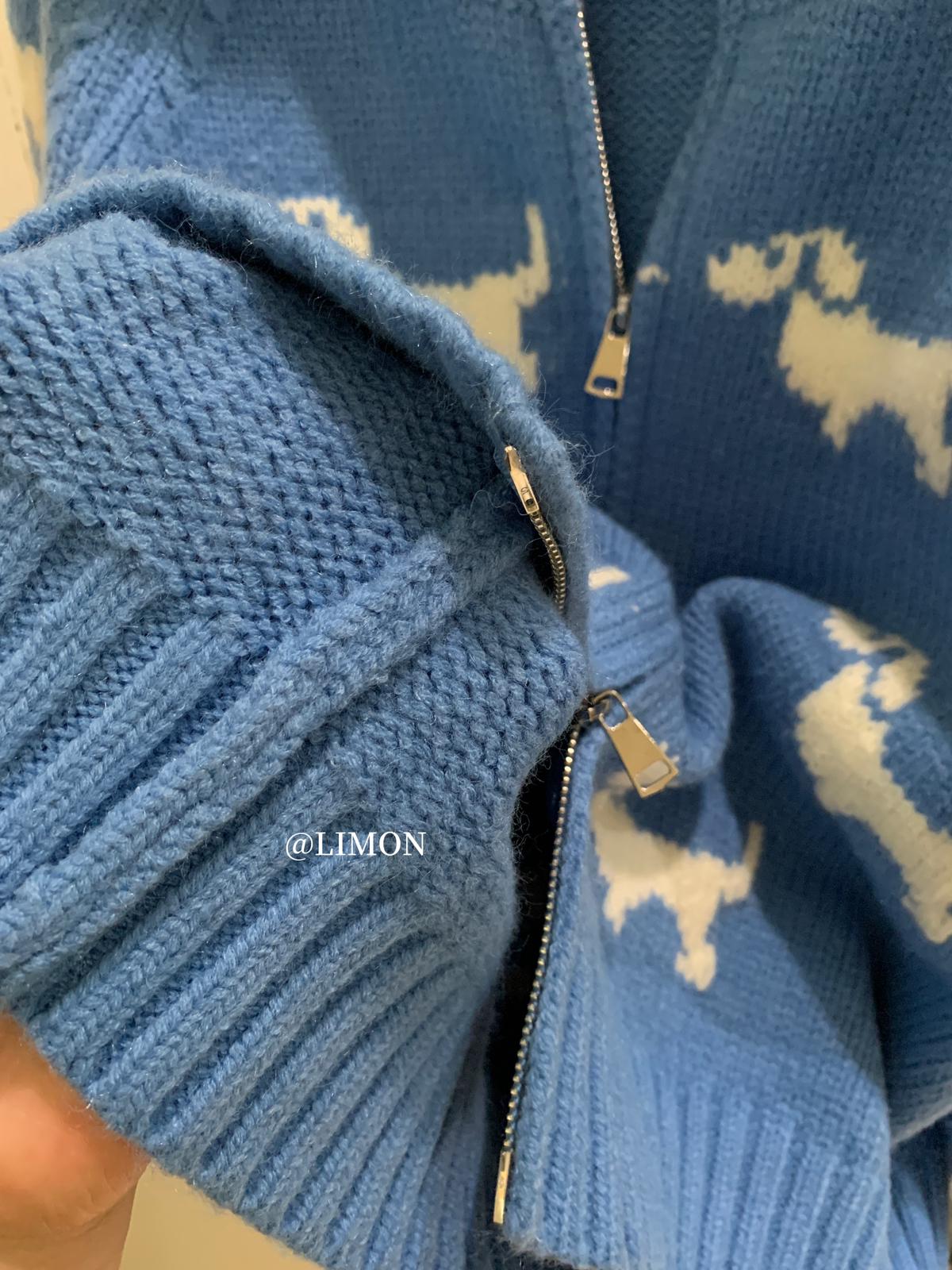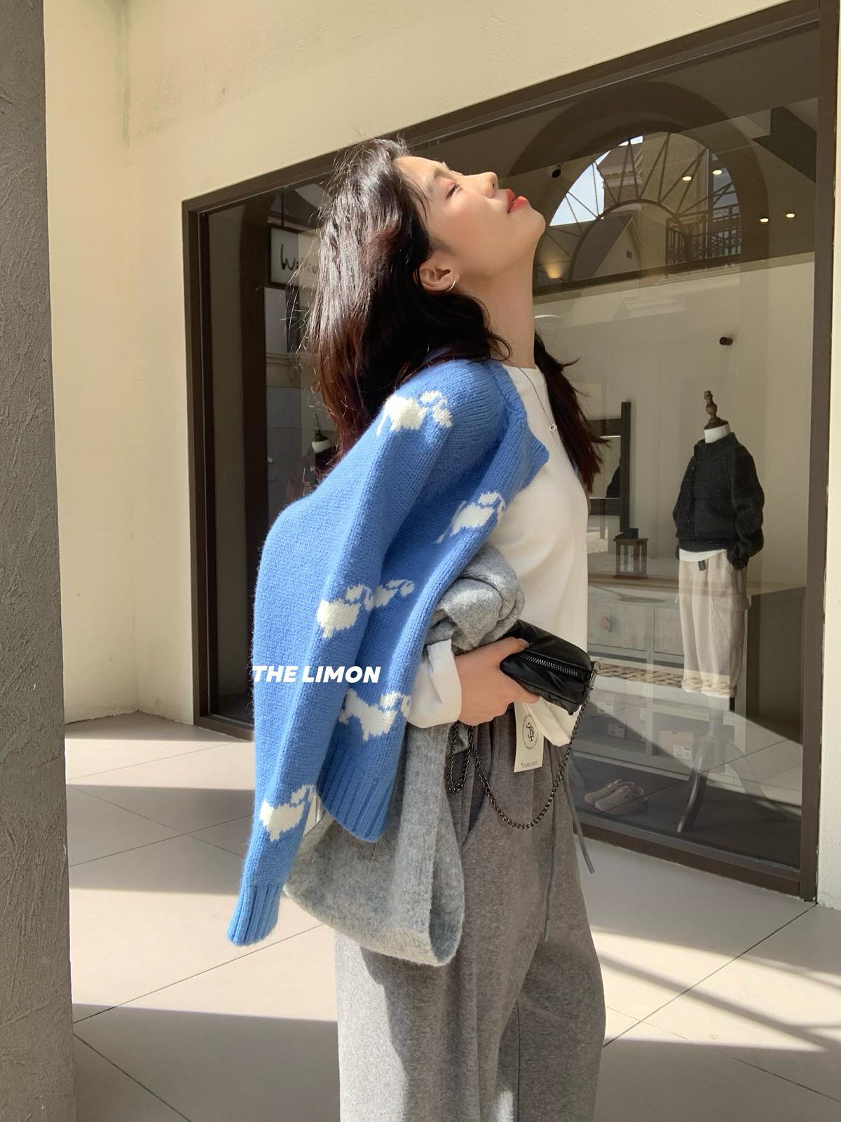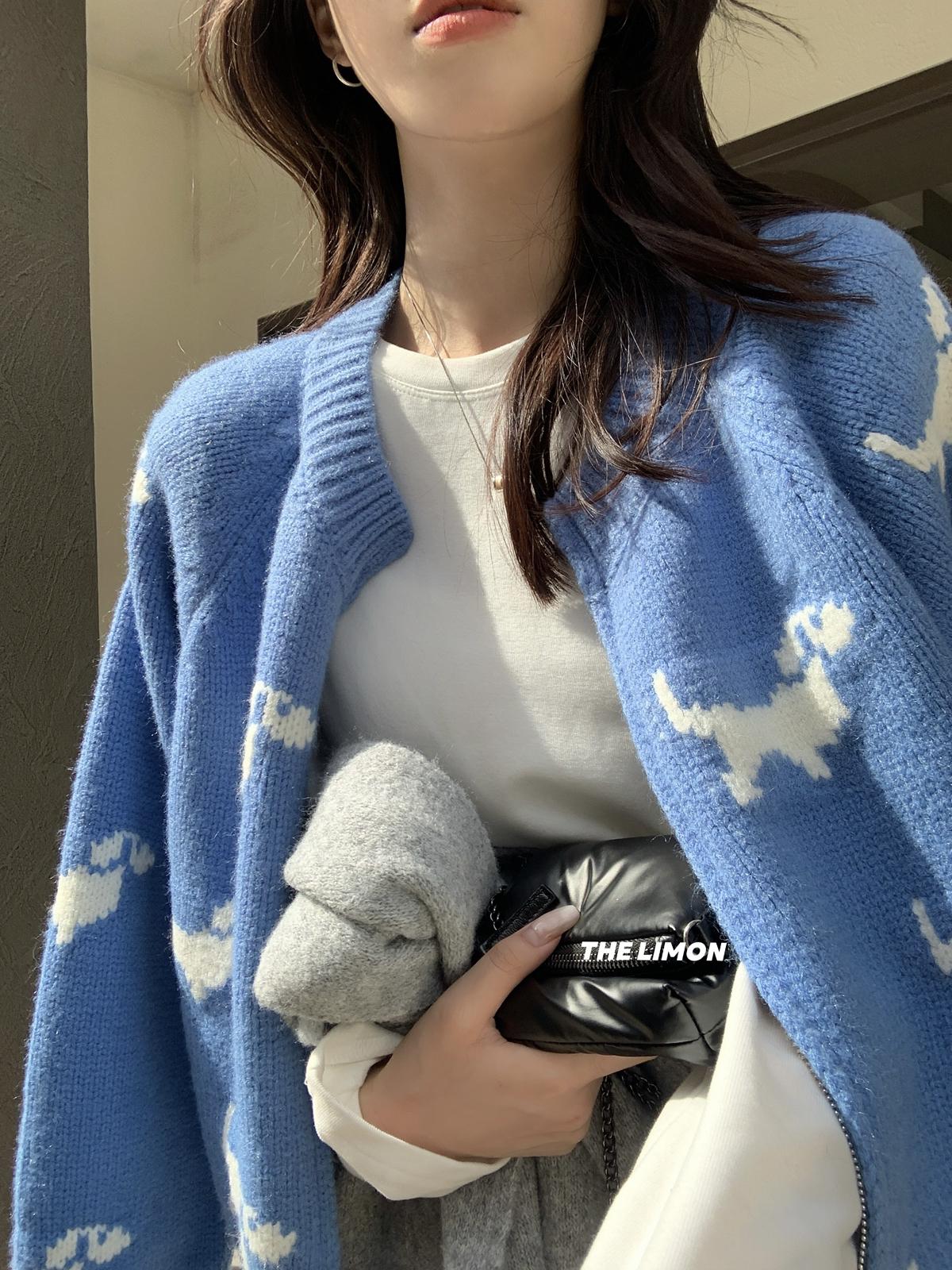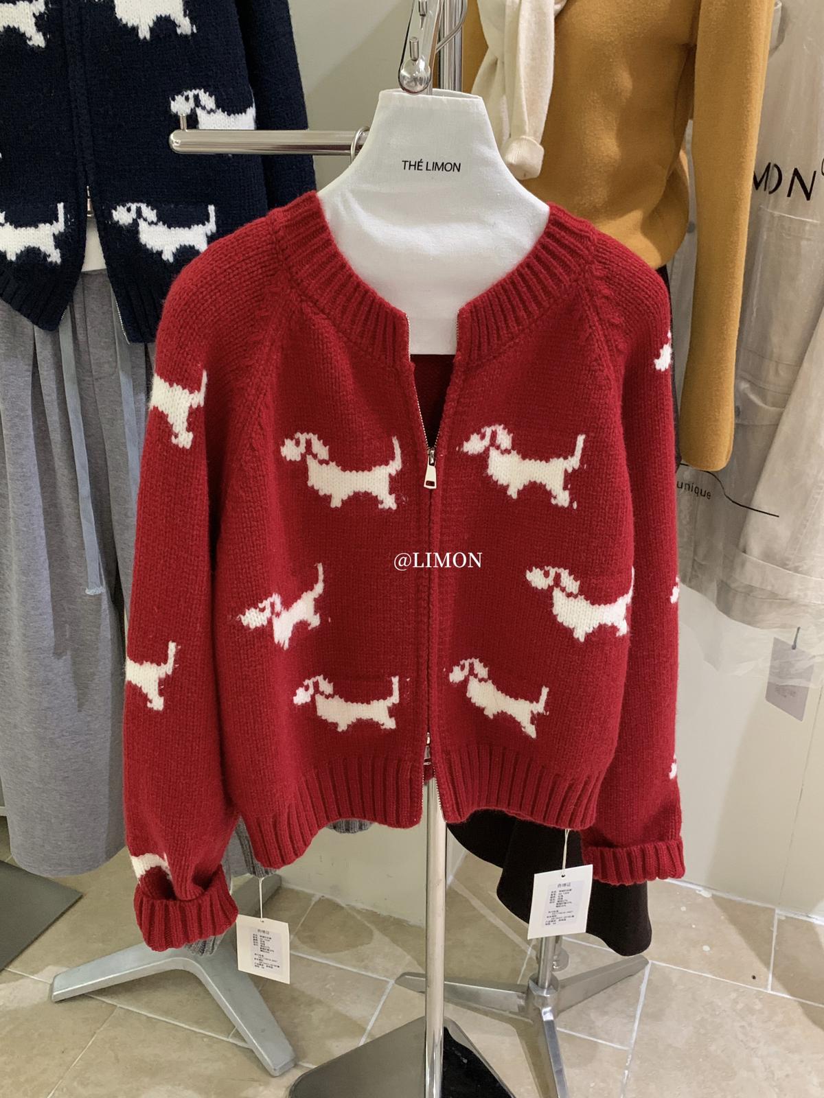 【C7765】韓系減齡趣味小狗圓領拉鍊北極絨開衫保暖毛衣