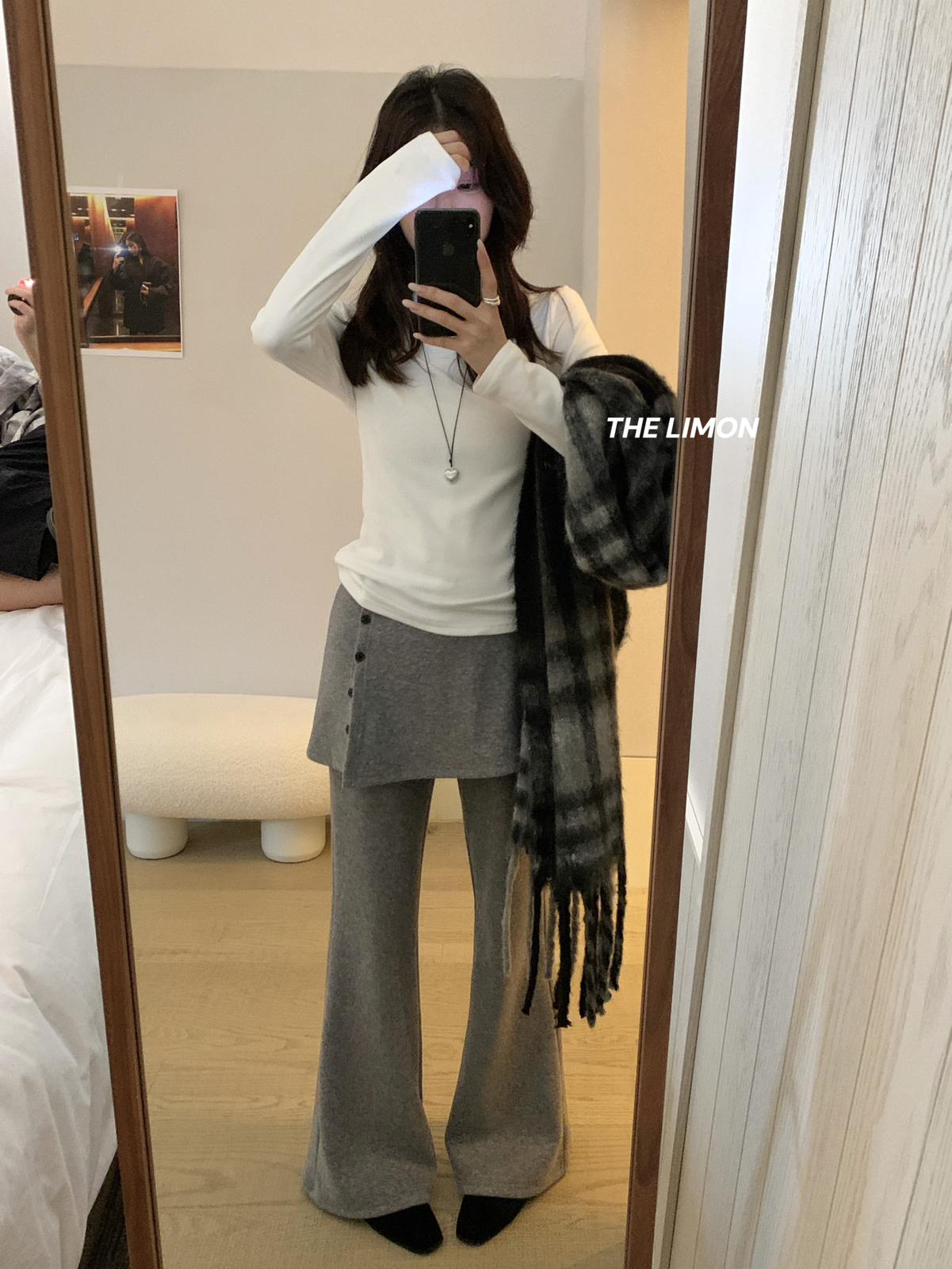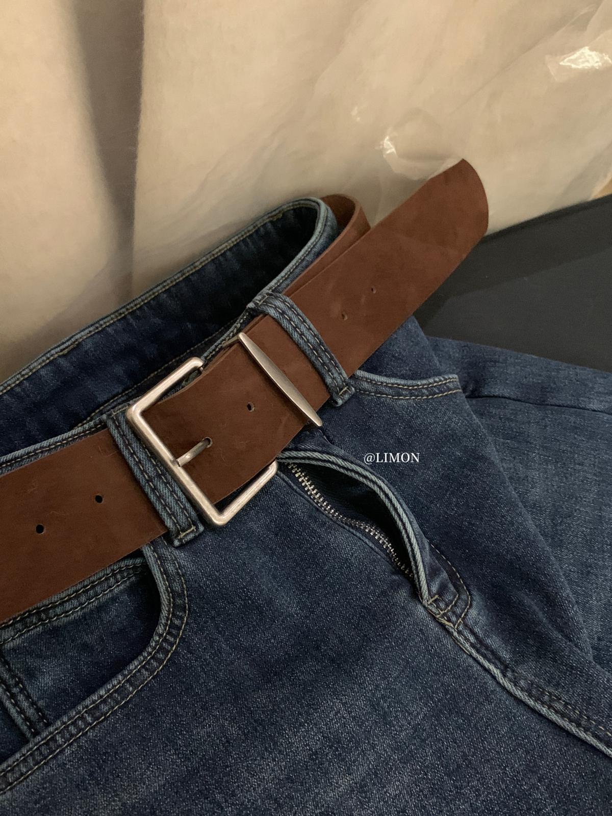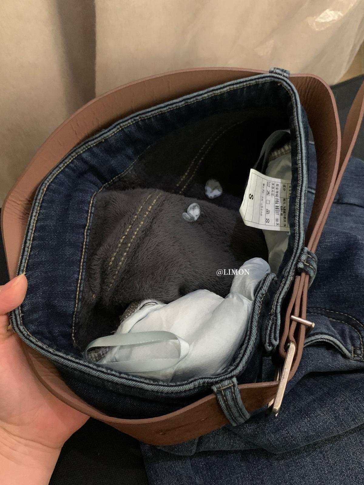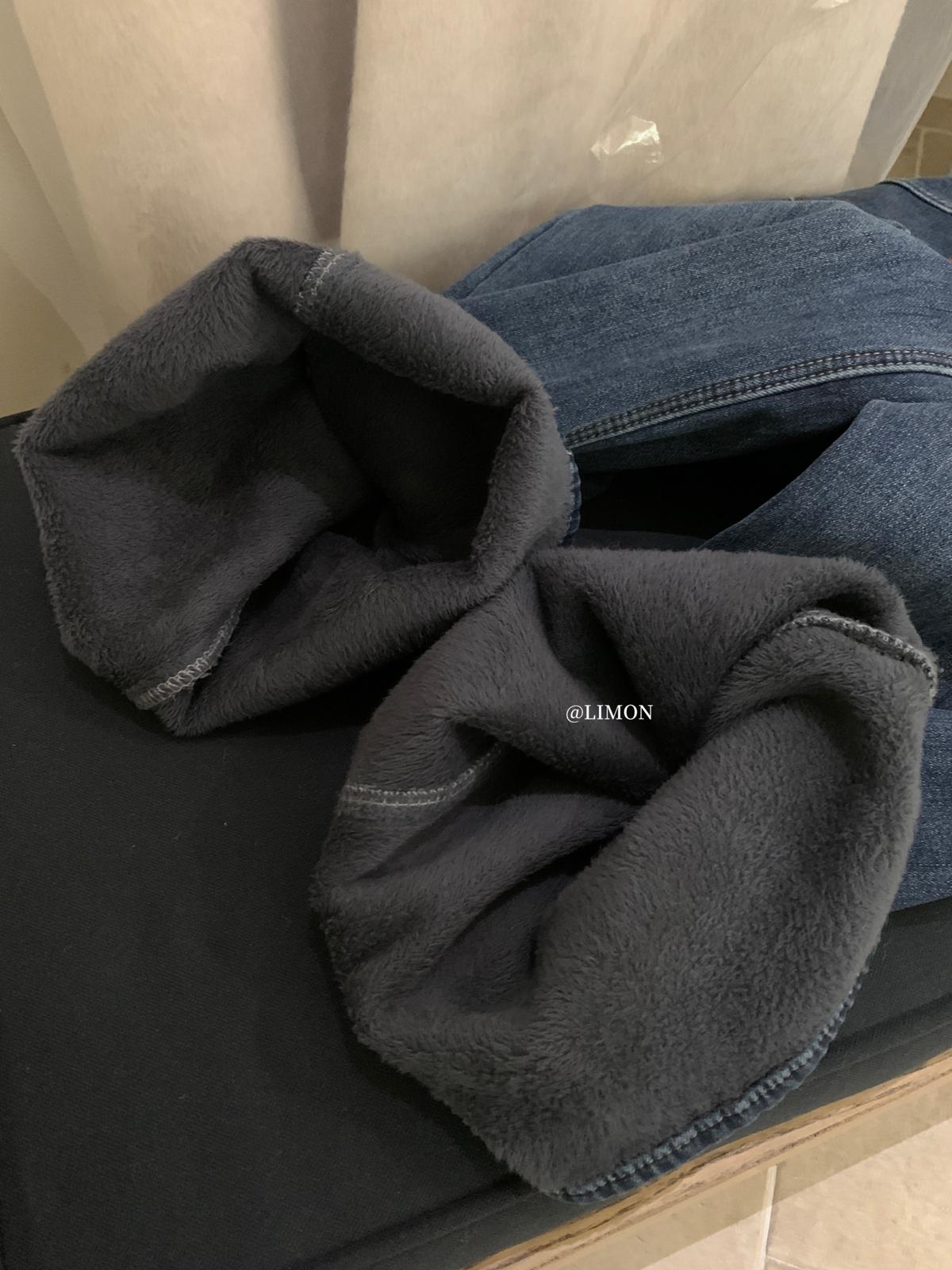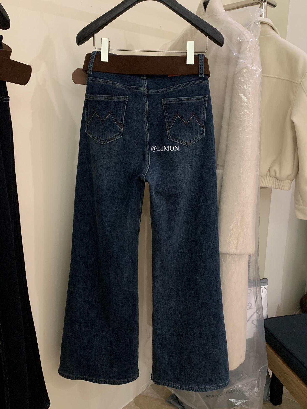 【C7766】超顯腿長!高腰微喇顯瘦加絨牛仔褲