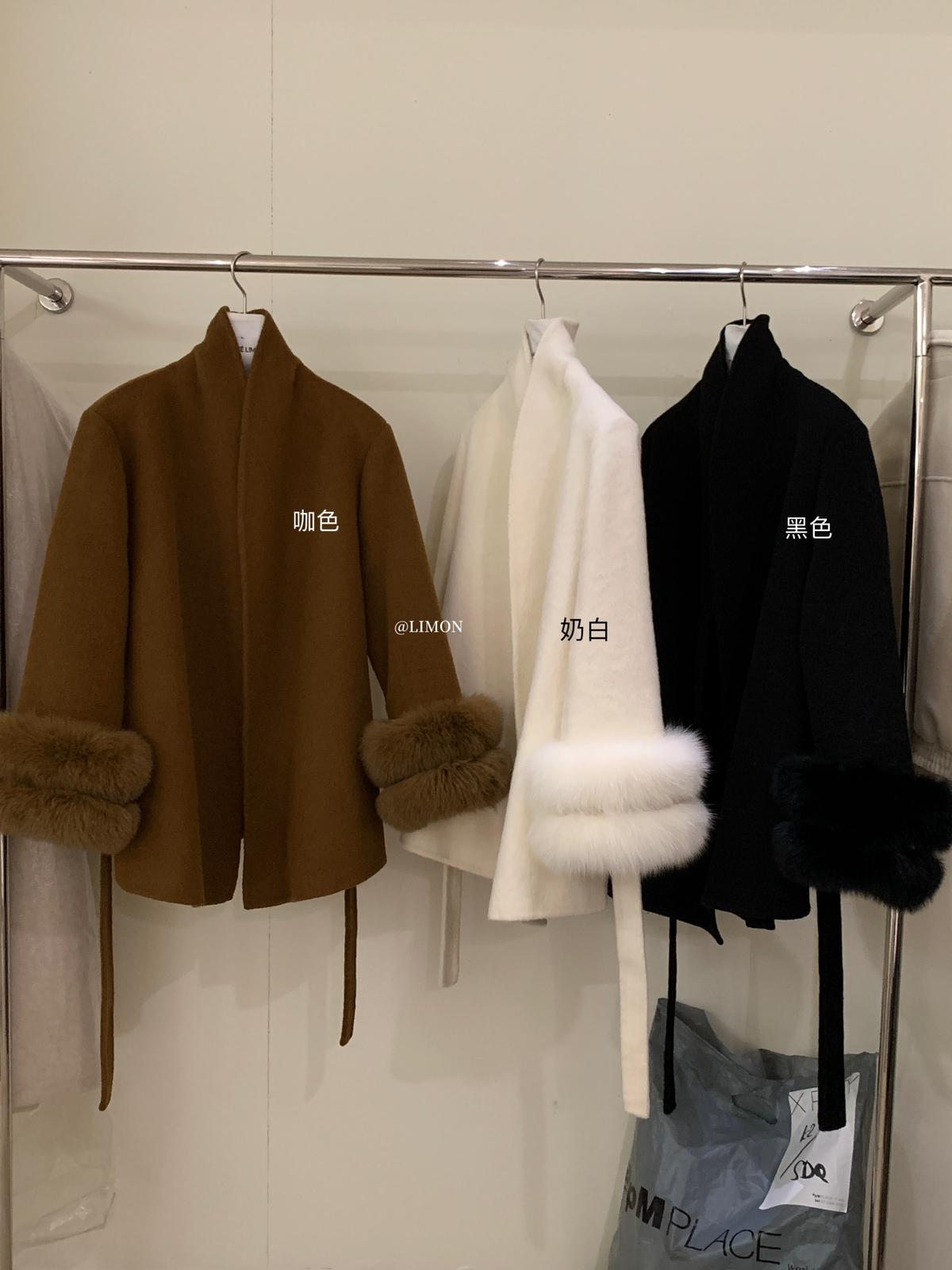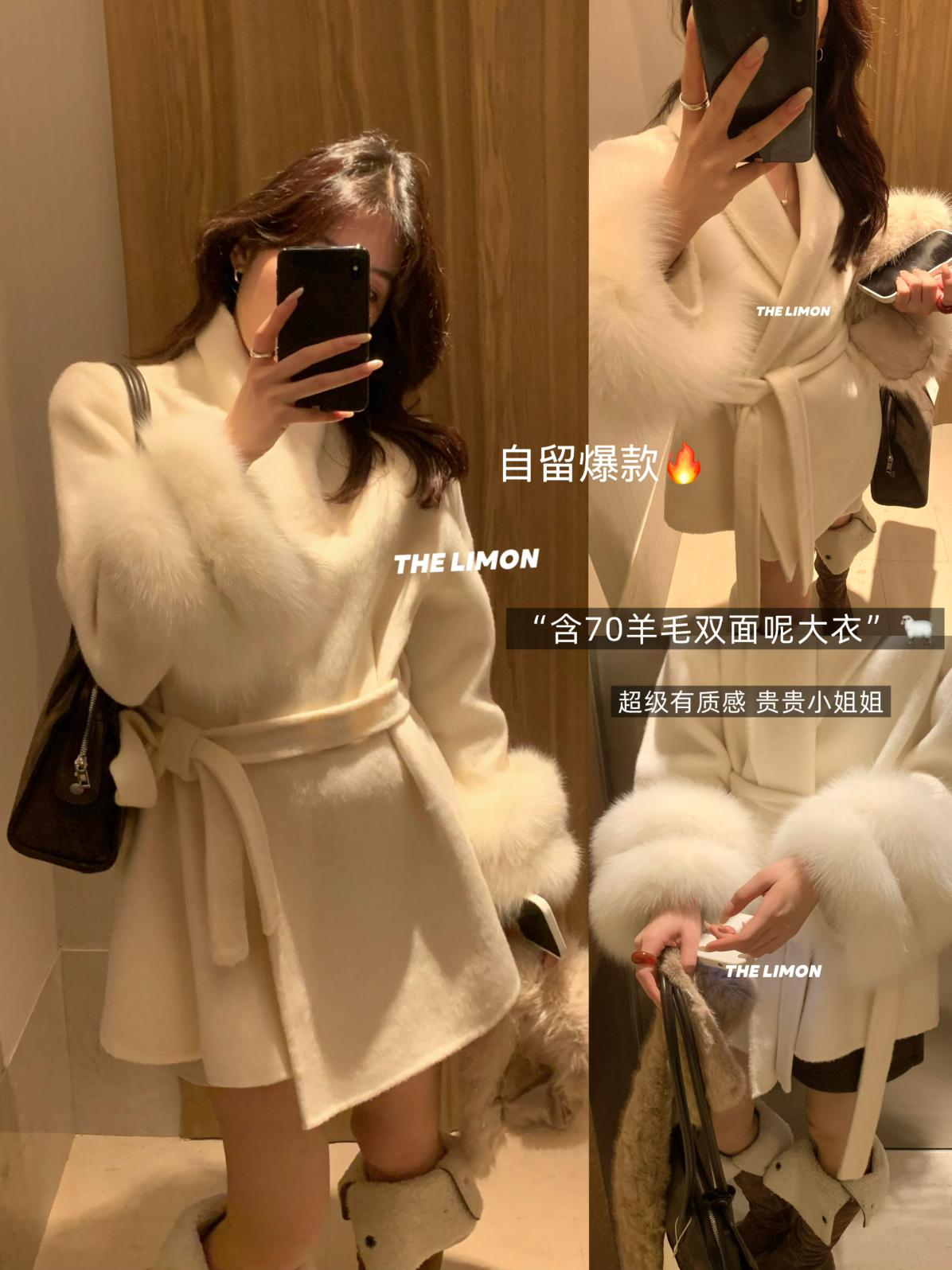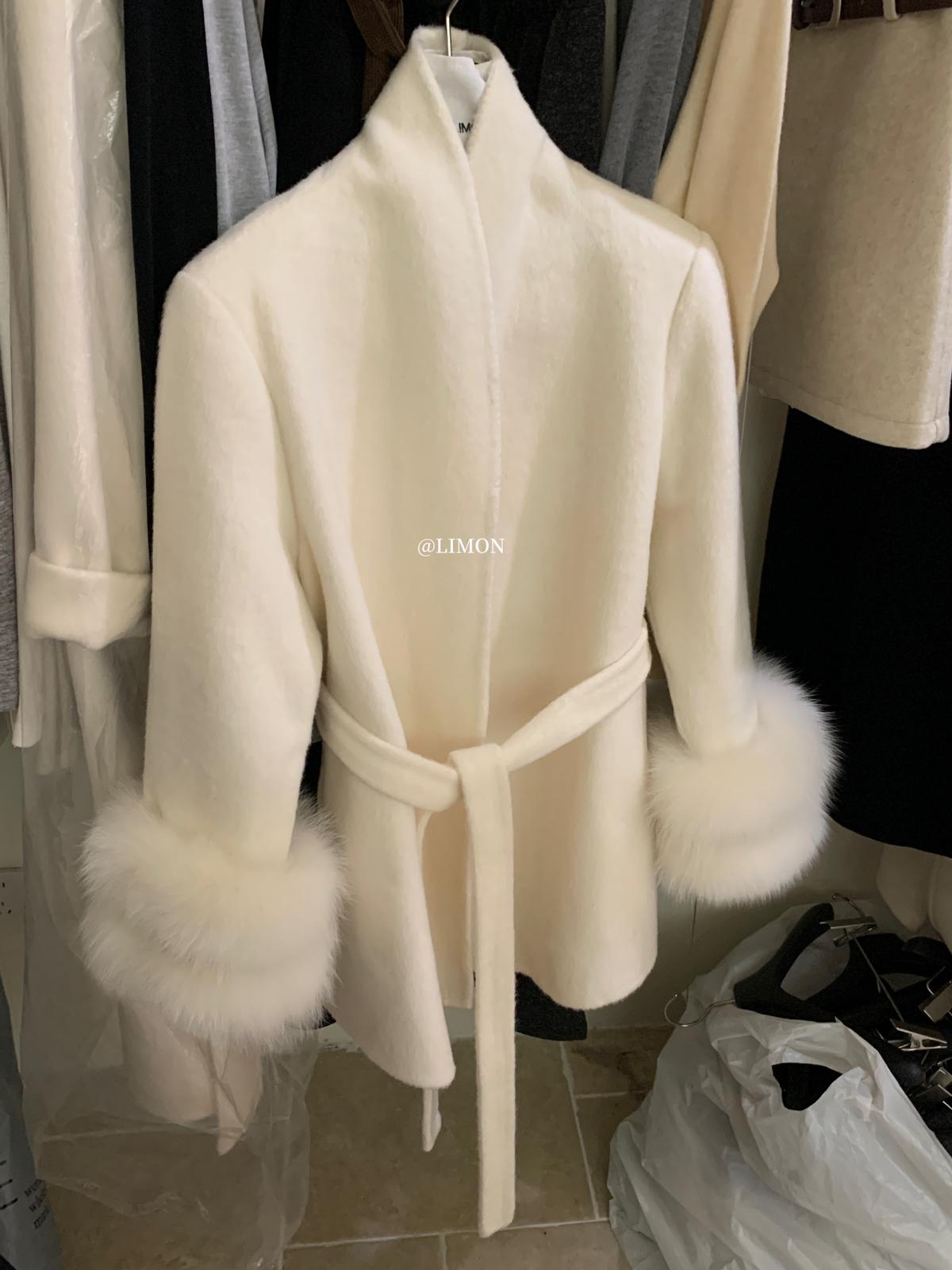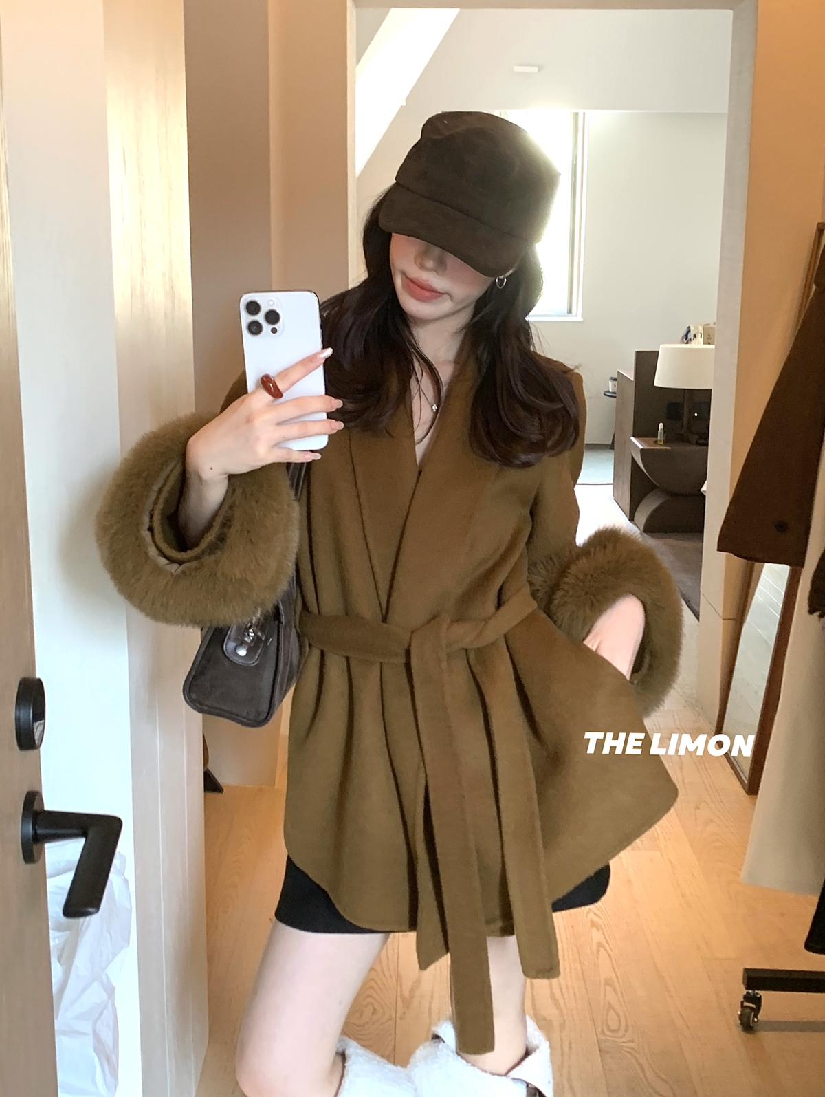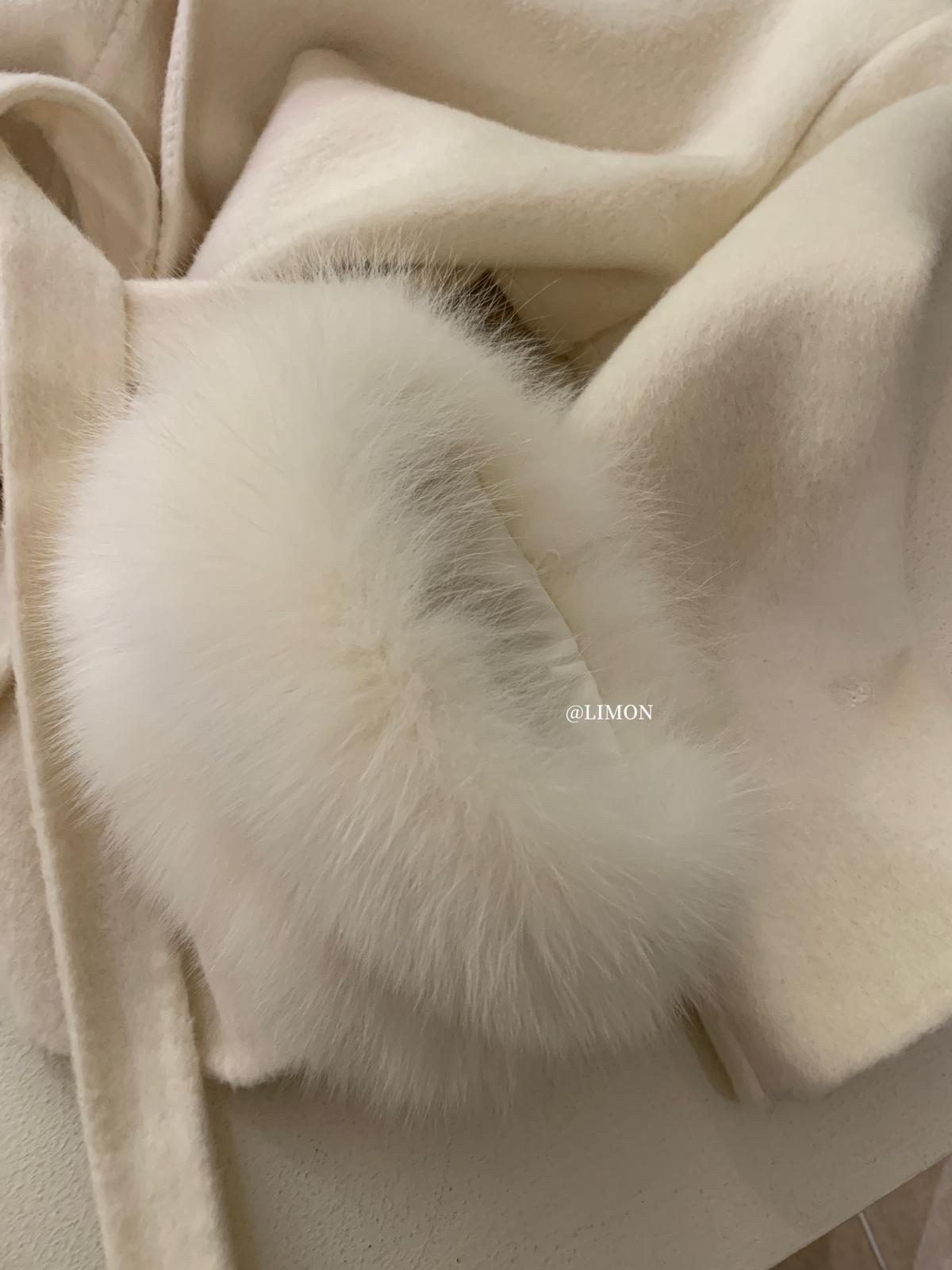 【C7767】高級感雙面尼氣質大衣羊毛外套(配可拆卸真狐狸毛毛圈,腰帶)(含70%羊毛)