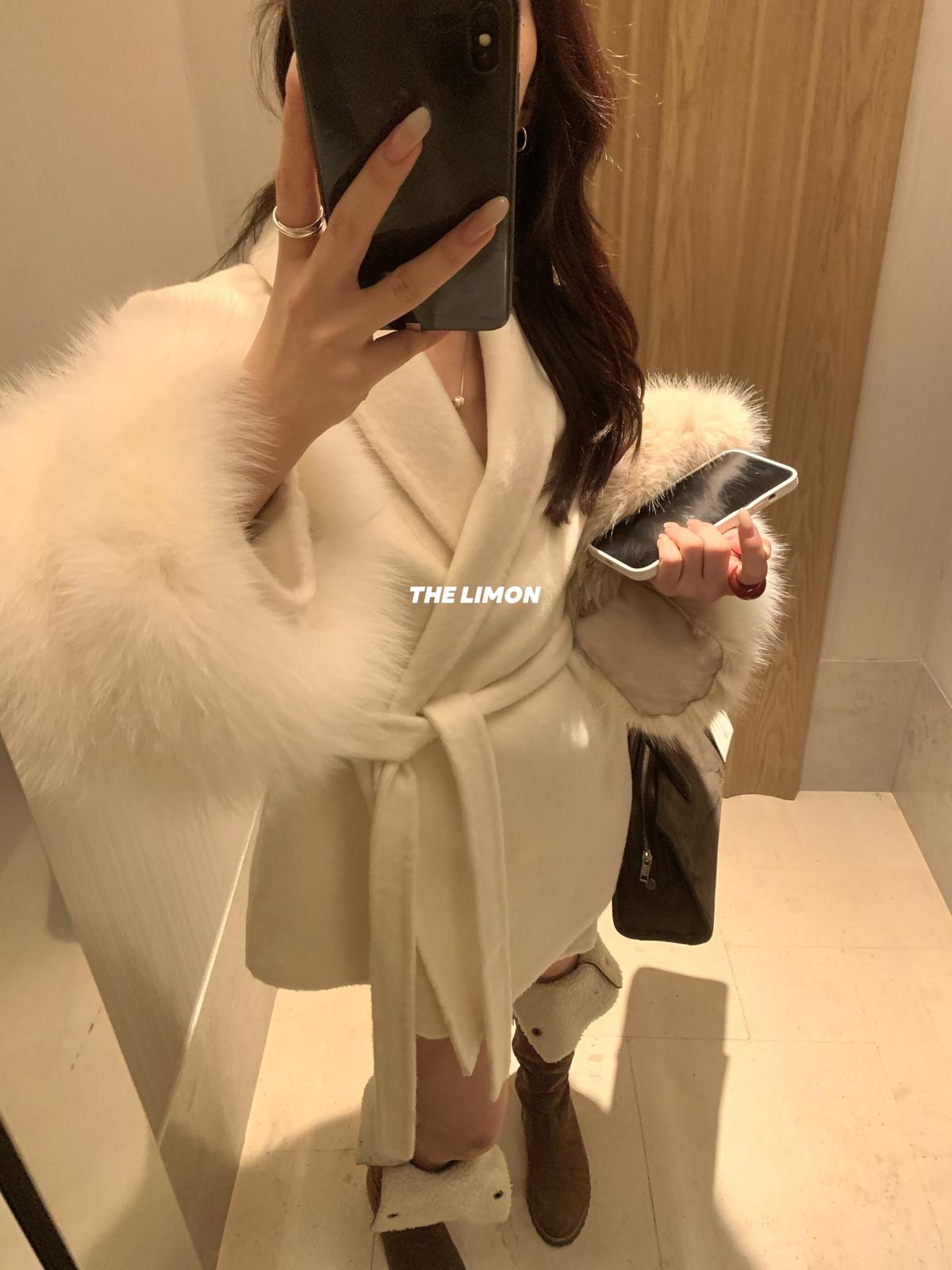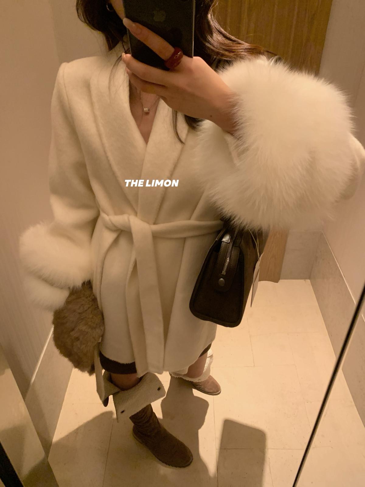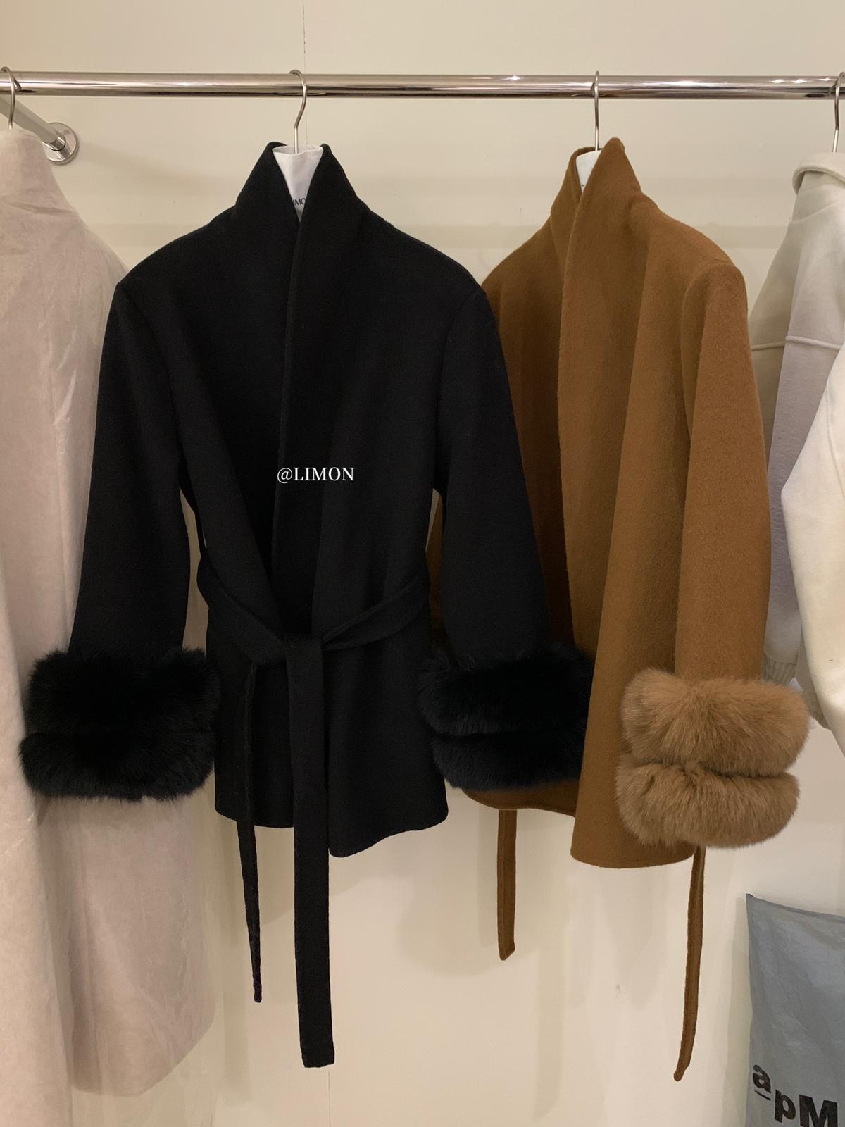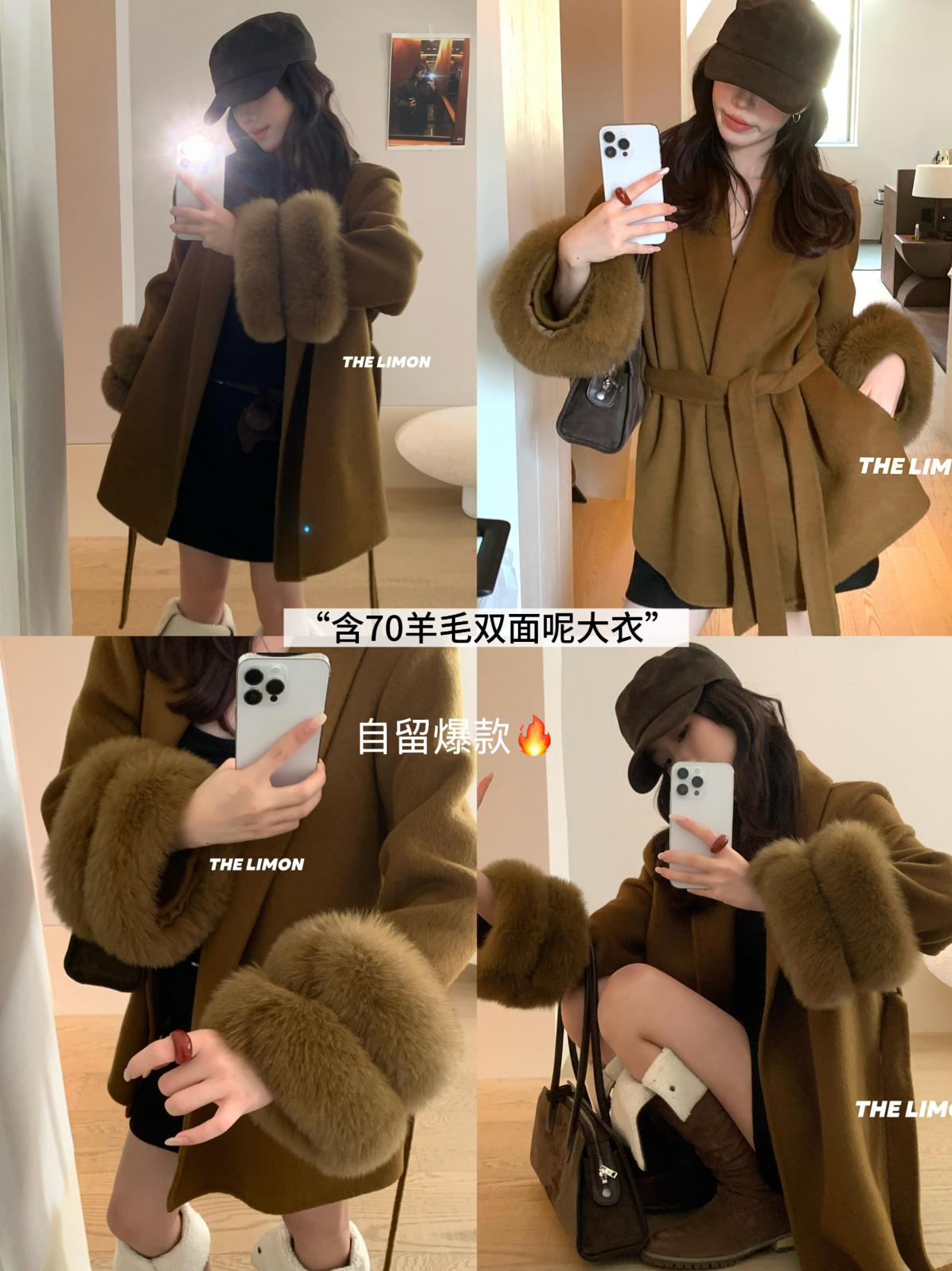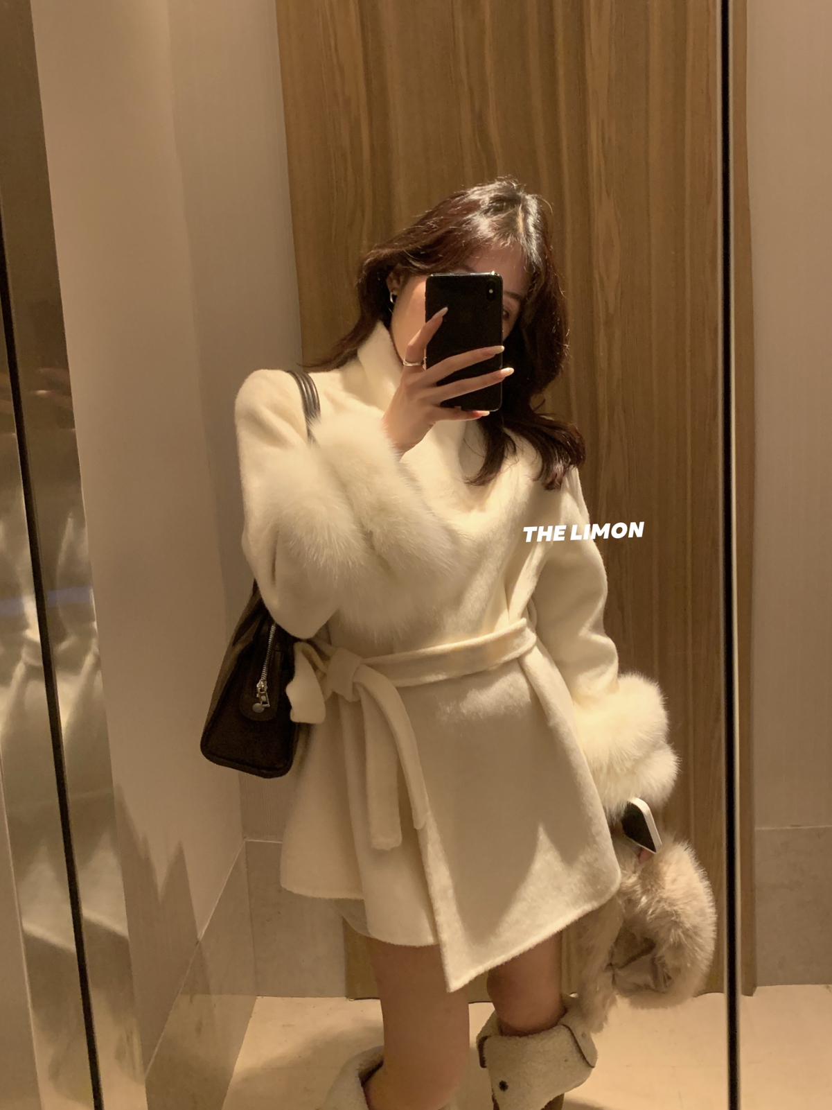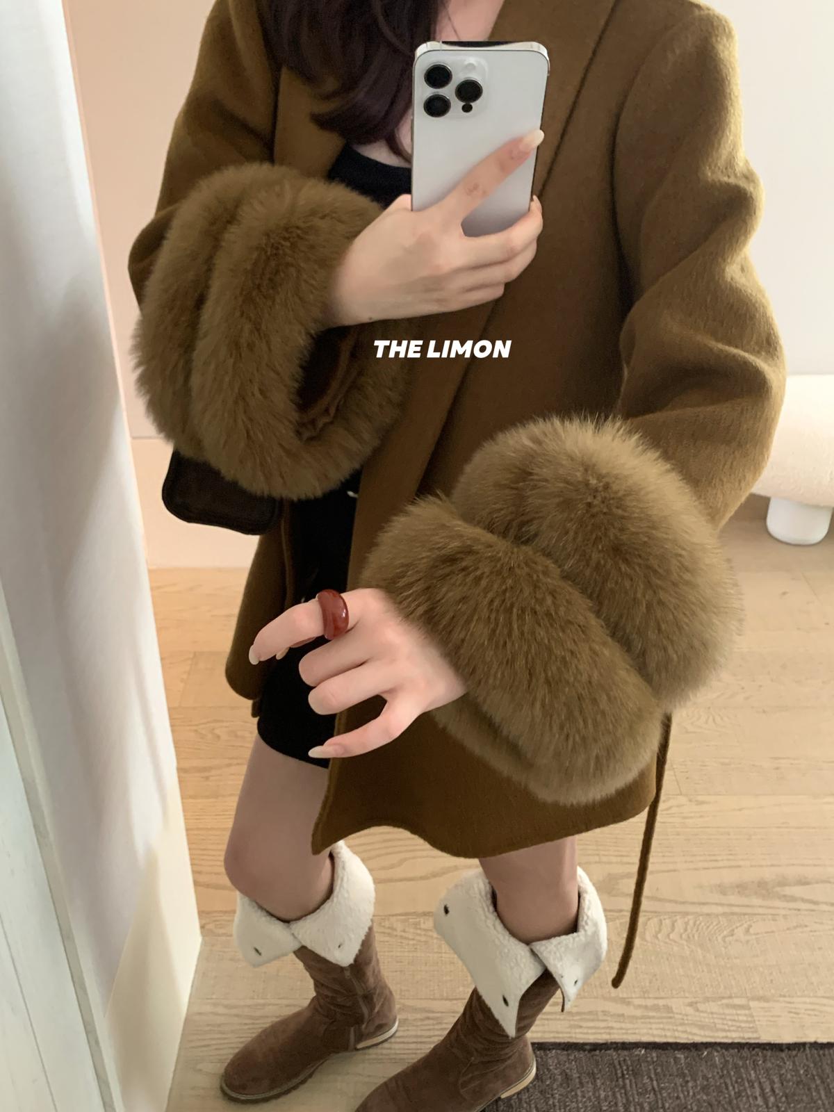 【C7767】高級感雙面尼氣質大衣羊毛外套(配可拆卸真狐狸毛毛圈,腰帶)(含70%羊毛)