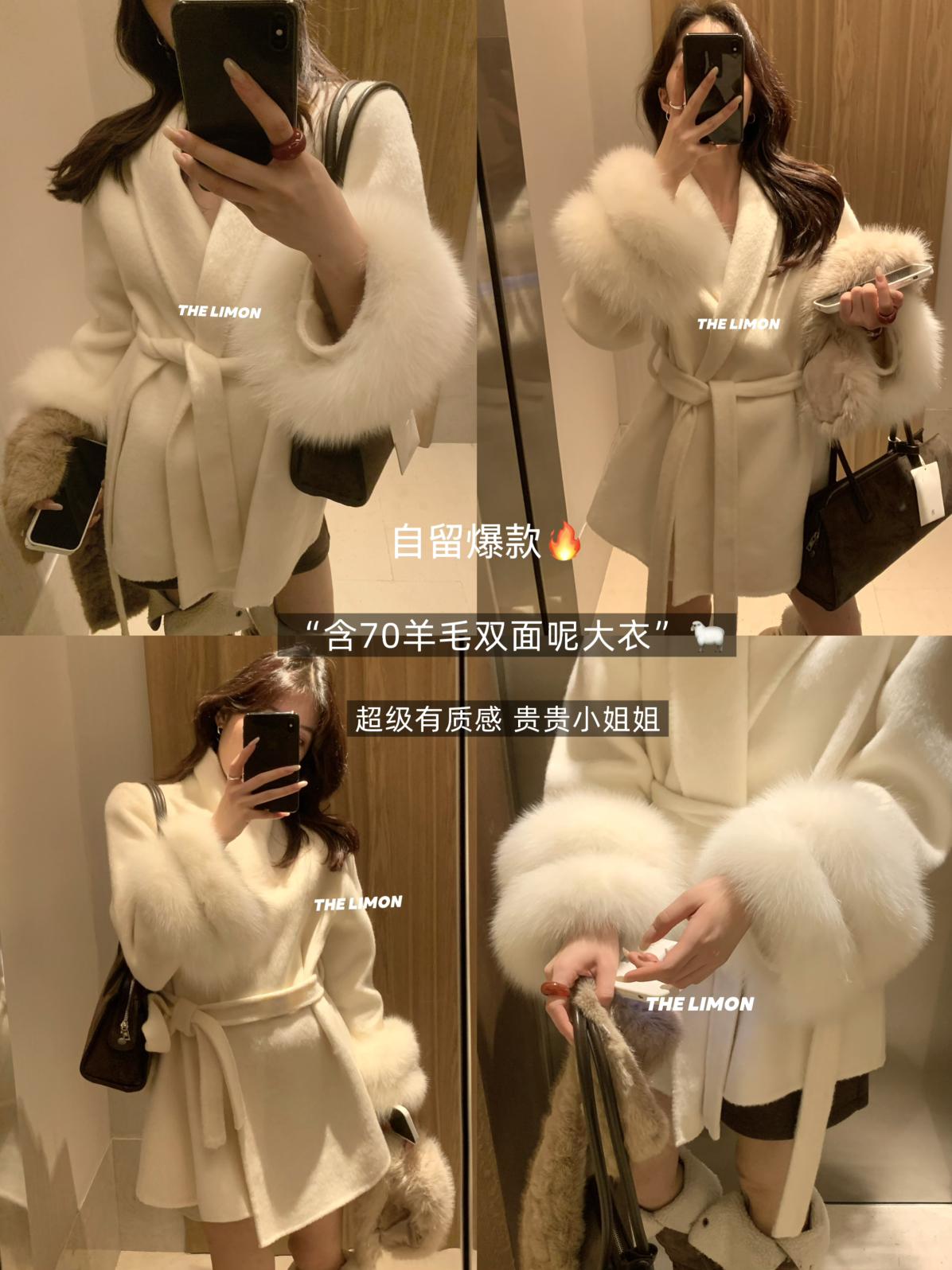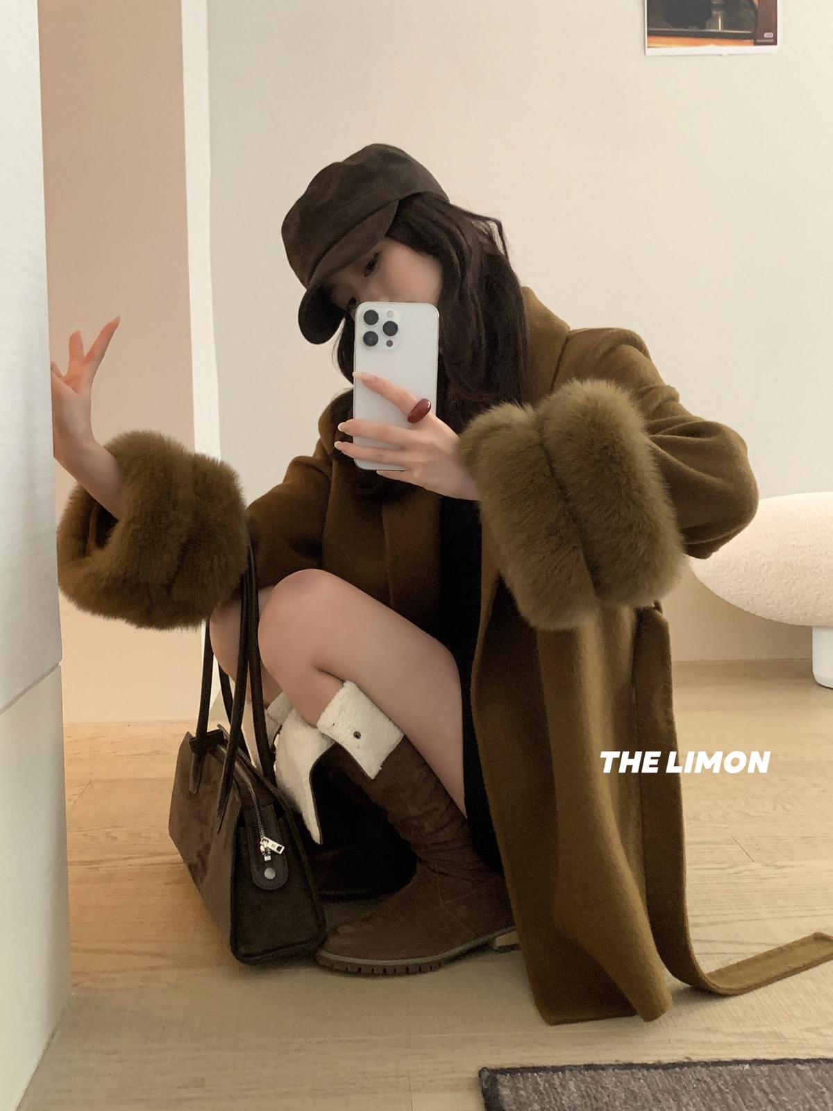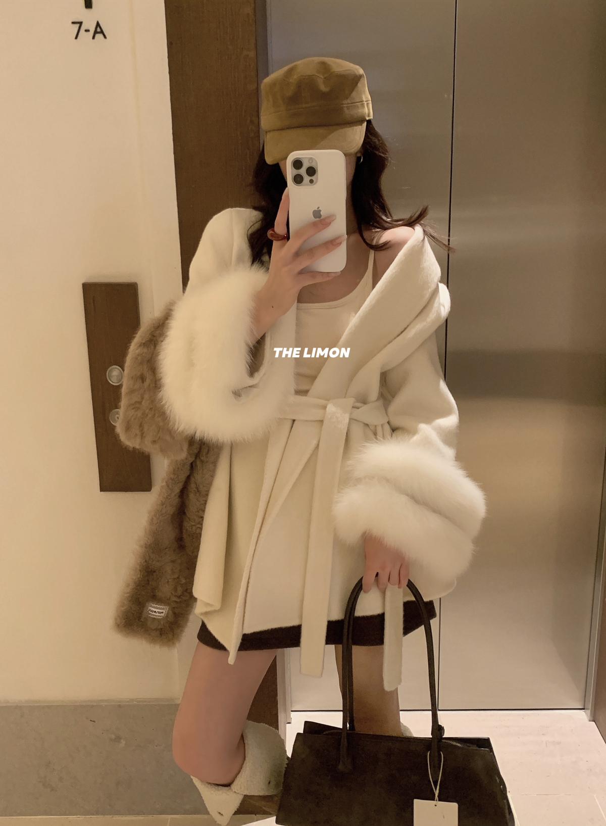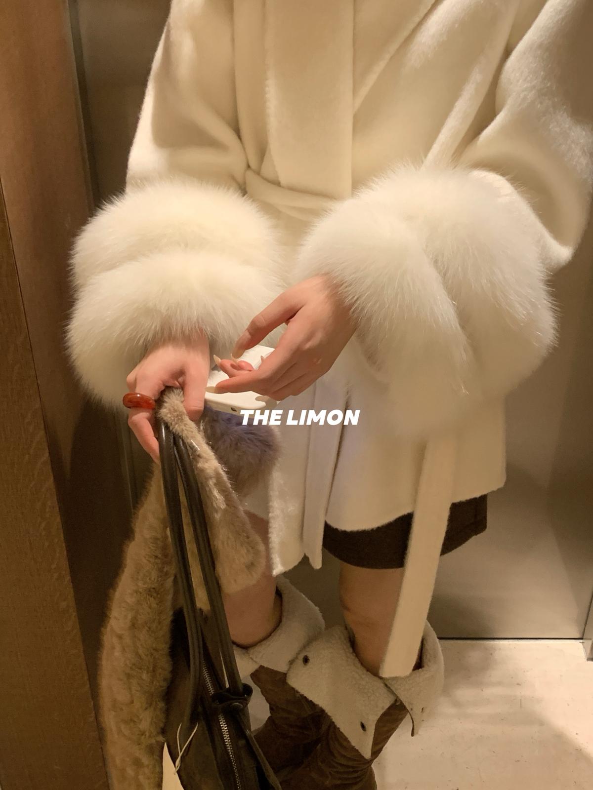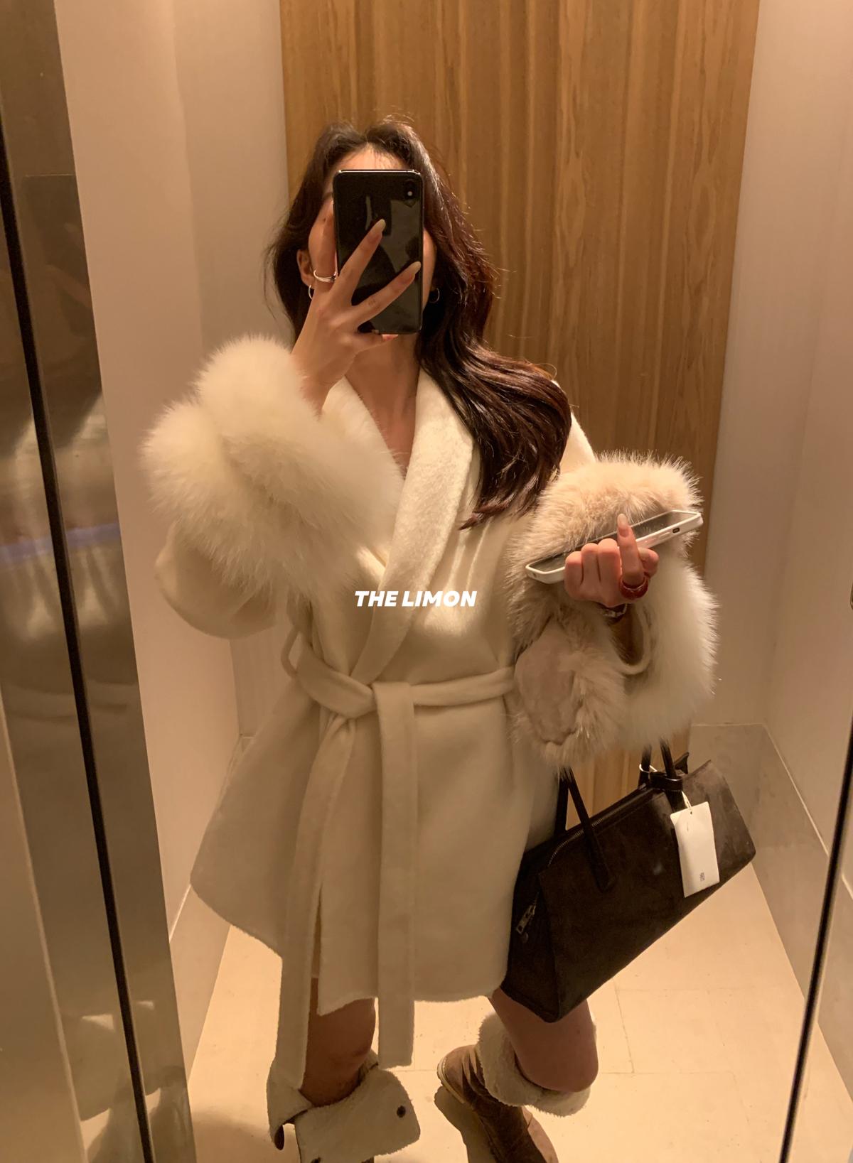 【C7767】高級感雙面尼氣質大衣羊毛外套(配可拆卸真狐狸毛毛圈,腰帶)(含70%羊毛)