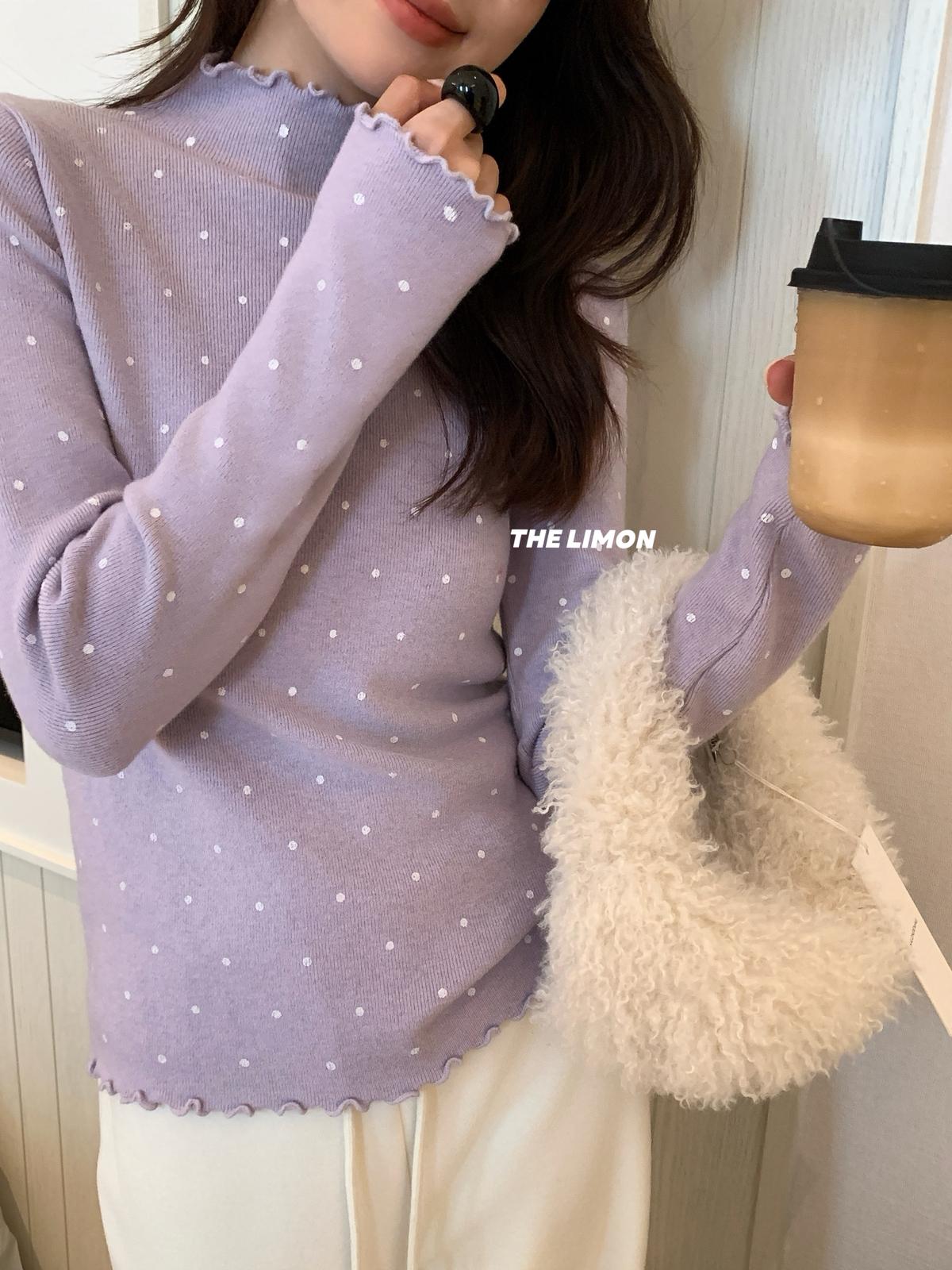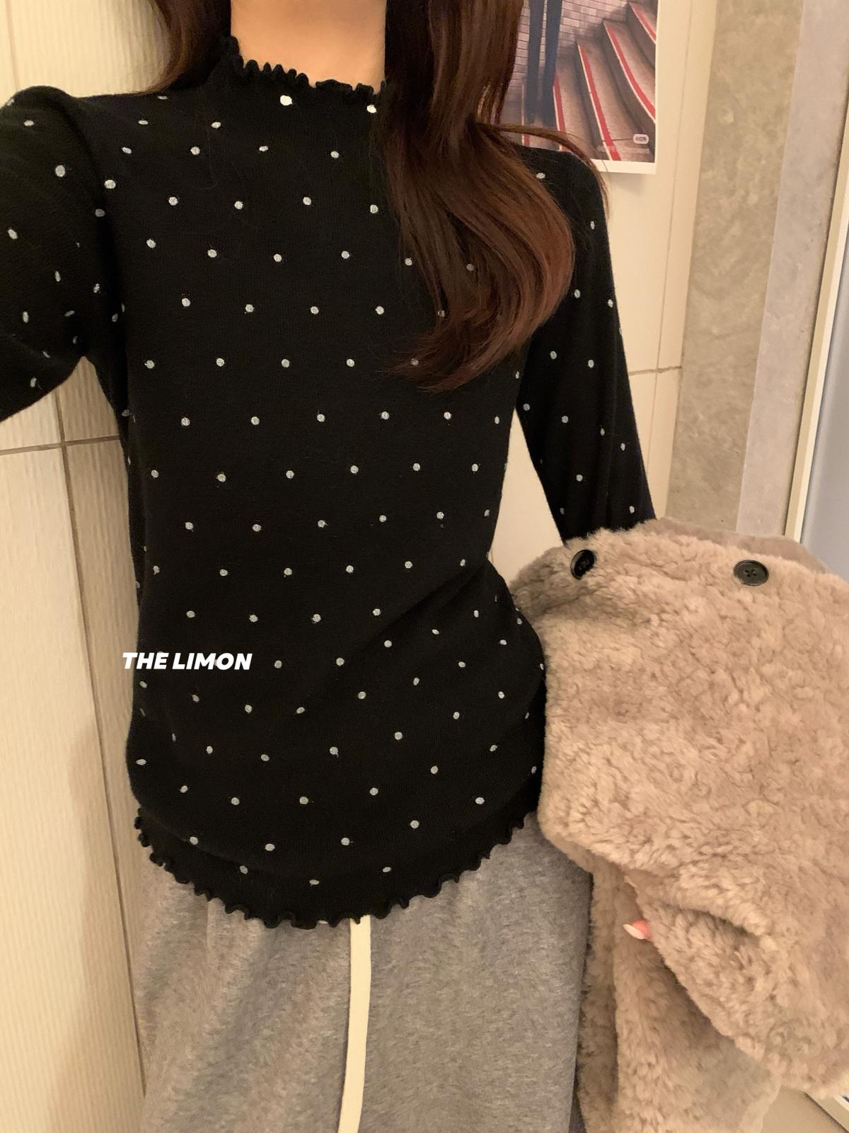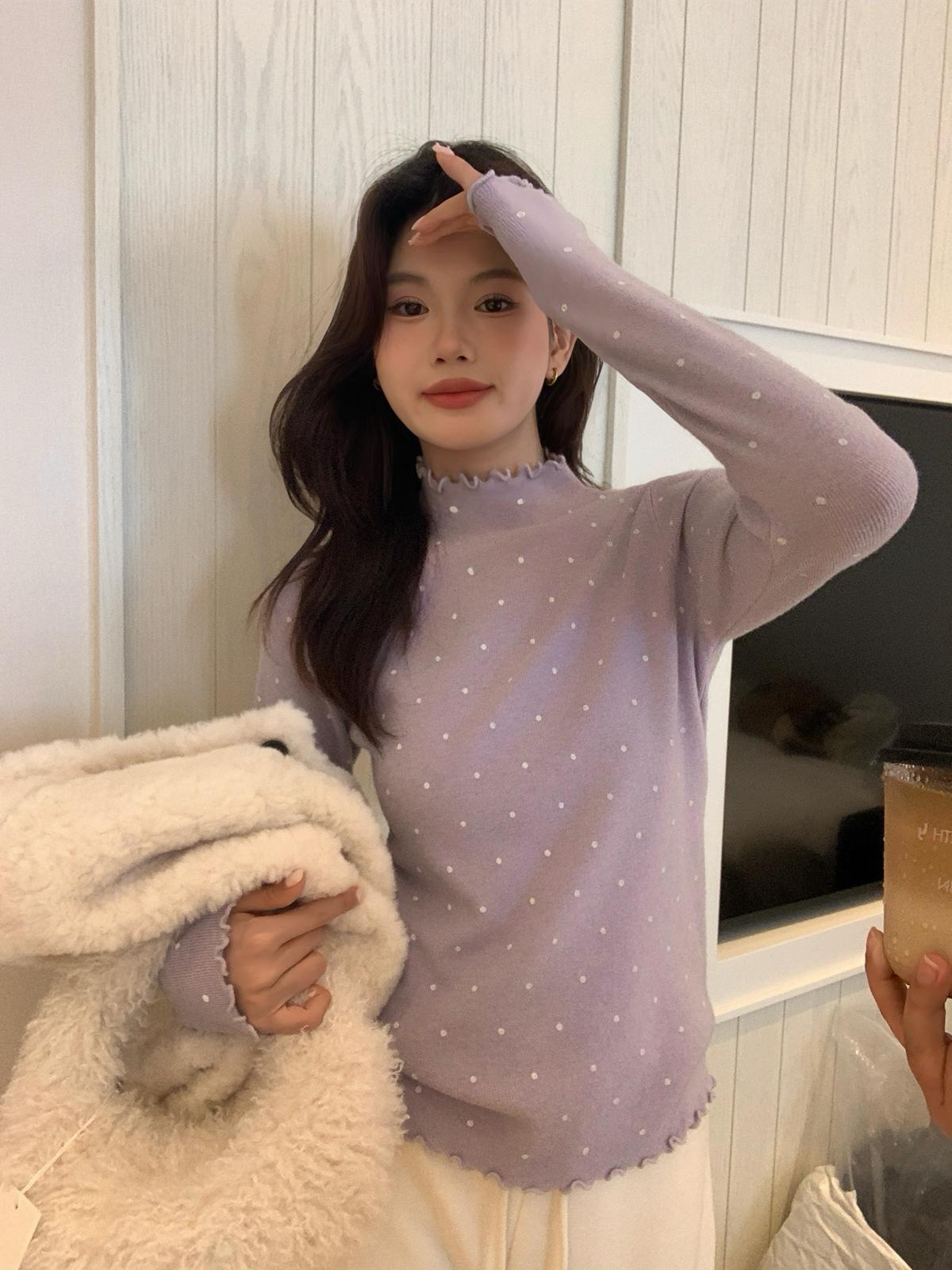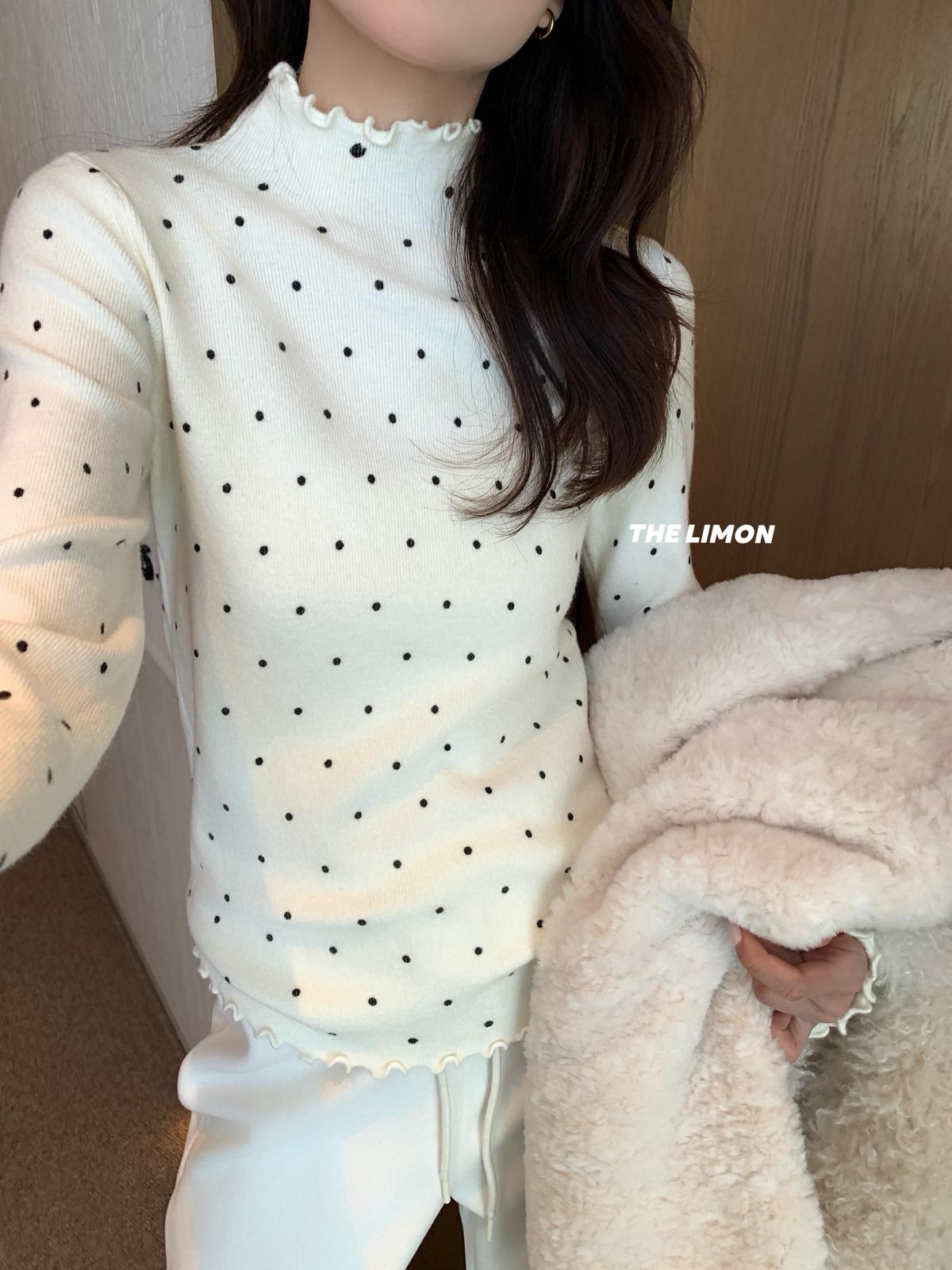 【C7772】高彈木耳邊波點羊毛雲感絨打底針織衫(含6%羊毛)