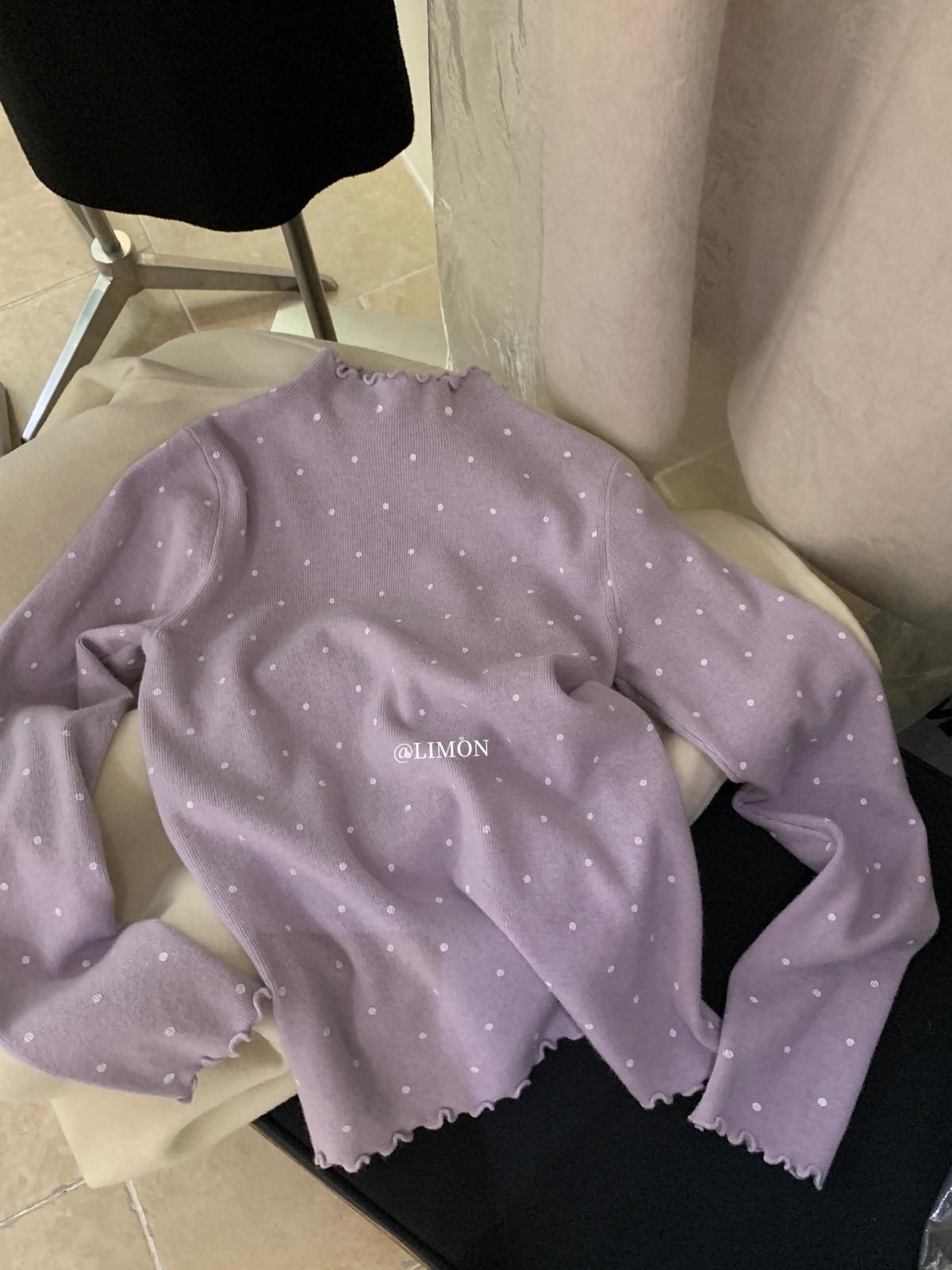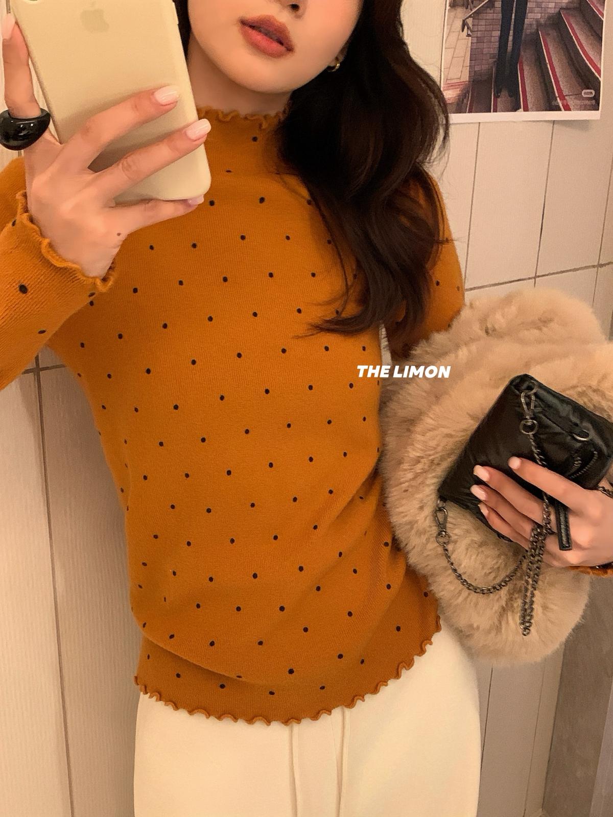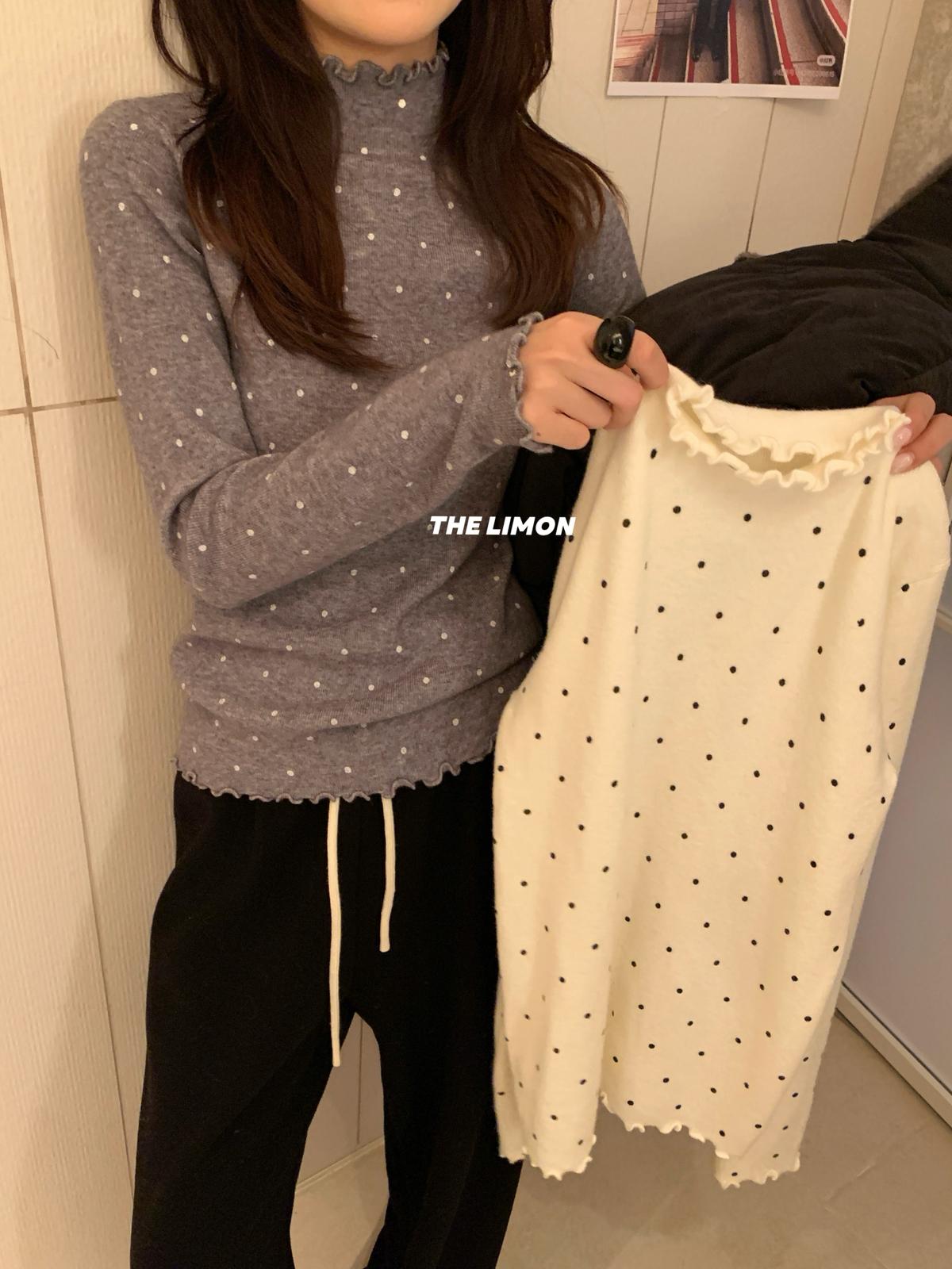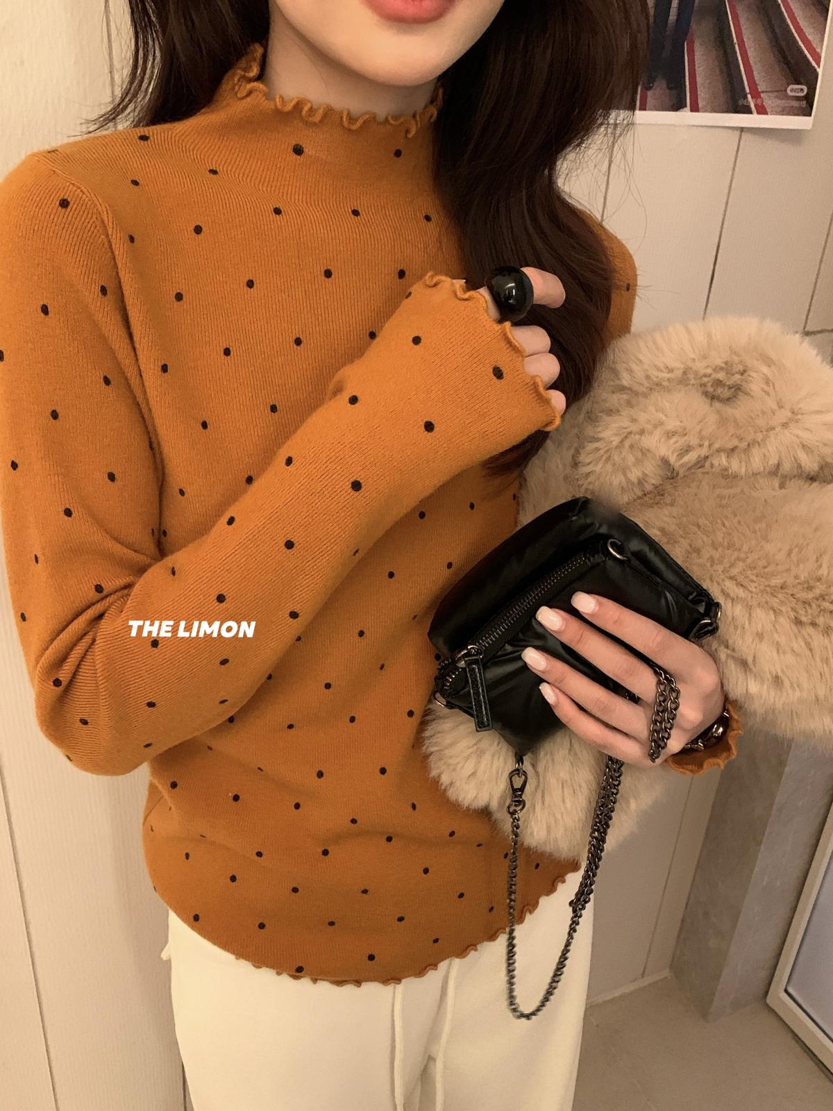 【C7772】高彈木耳邊波點羊毛雲感絨打底針織衫(含6%羊毛)