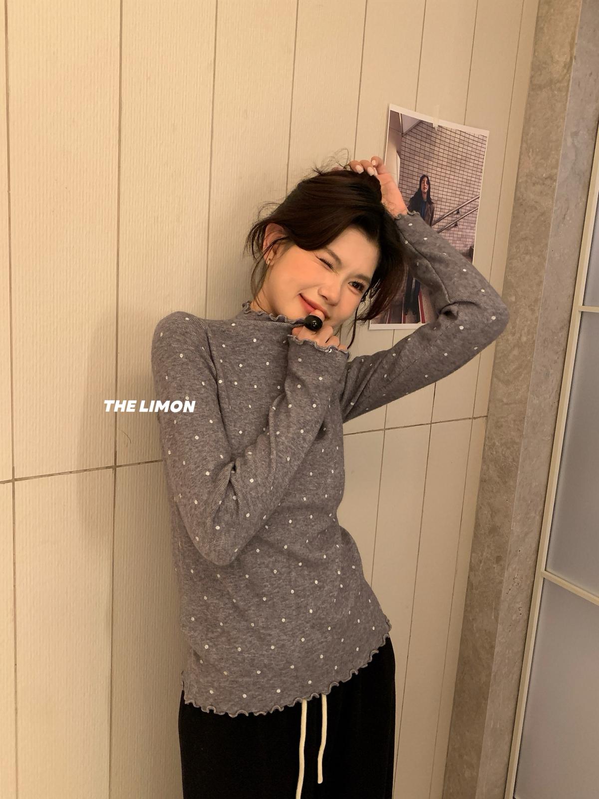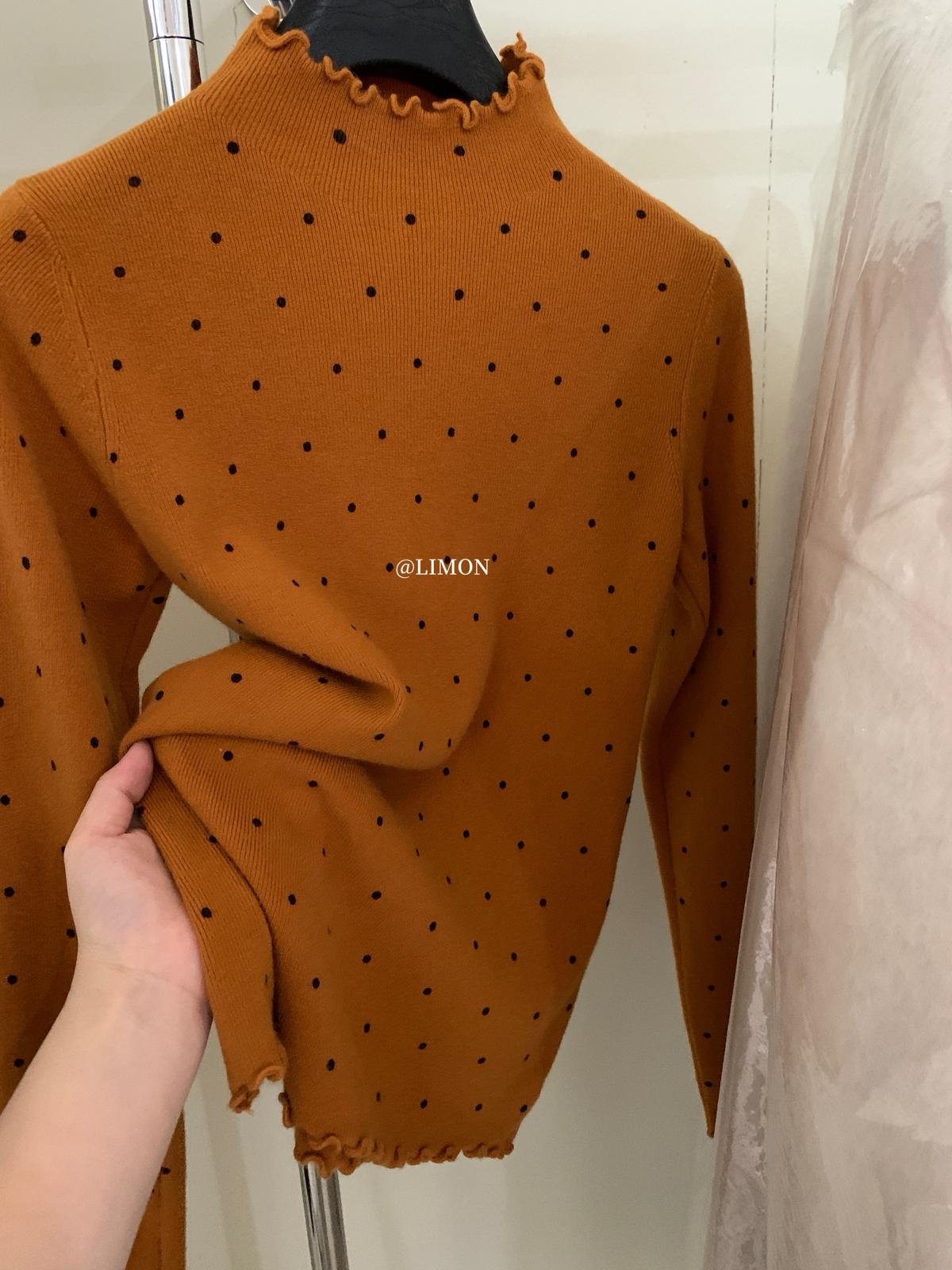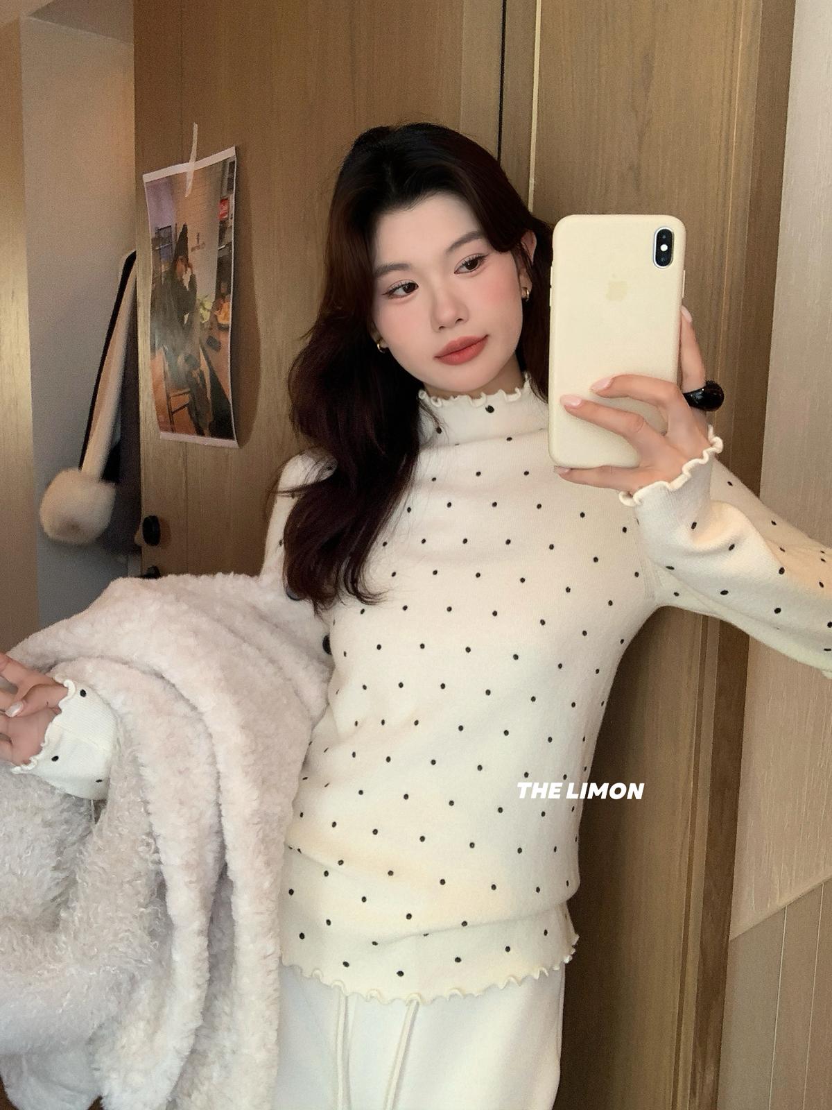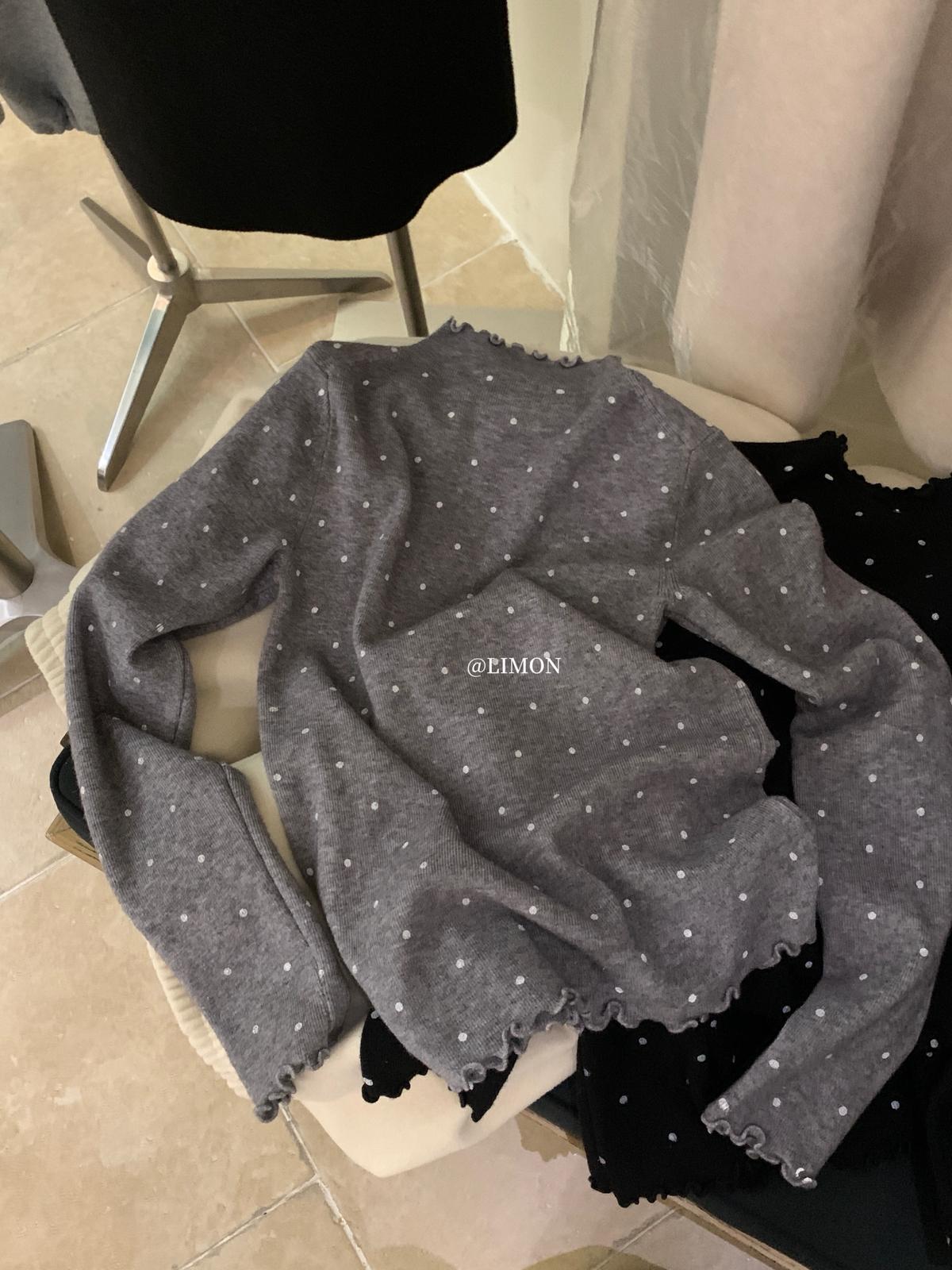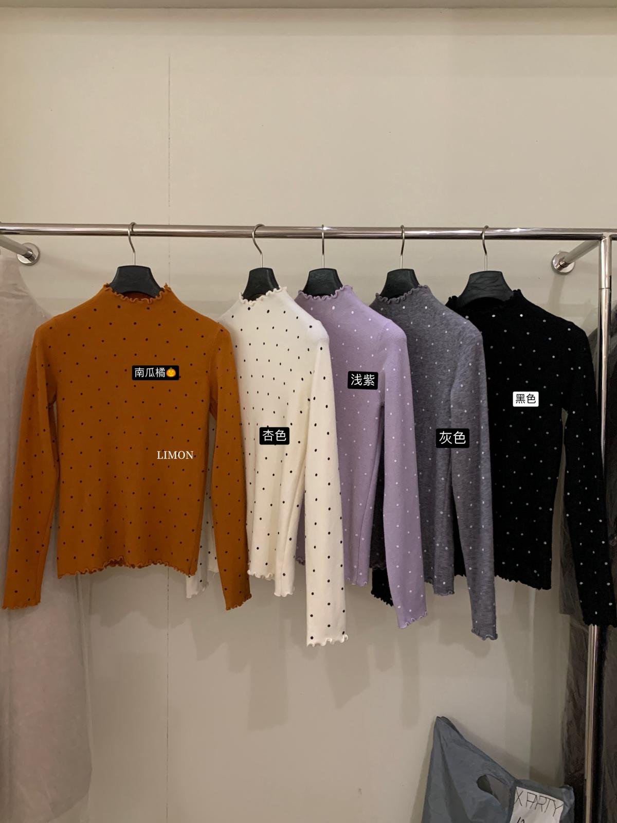 【C7772】高彈木耳邊波點羊毛雲感絨打底針織衫(含6%羊毛)
