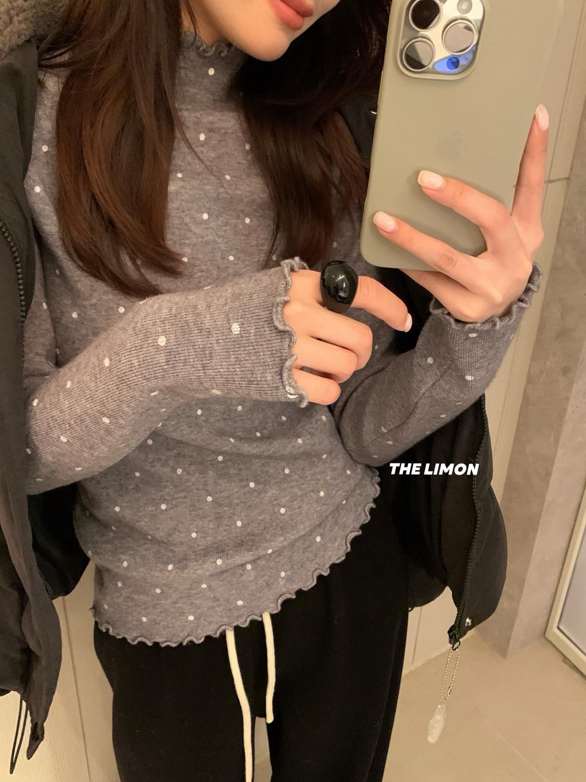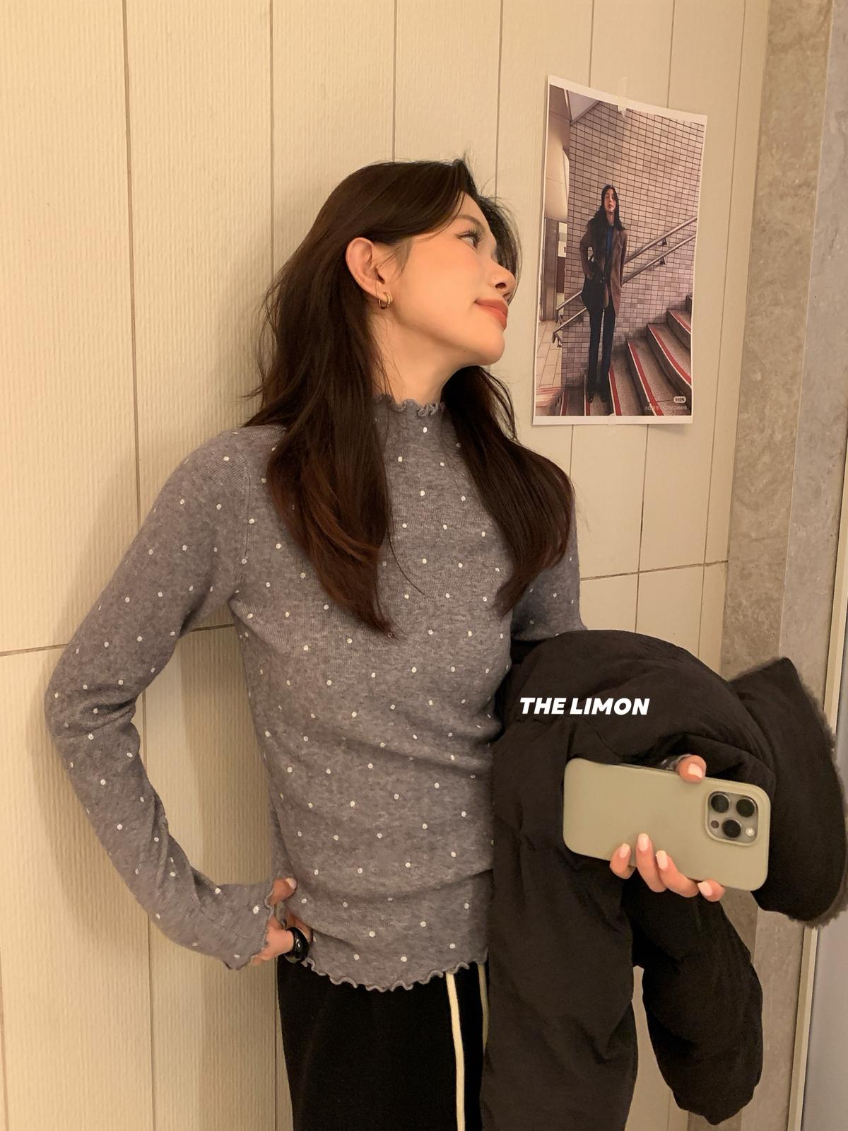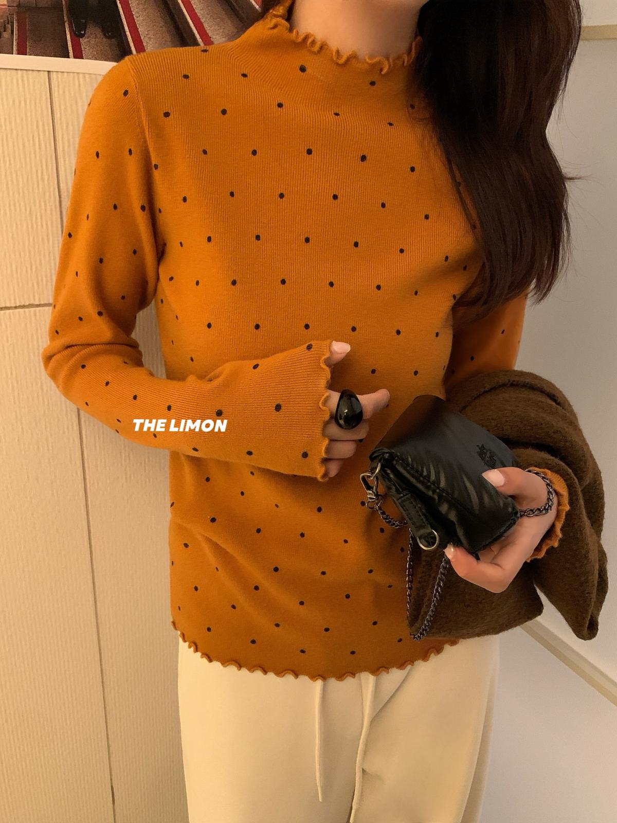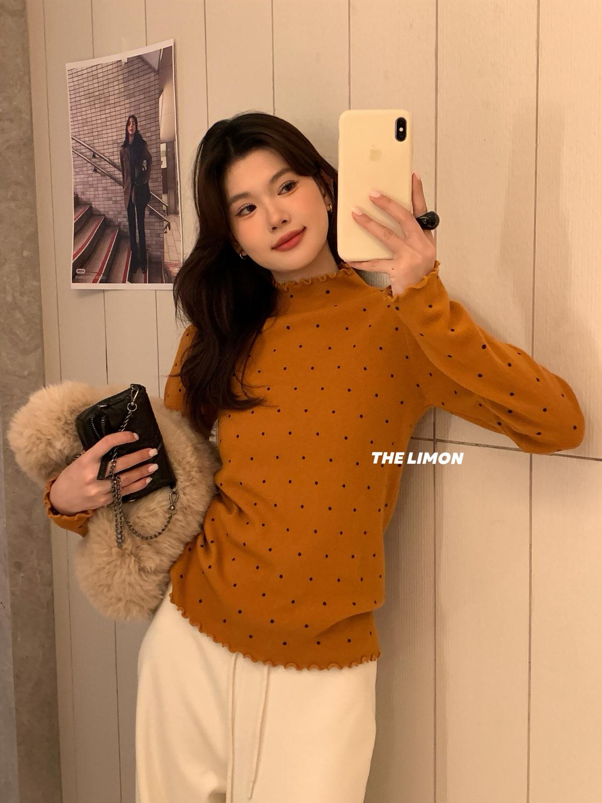 【C7772】高彈木耳邊波點羊毛雲感絨打底針織衫(含6%羊毛)