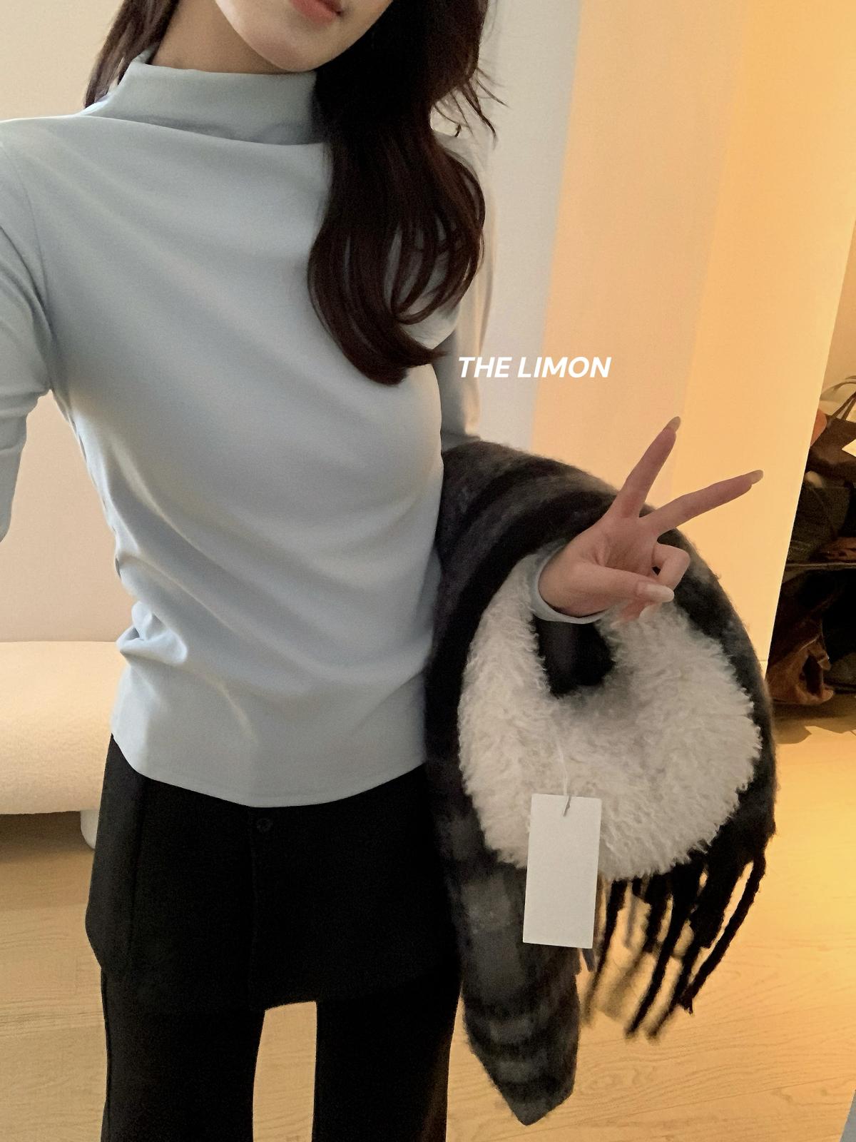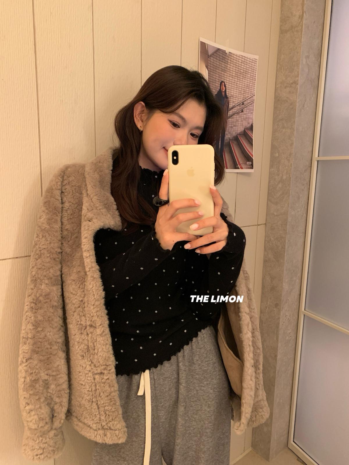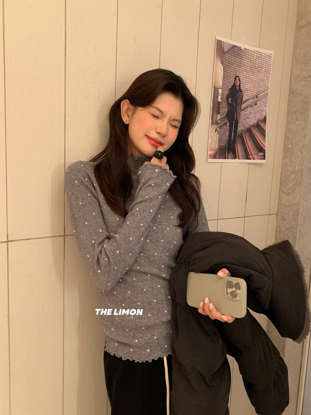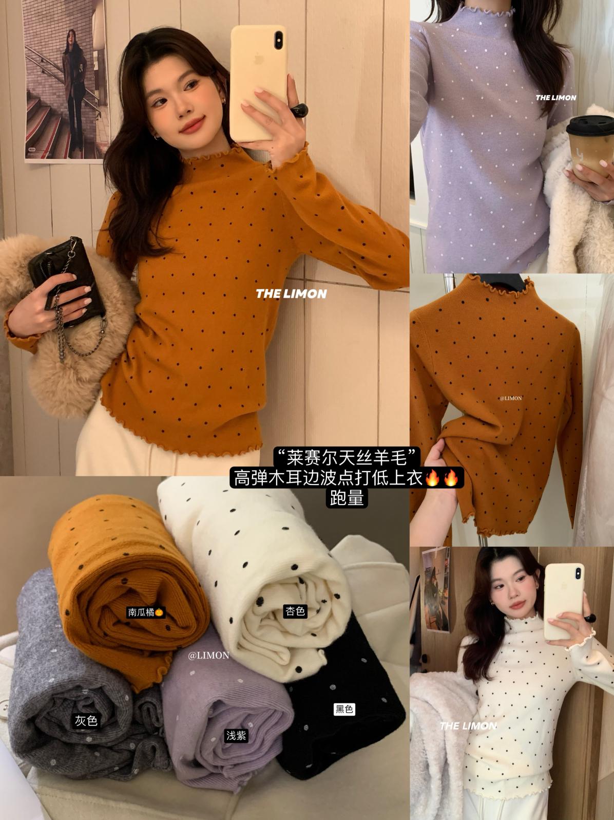【C7772】高彈木耳邊波點羊毛雲感絨打底針織衫(含6%羊毛)