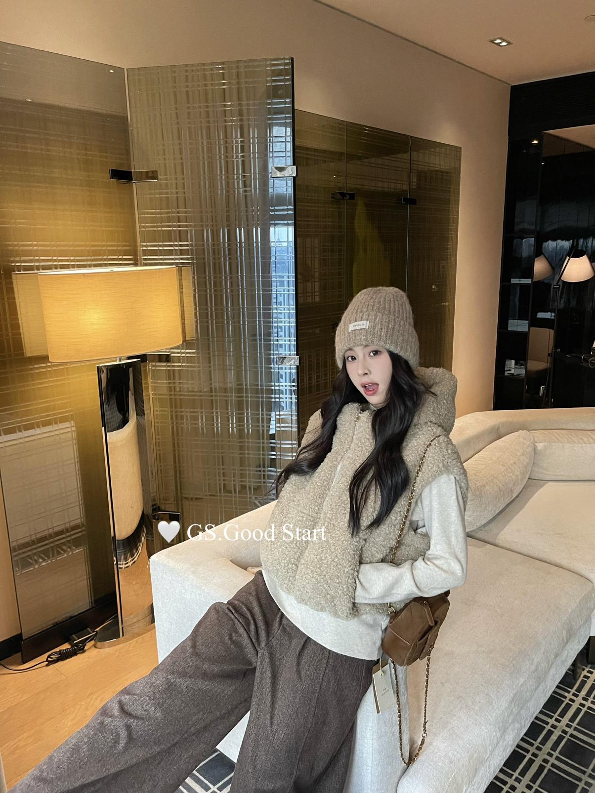【C7738】反應超好!抗拒不了毛絨絨~太萌了!秋冬甜美百搭羊羔毛連帽馬甲短外套