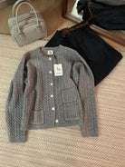3. 【C7741】經典老錢風小麻花圓領羊毛混紡開衫保暖毛衣(含8%羊毛)