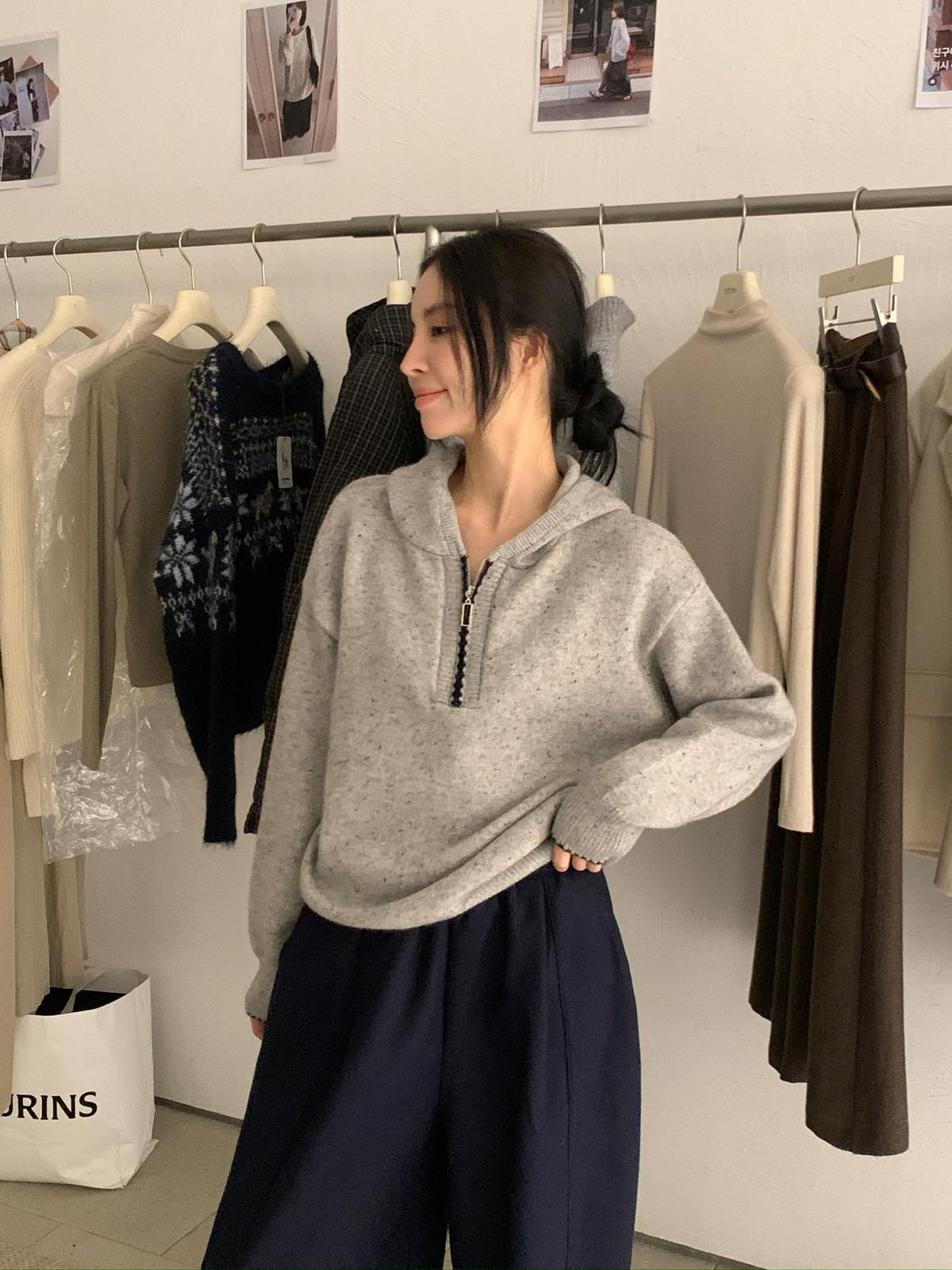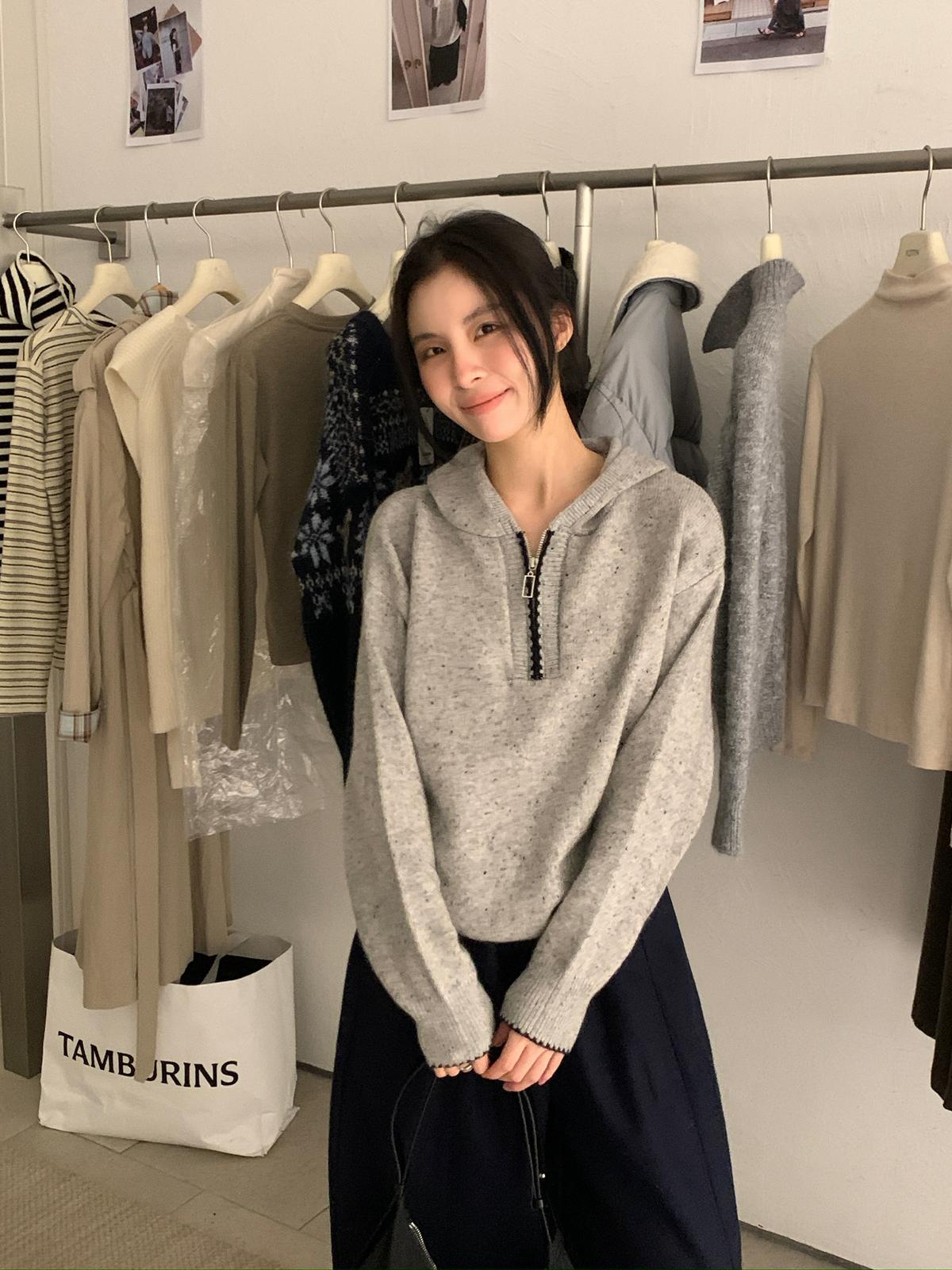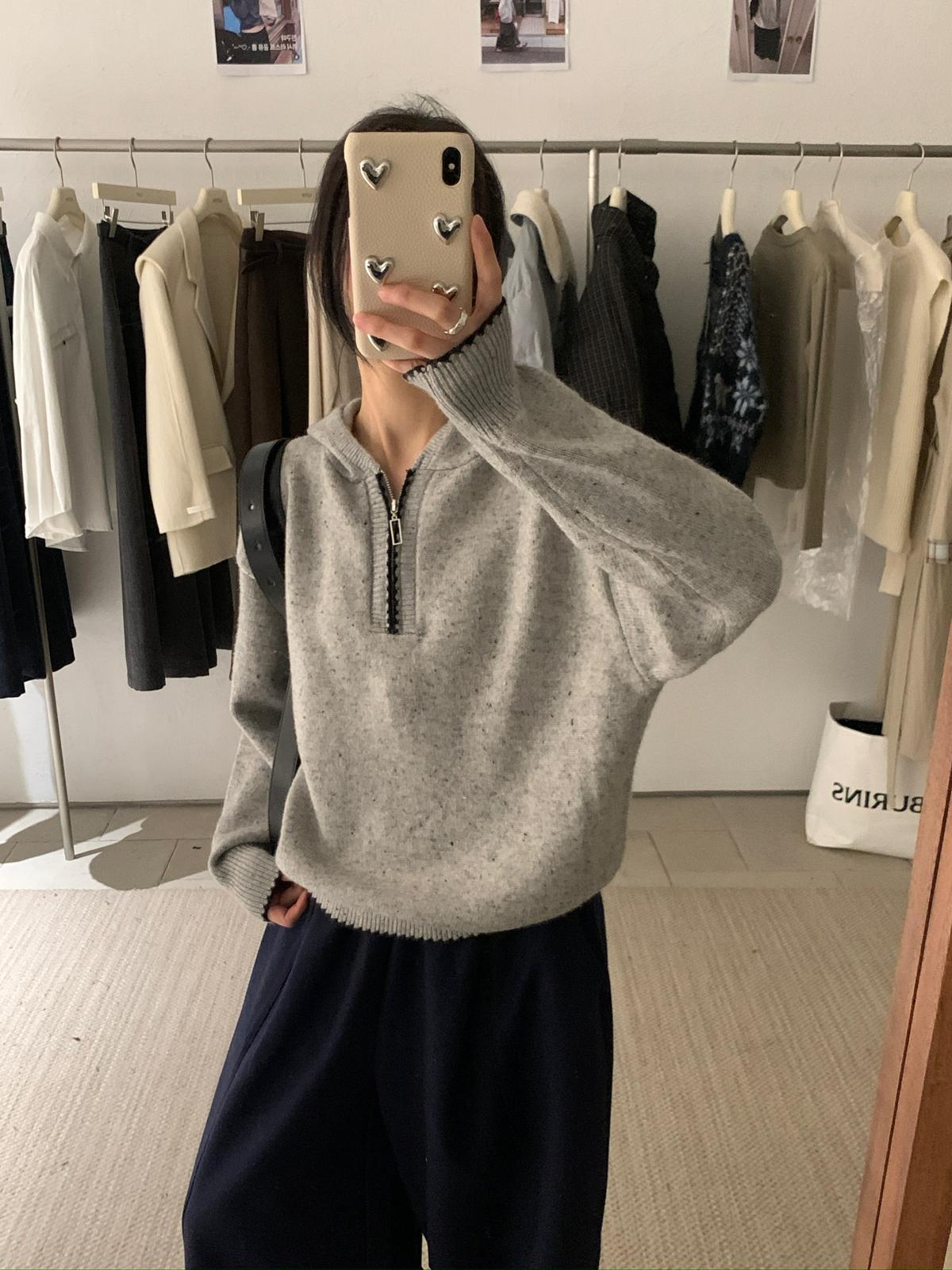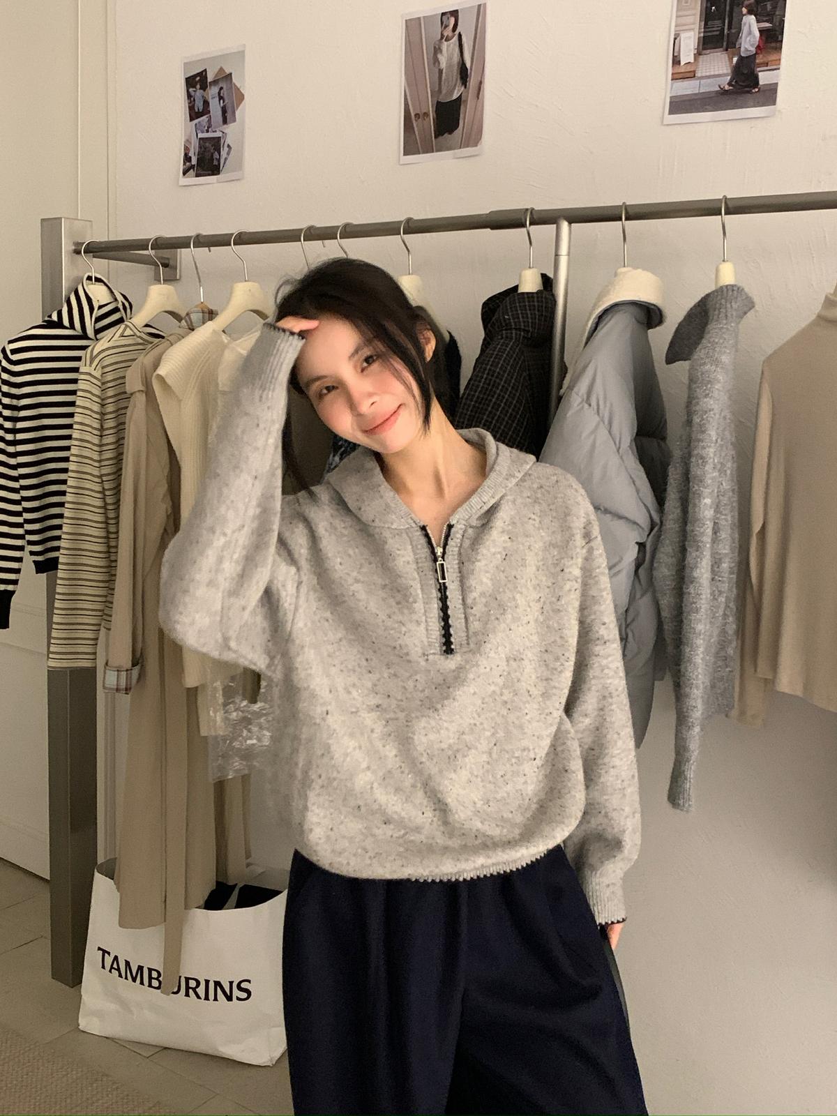 3. 【C7742】韓系學院風連帽設計感半開領保暖毛衣(含17.7%兔毛)