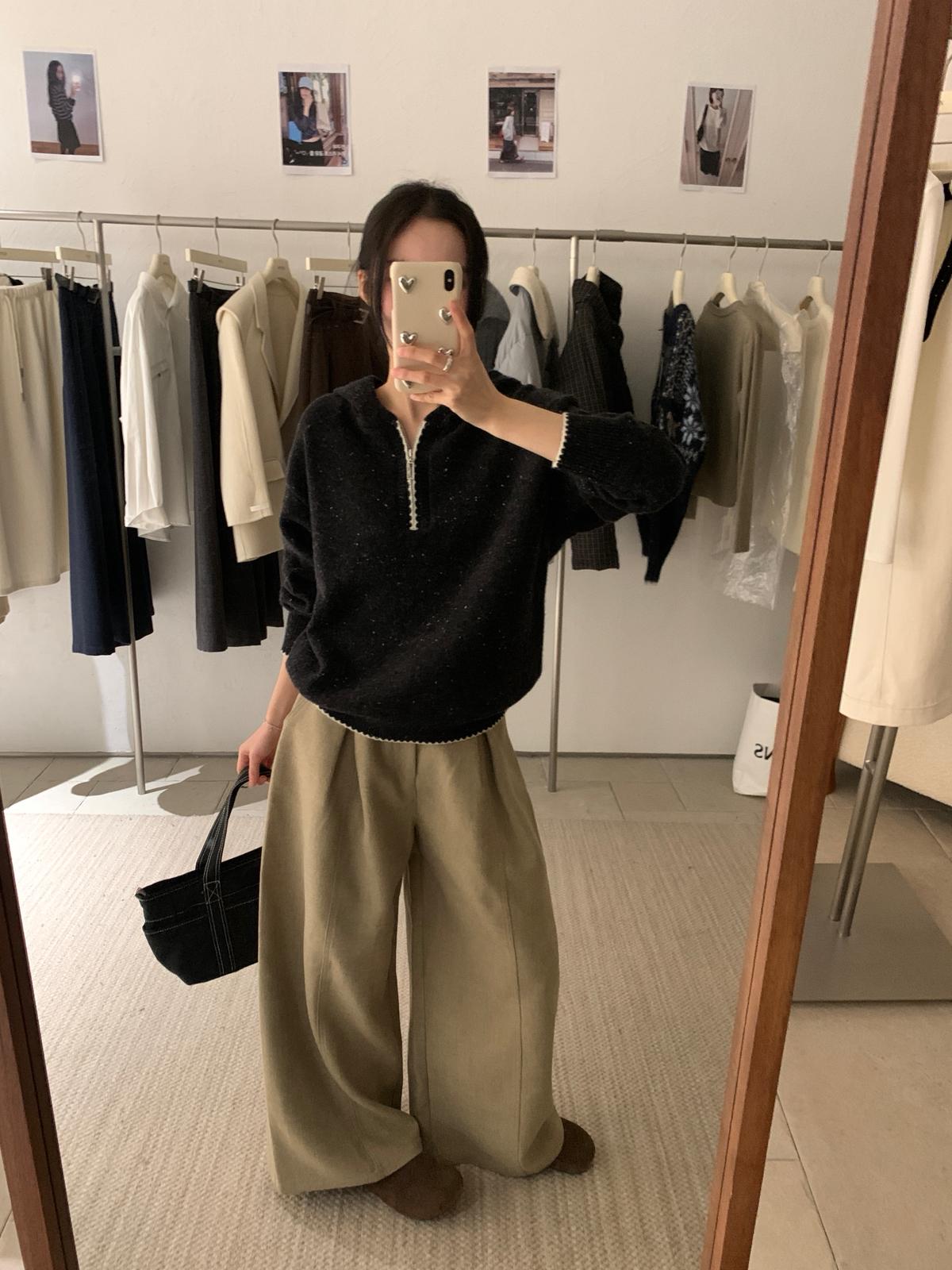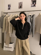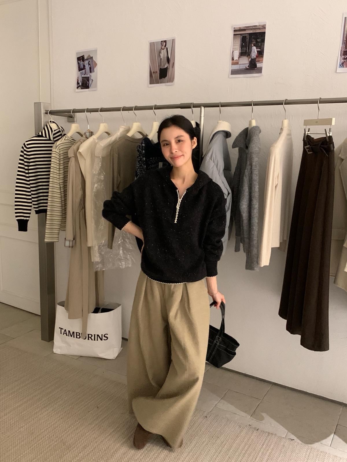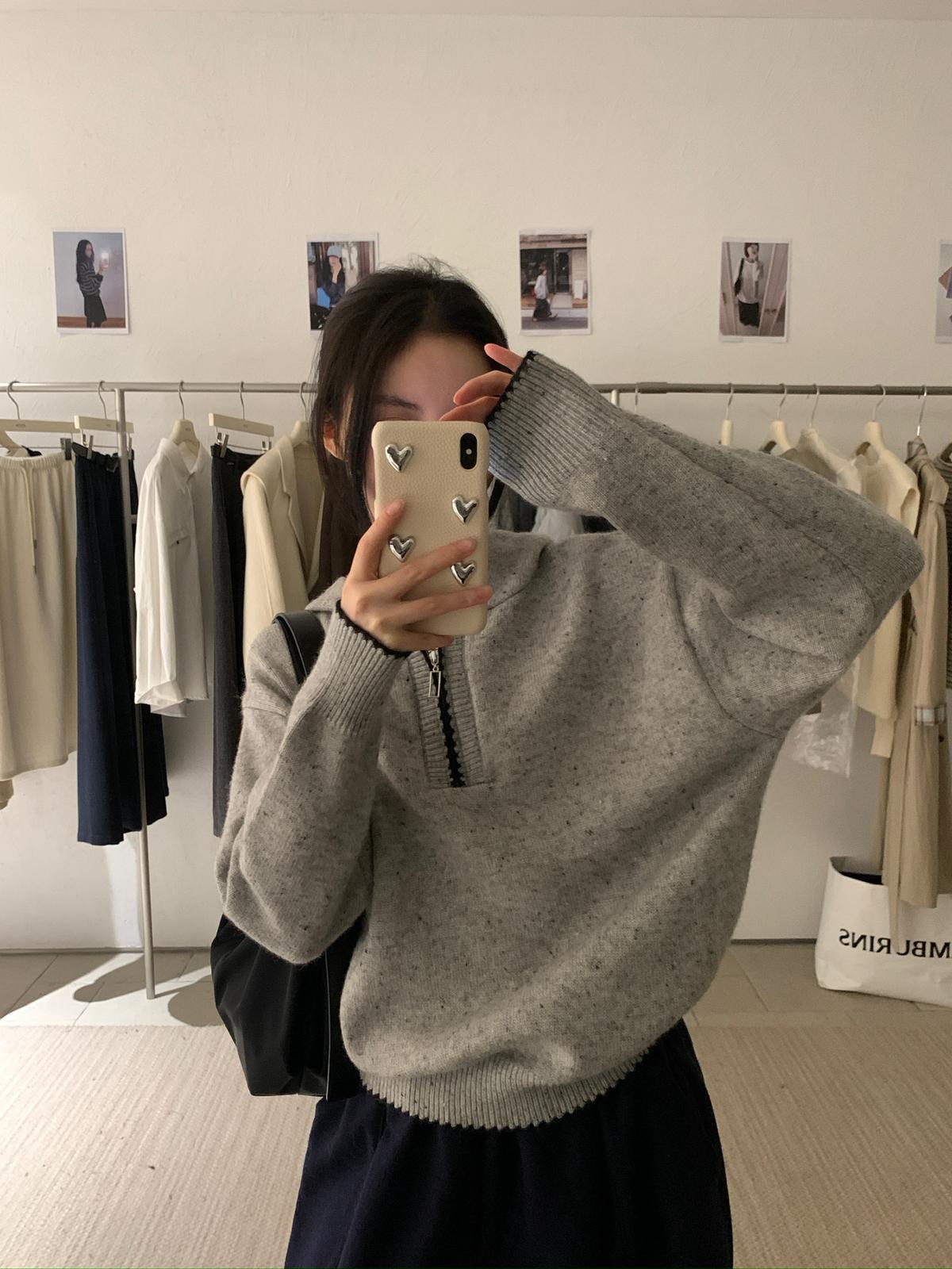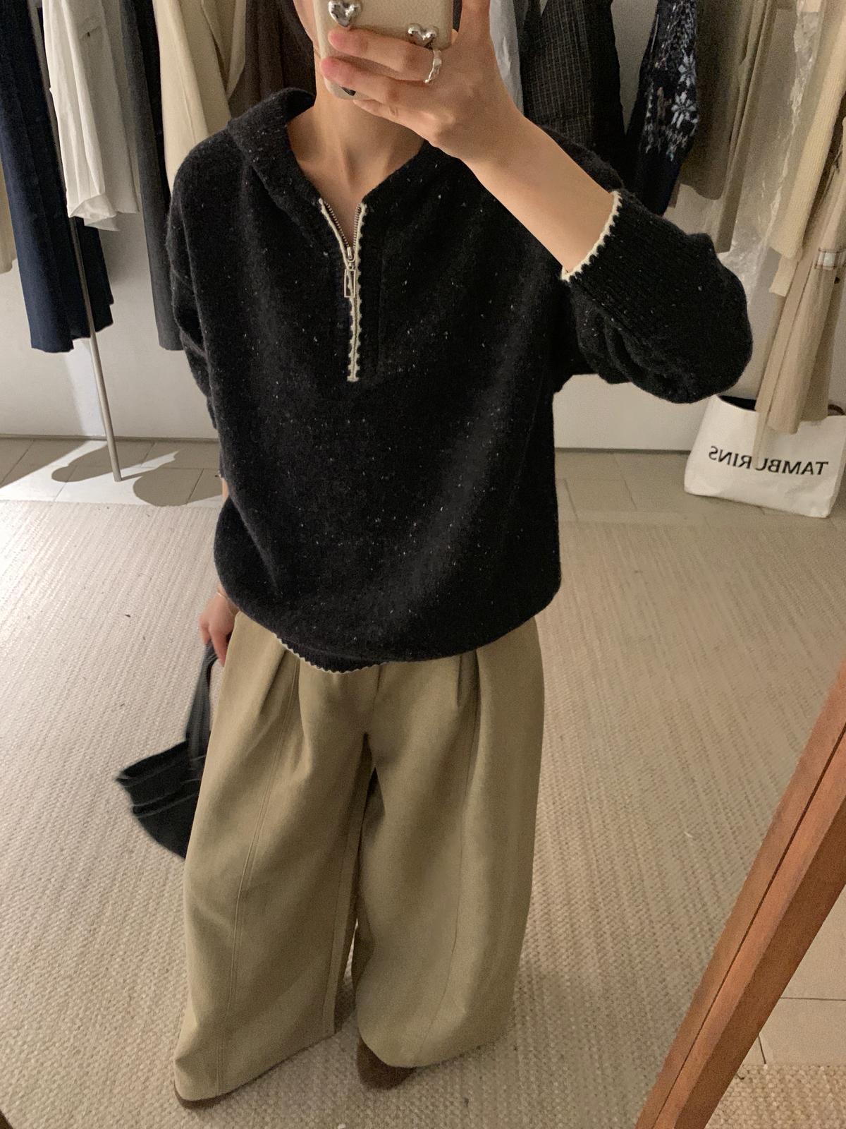 3. 【C7742】韓系學院風連帽設計感半開領保暖毛衣(含17.7%兔毛)
