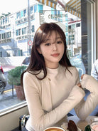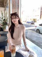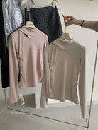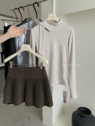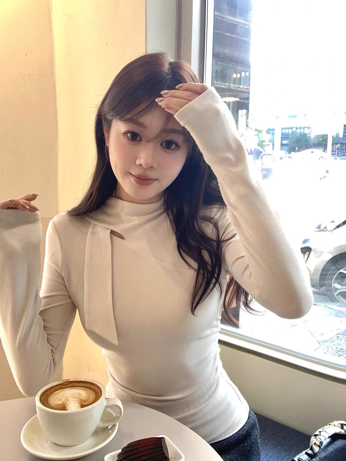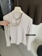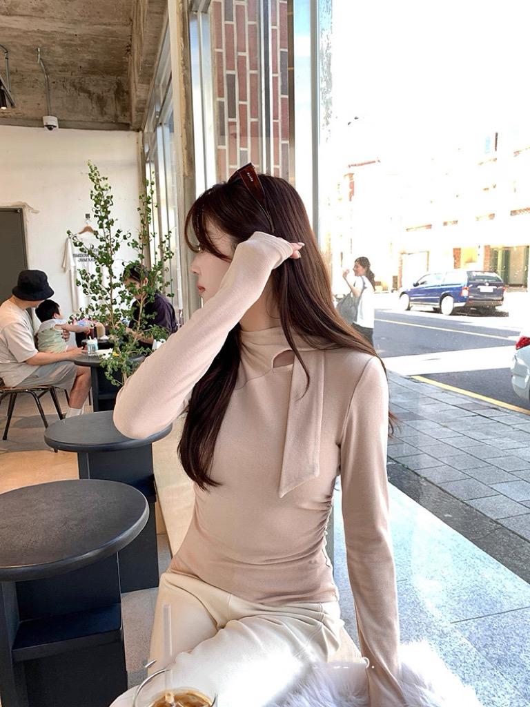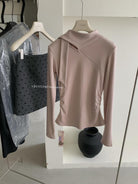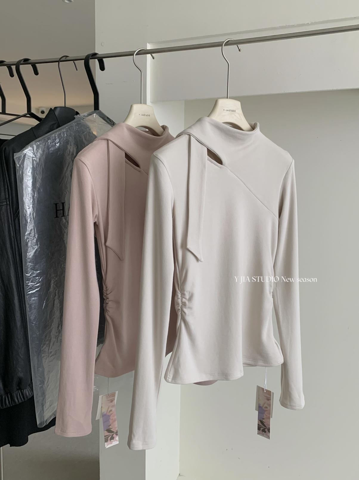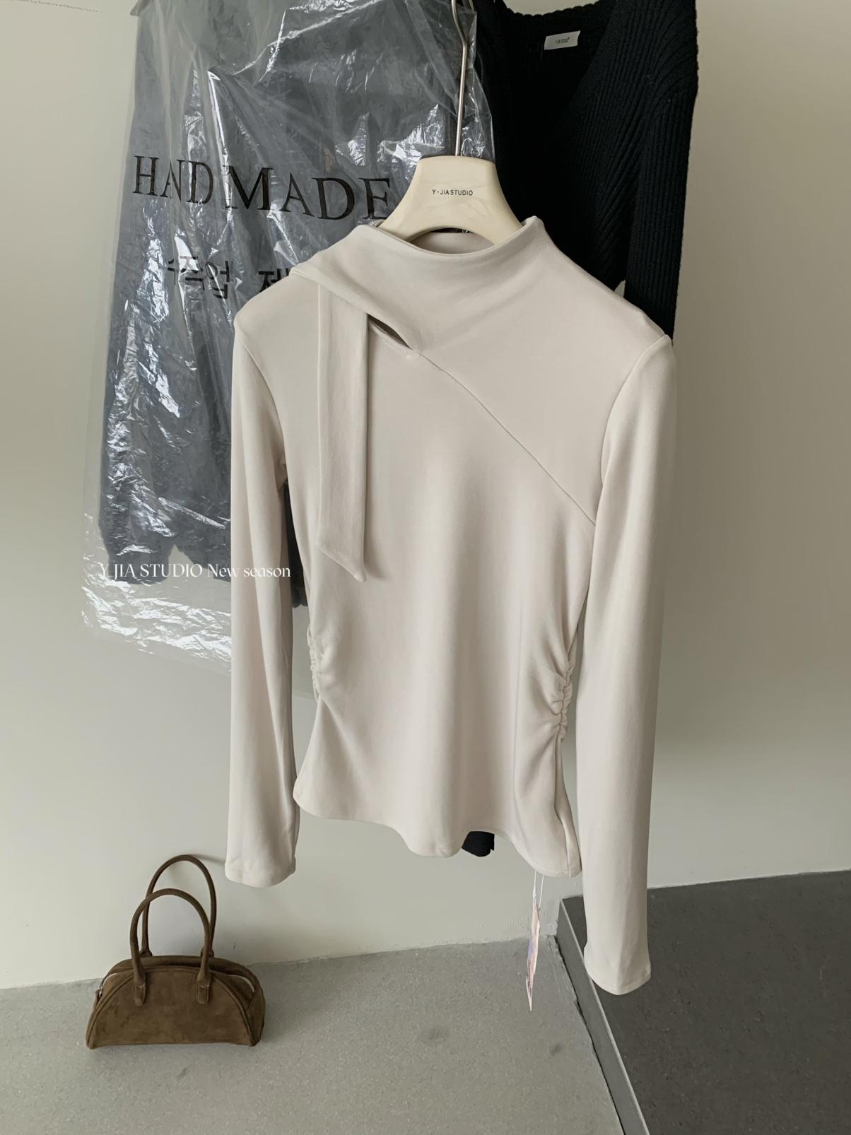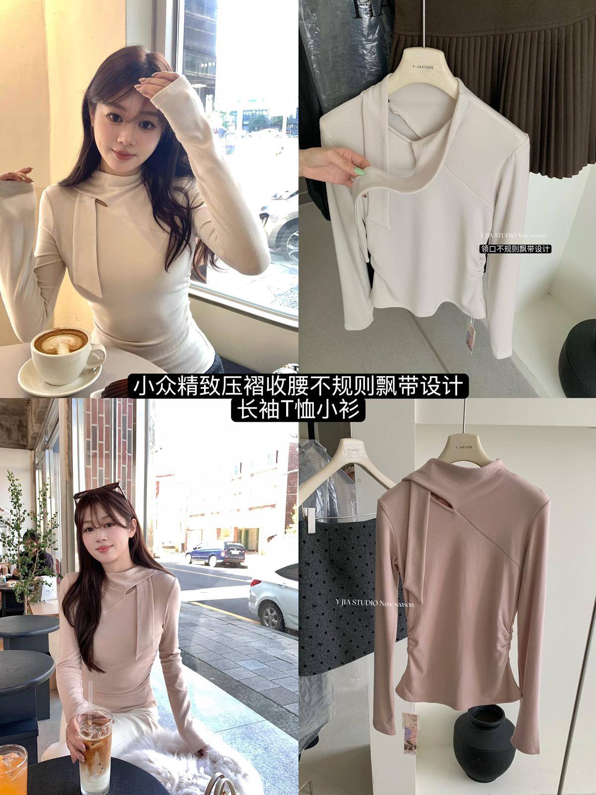 3. 【C7751】磨毛小衆精緻壓褶收腰不規則飄帶設計長袖T恤