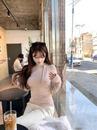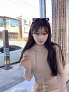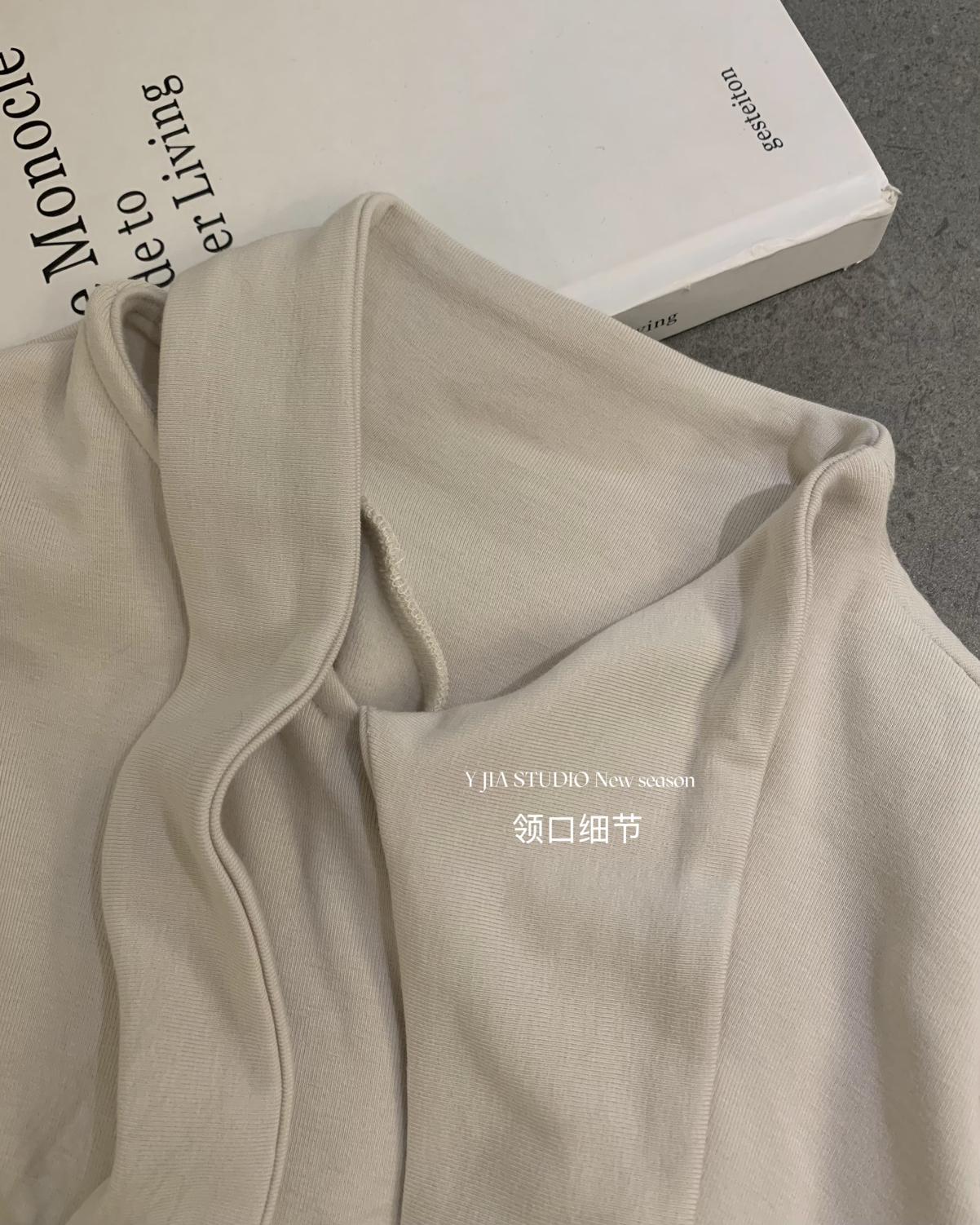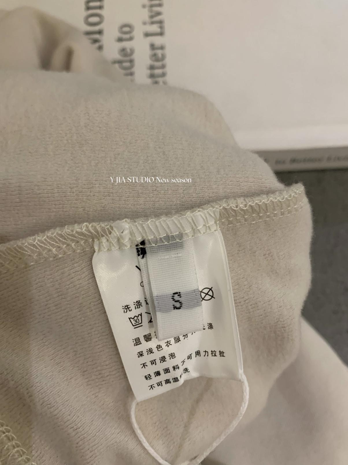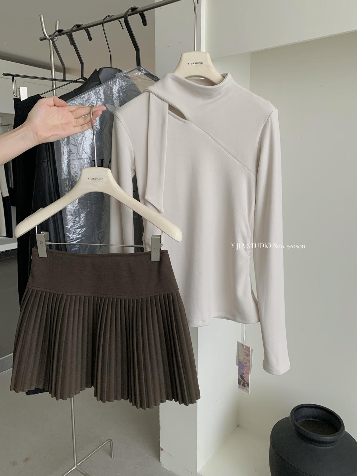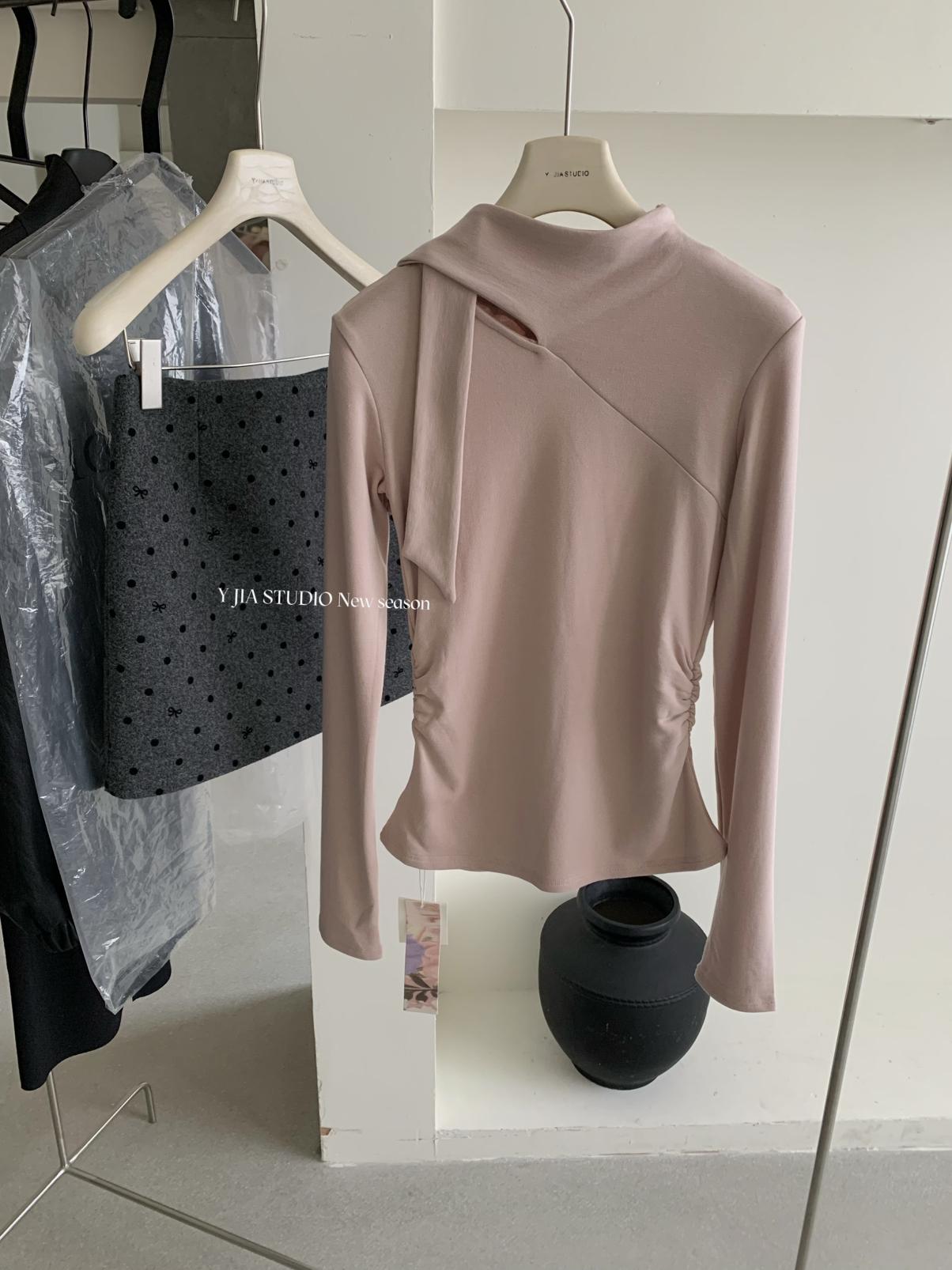 【C7751】磨毛小衆精緻壓褶收腰不規則飄帶設計長袖T恤