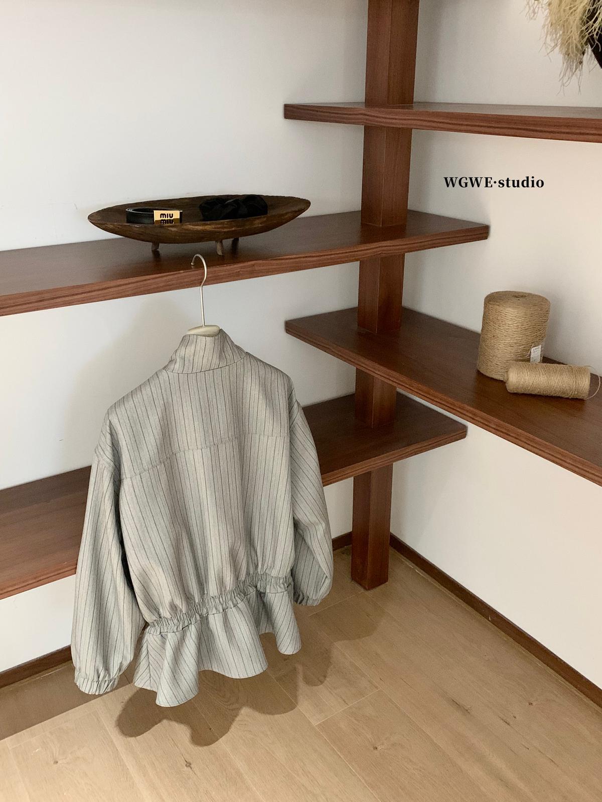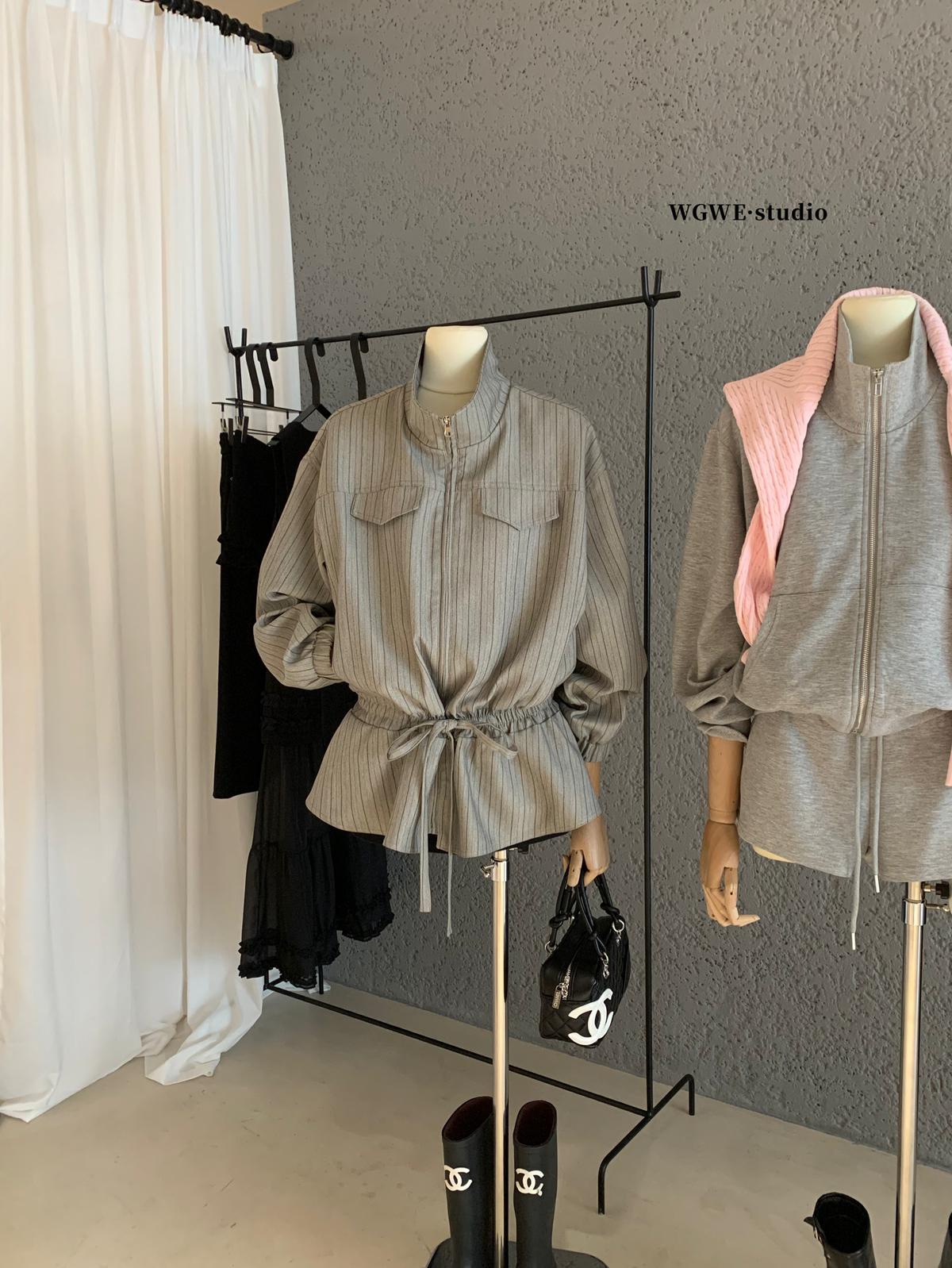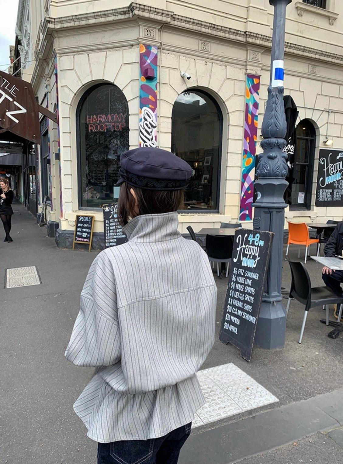 3. 【C7758】復古條紋立領長袖開衫外套美式寬鬆休閒氣質夾克