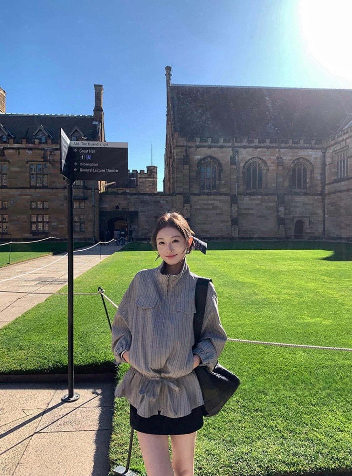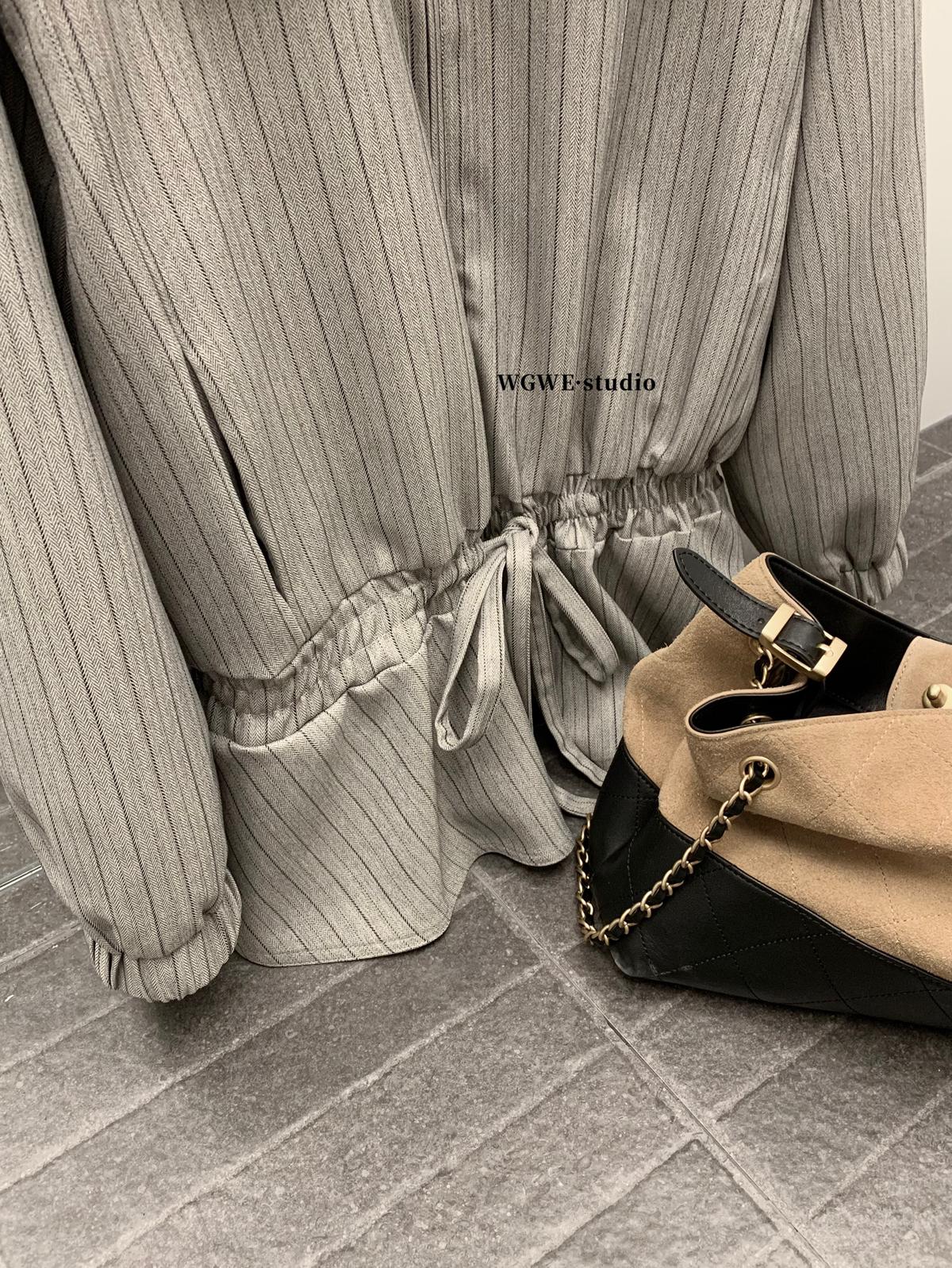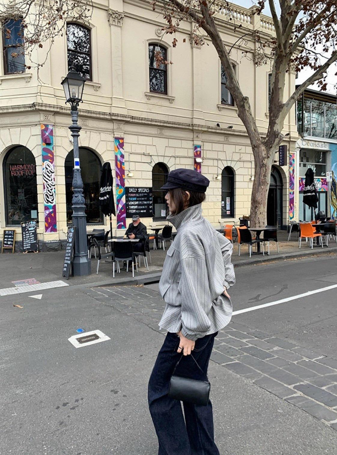 3. 【C7758】復古條紋立領長袖開衫外套美式寬鬆休閒氣質夾克