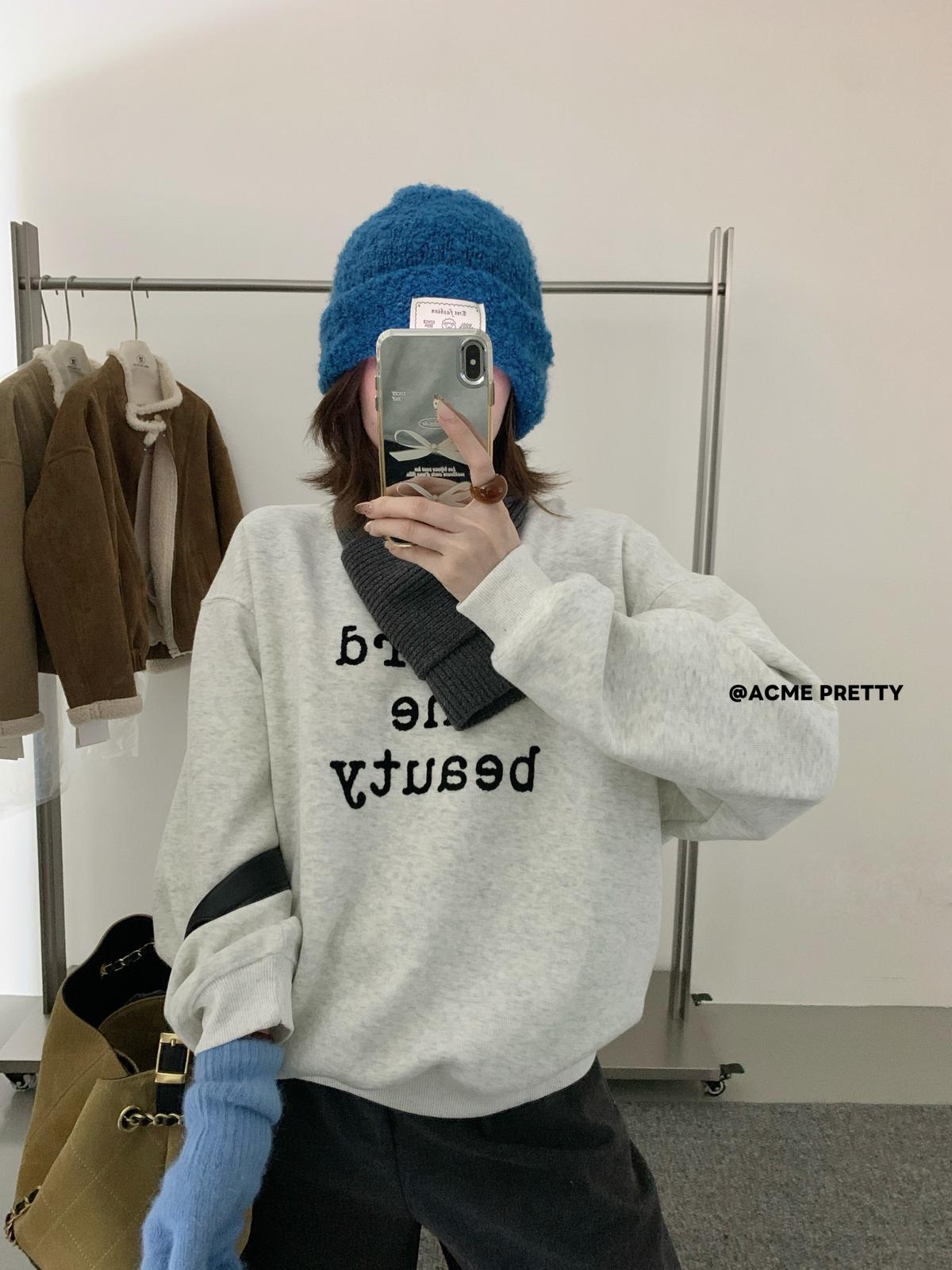【C7776】隨性韓女必備同色系圍巾撞色字母衛衣!長在心尖尖上啦!衛衣(配圍脖)