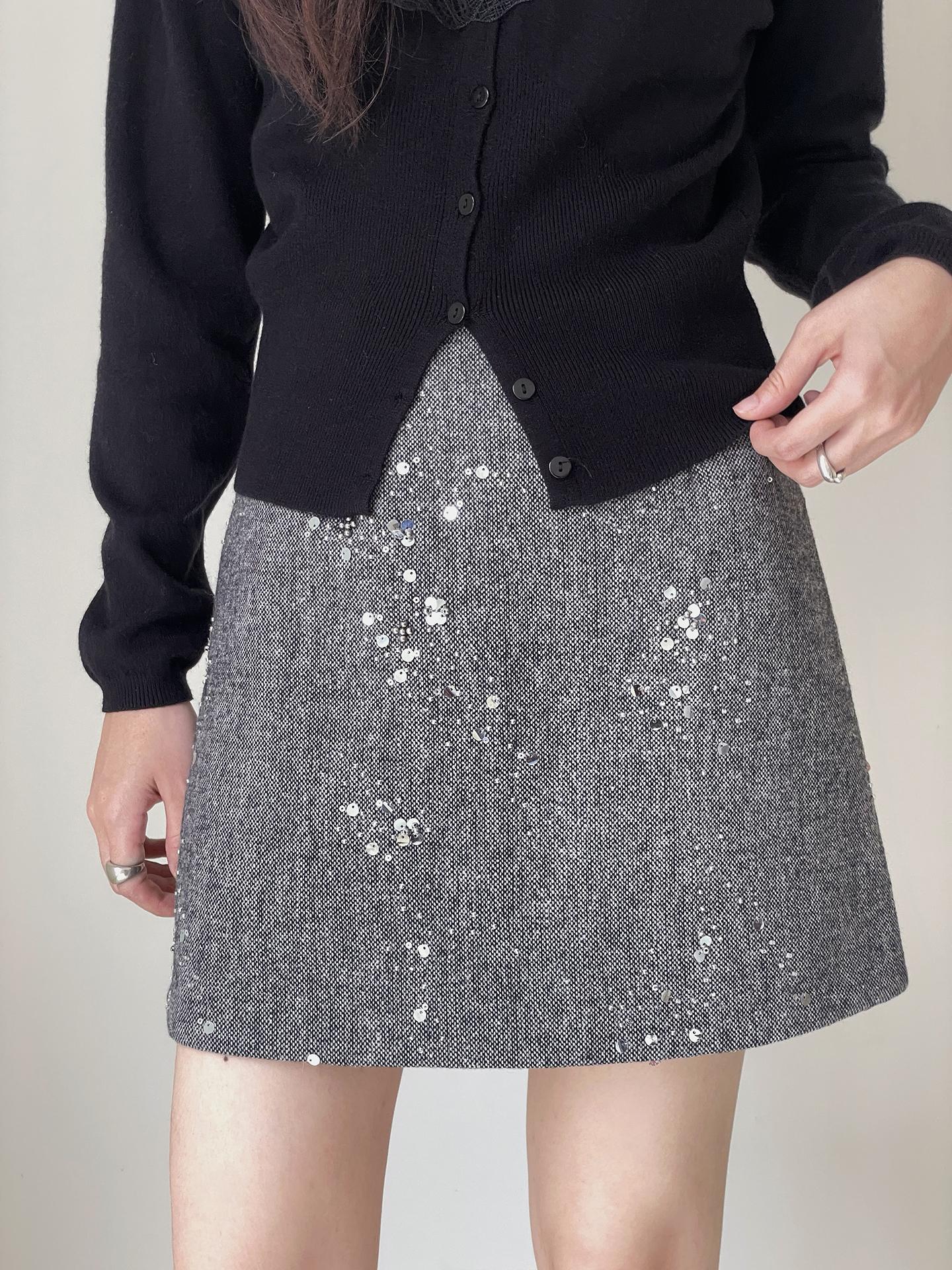 【C7779】冬上新!復古重工亮片a字包臀短裙高腰半身裙(含20%羊毛)