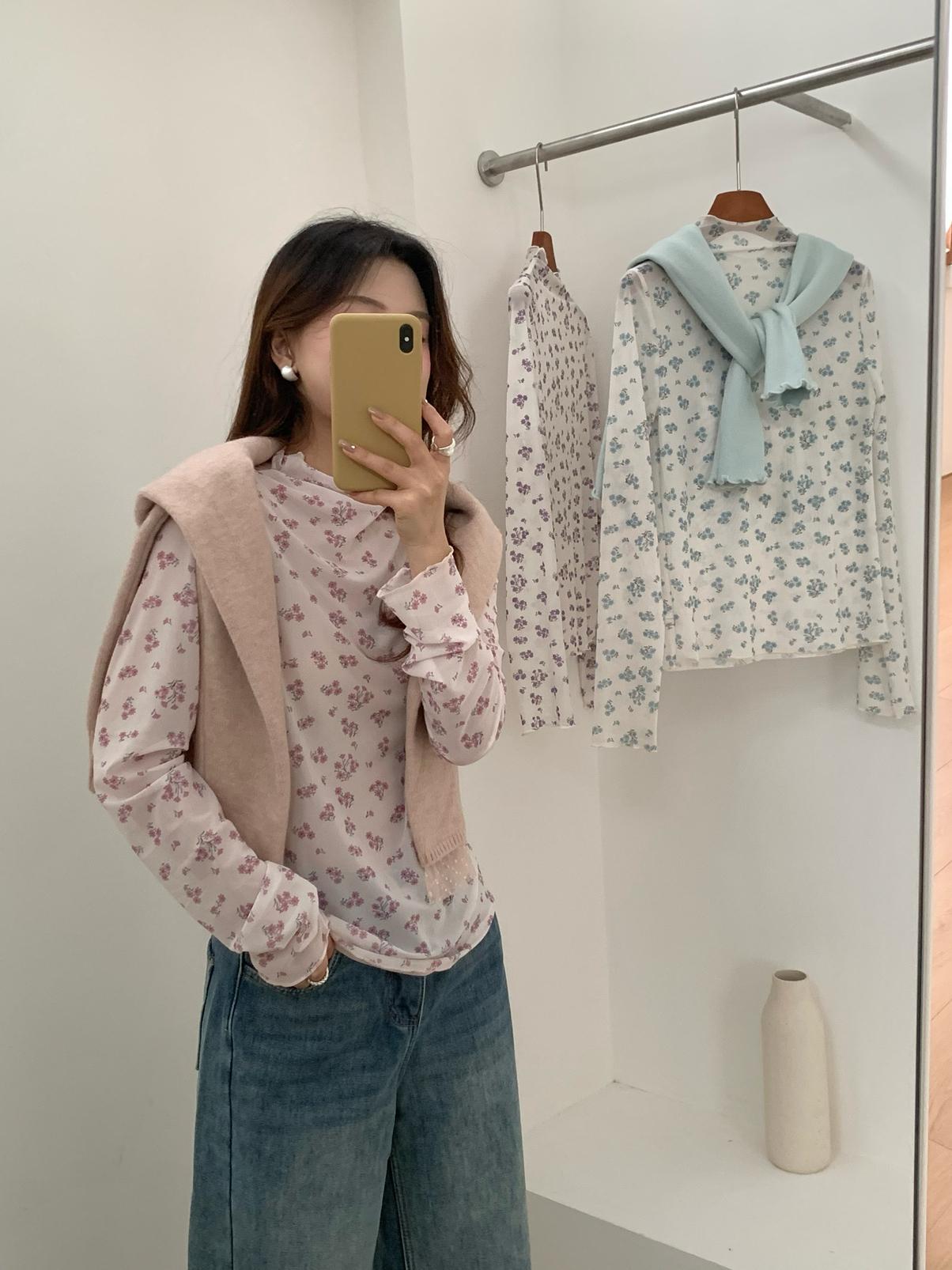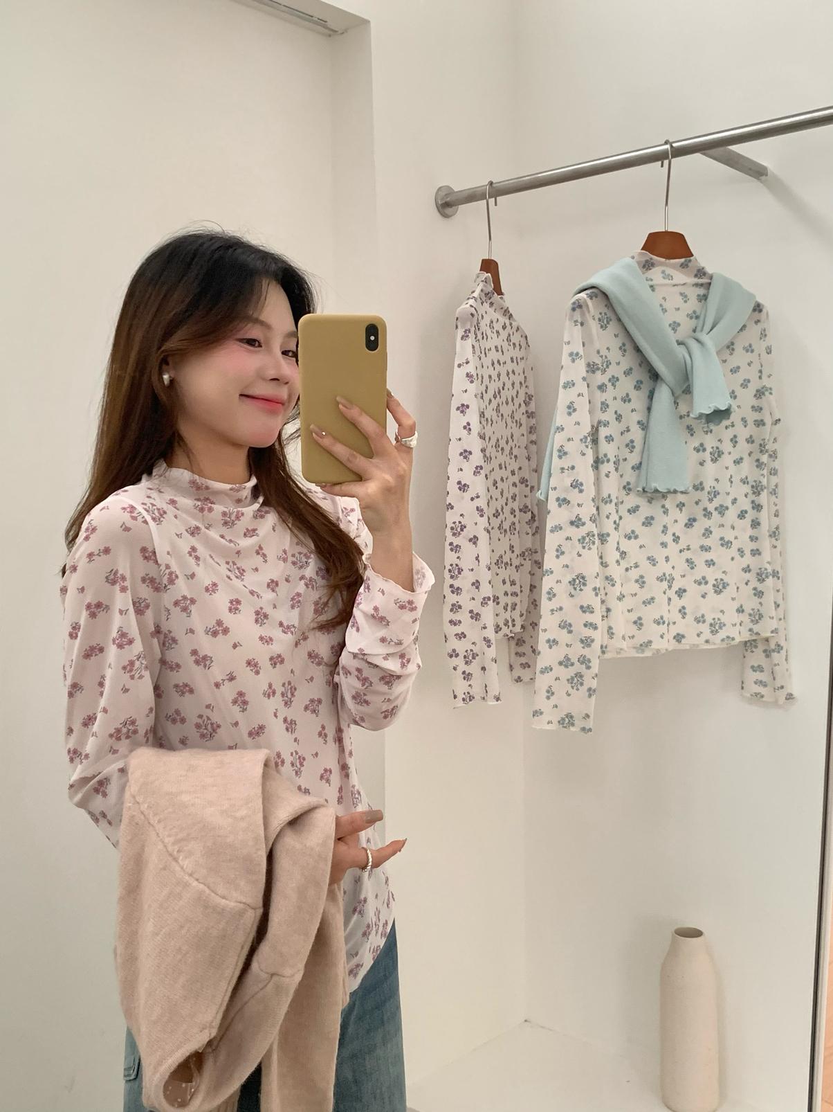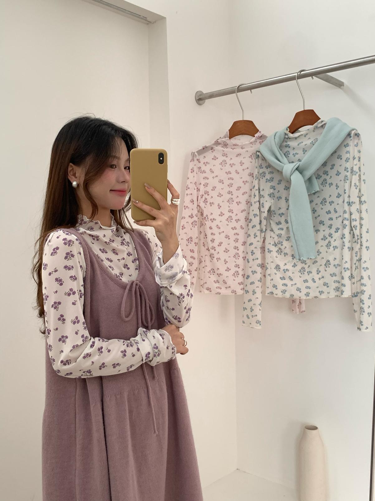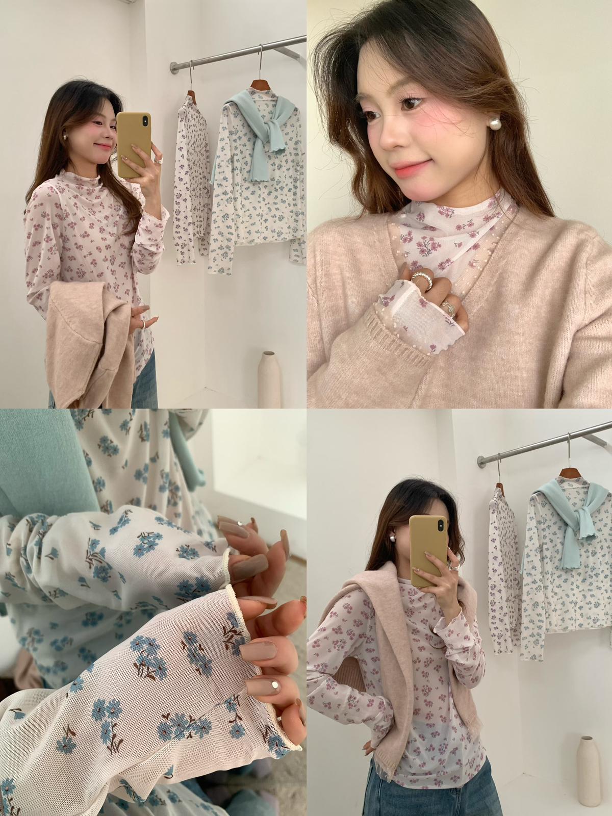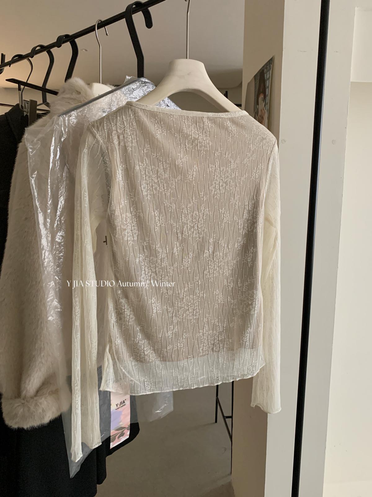 【C7780】韓系簡約氣質疊穿內搭碎花蕾絲衫女秋新款套頭長袖上衣打底衫