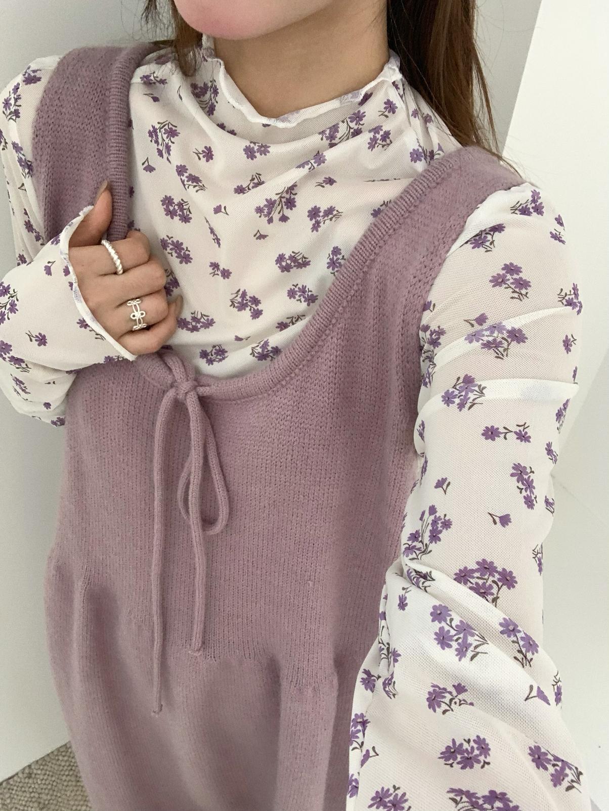 【C7784】在逃公主無袖後背綁帶收腰A字夾棉背心連衣裙+波邊長袖打底衫套裝