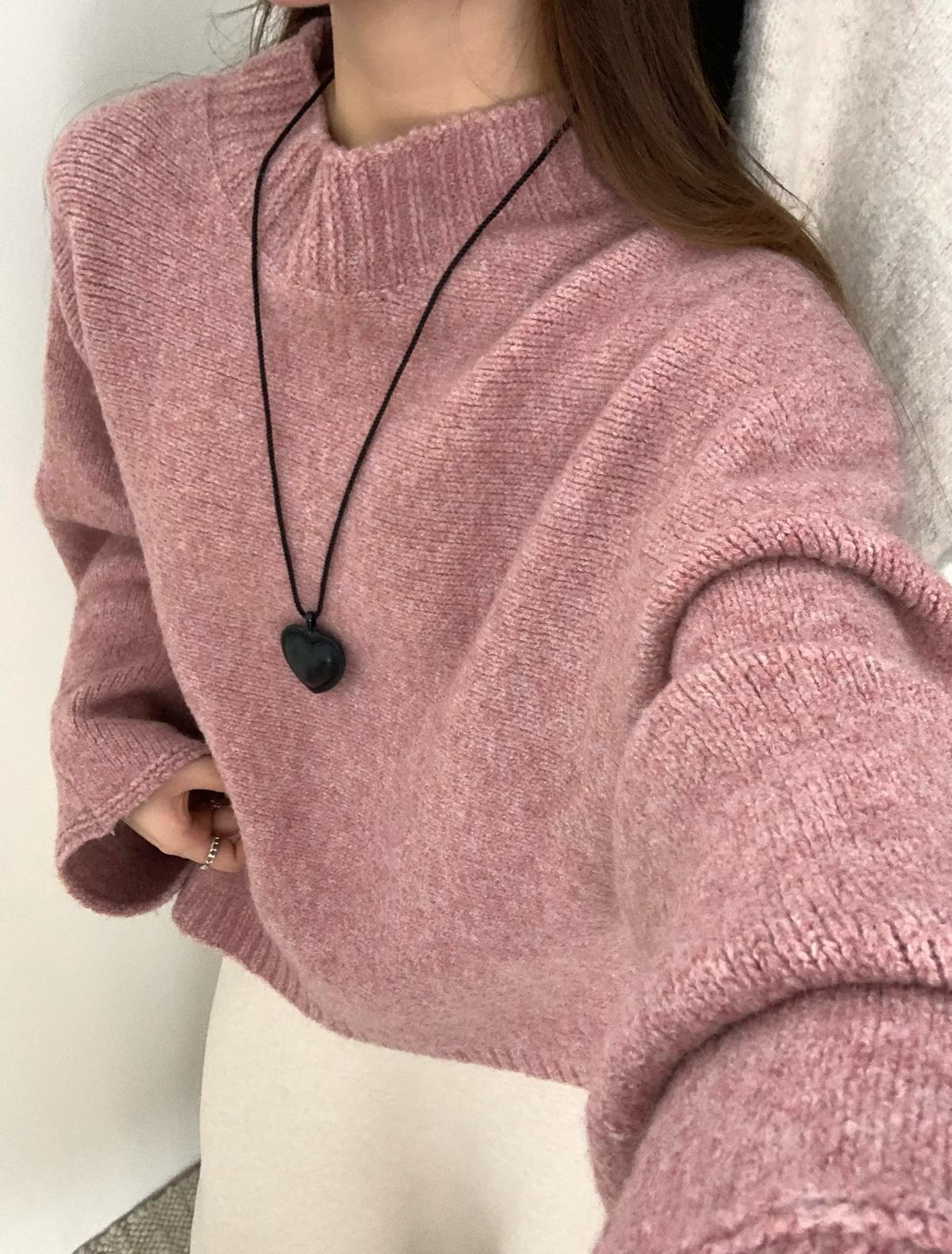 【C7781】2025冬季新款半高領套頭針織衫女慵懶風寬鬆顯瘦百搭上衣保暖毛衣