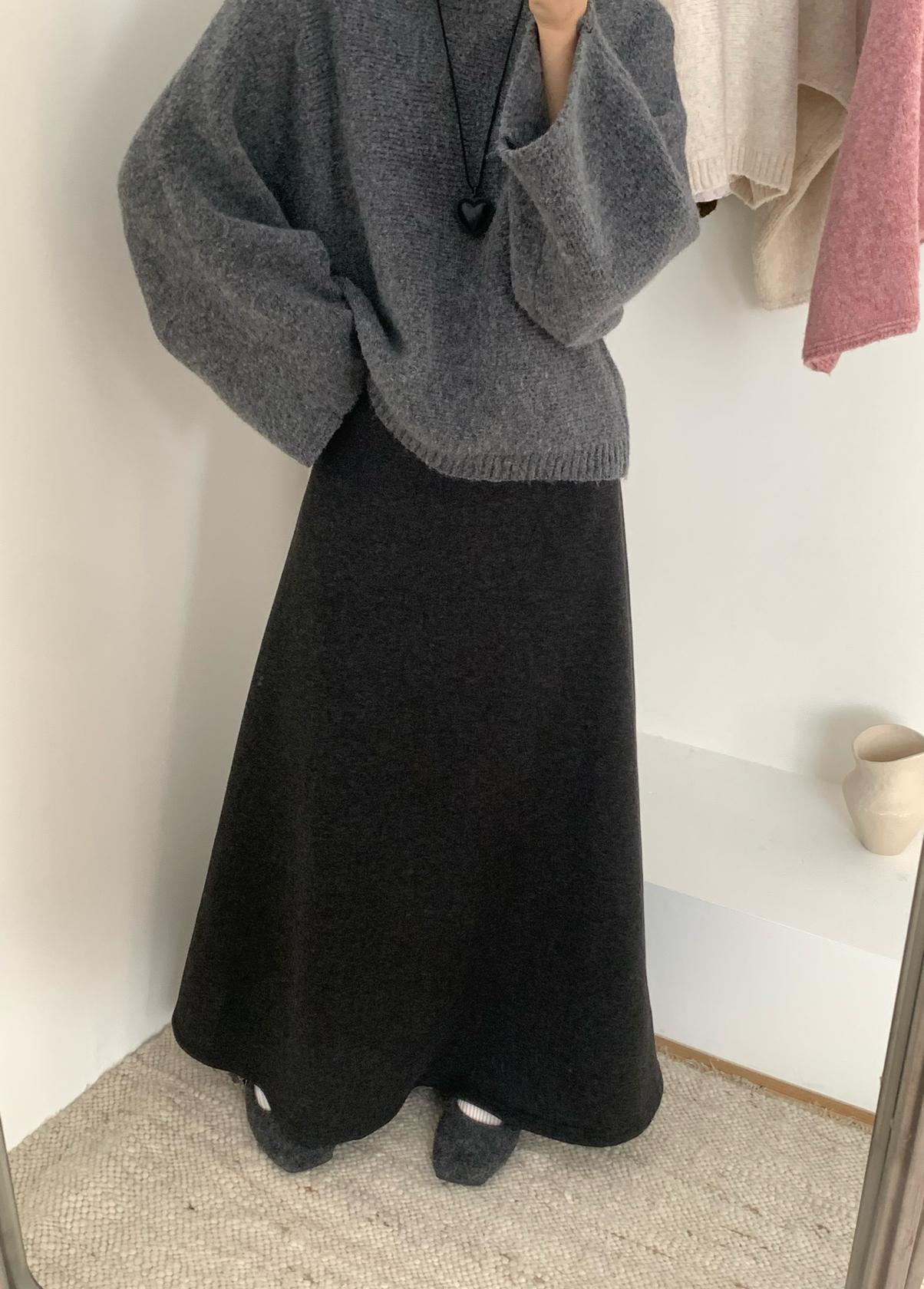 【C7782】深灰色毛呢針織裙女秋冬新款長款傘裙高級感遮胯顯瘦a字半身裙