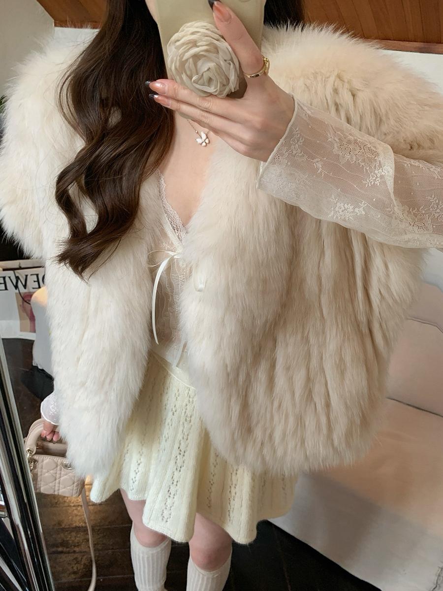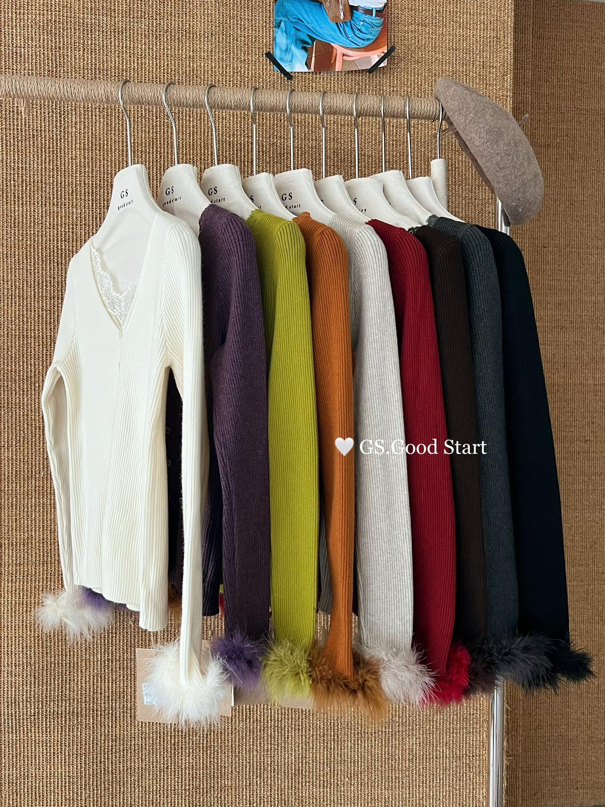 【C7814】吸睛爆款!心頭愛@嬌貴千金~冬氣質純欲感蕾絲v領毛毛袖針織衫