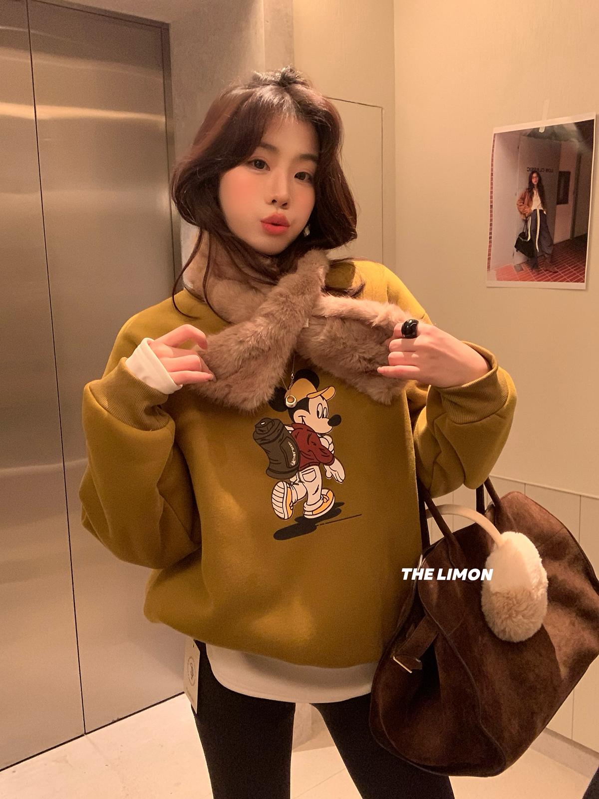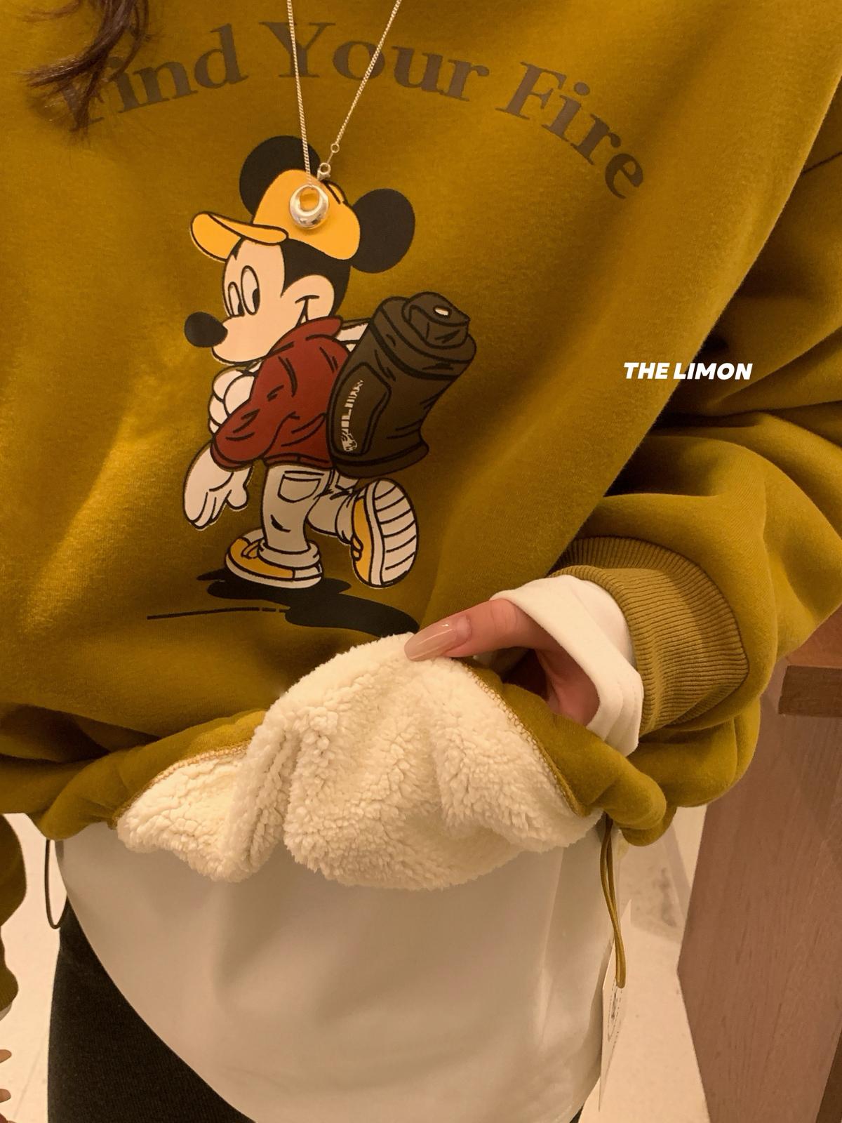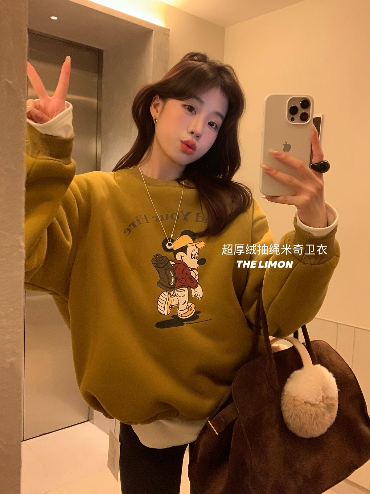 【C7791】超厚絨加厚米奇抽繩圓領套頭寬鬆衛衣