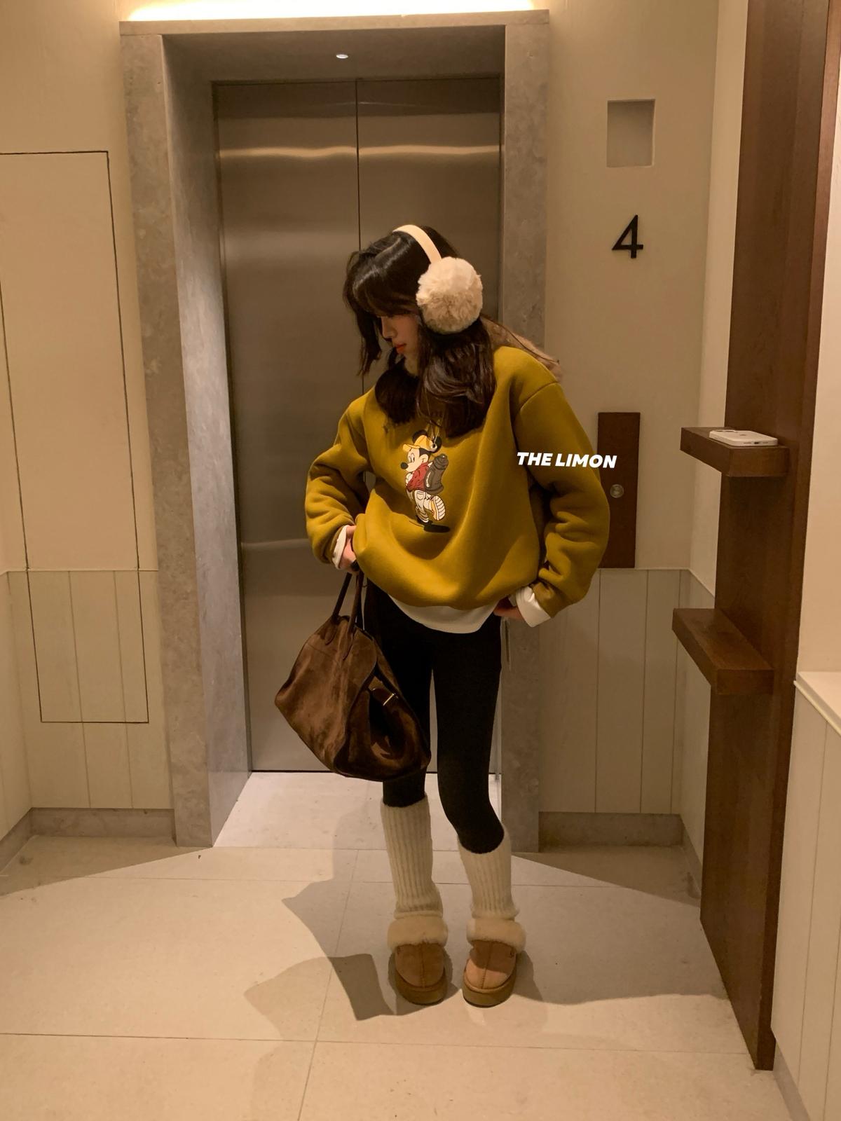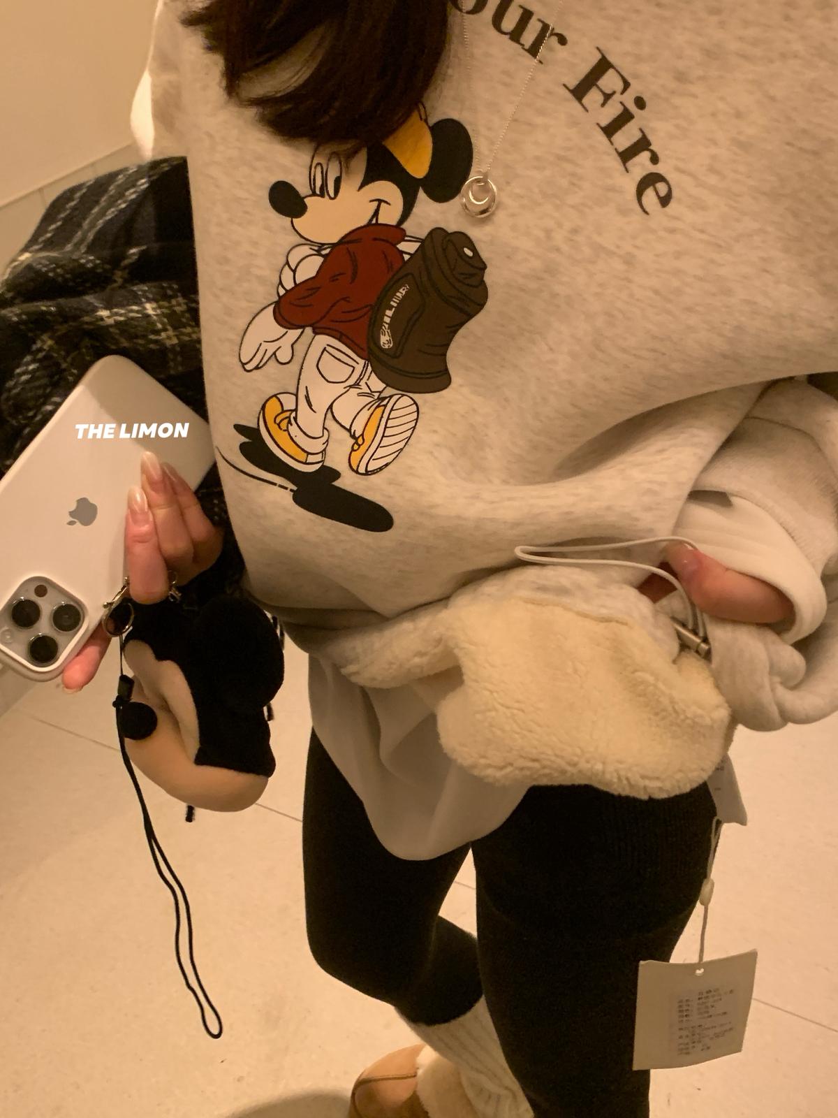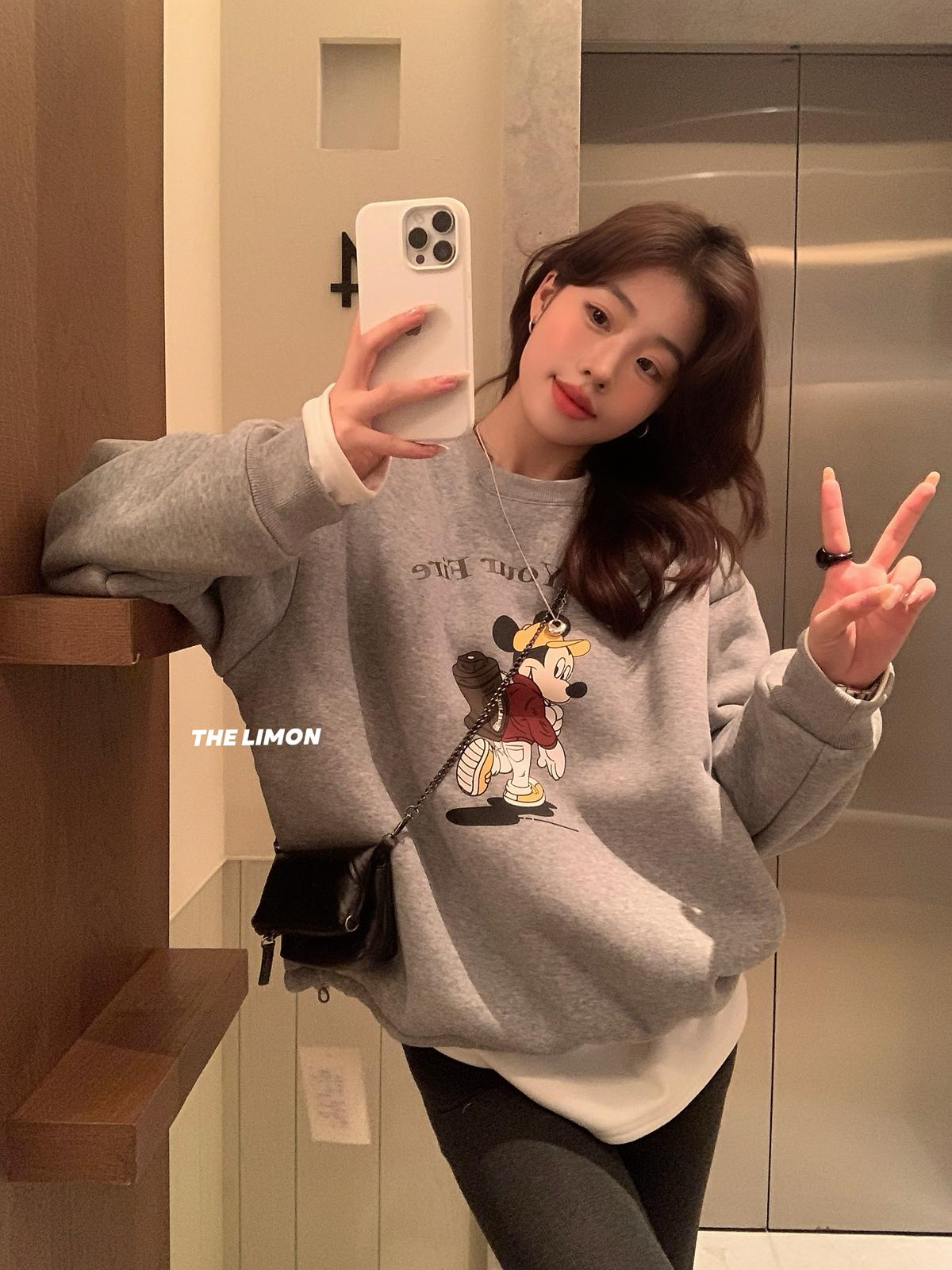 【C7791】超厚絨加厚米奇抽繩圓領套頭寬鬆衛衣