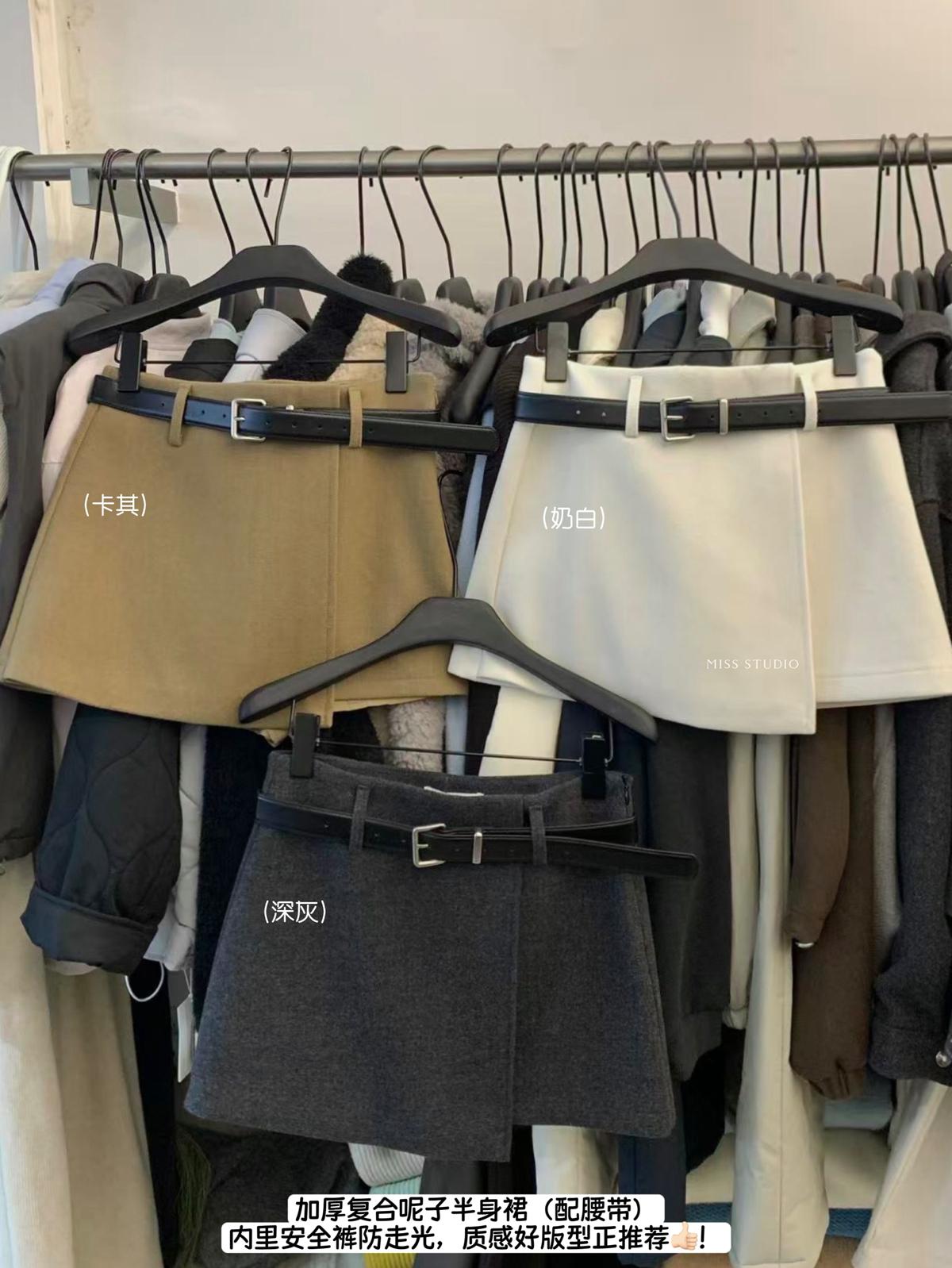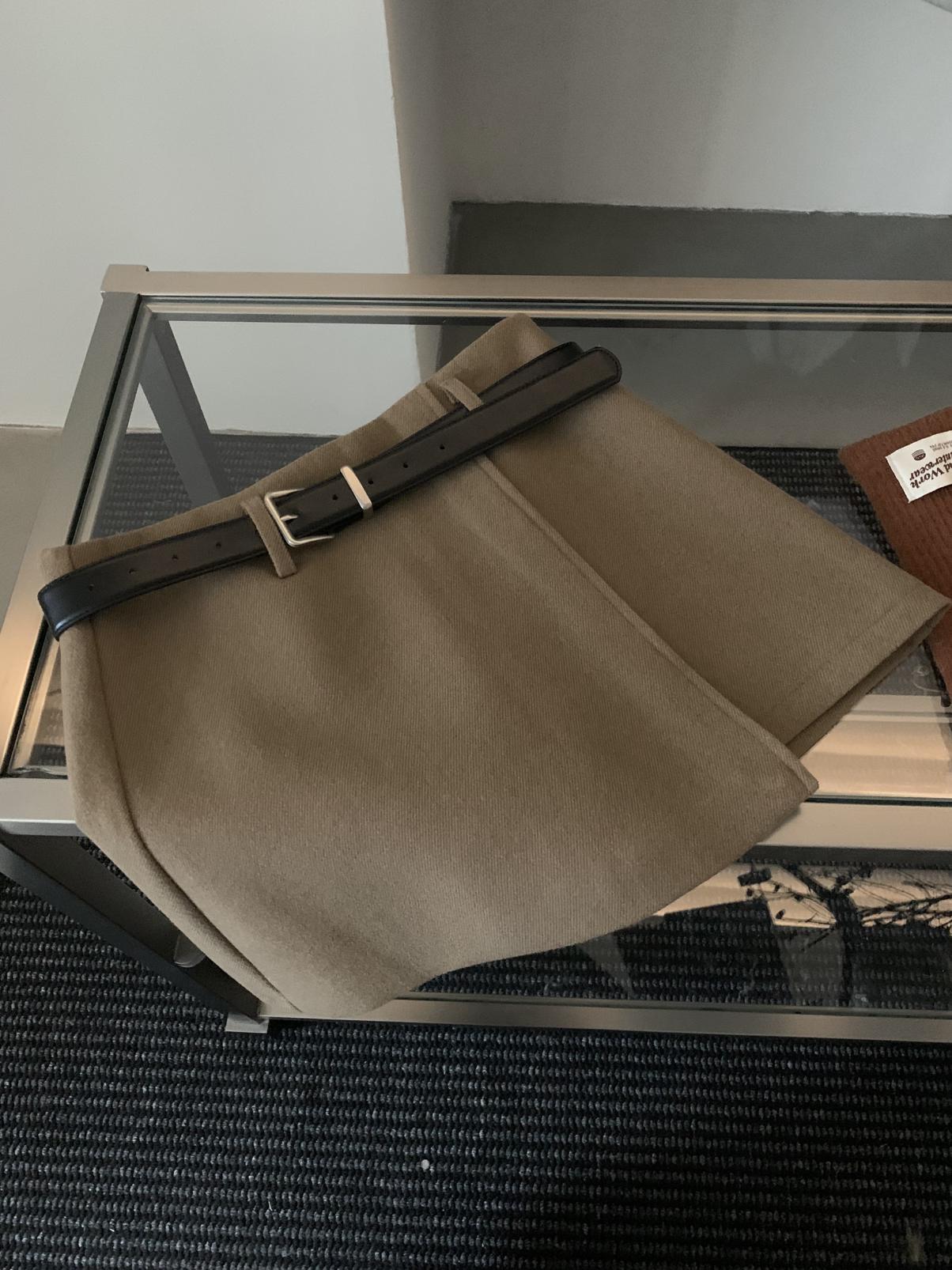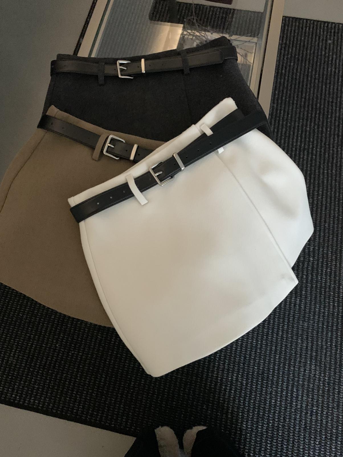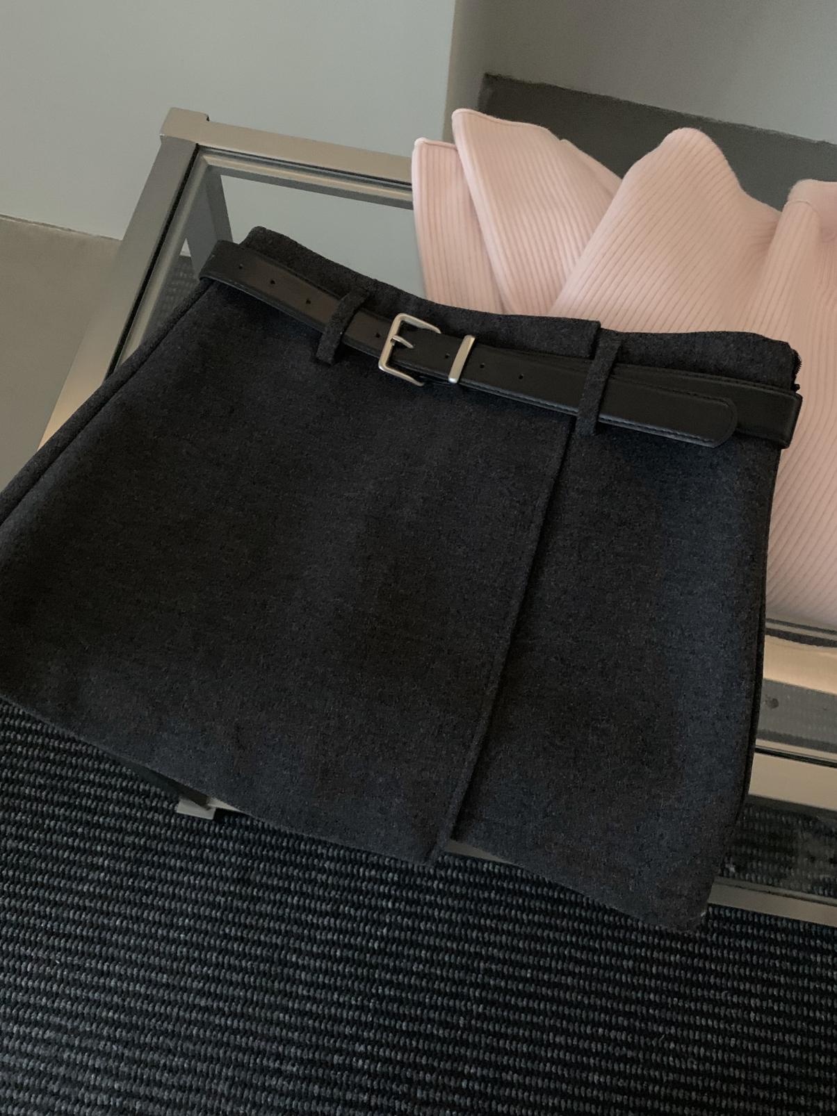 【C7792】精緻時髦巨顯腿長拉長比例!毛呢厚實短款半身裙(配皮帶)(含10%羊毛)