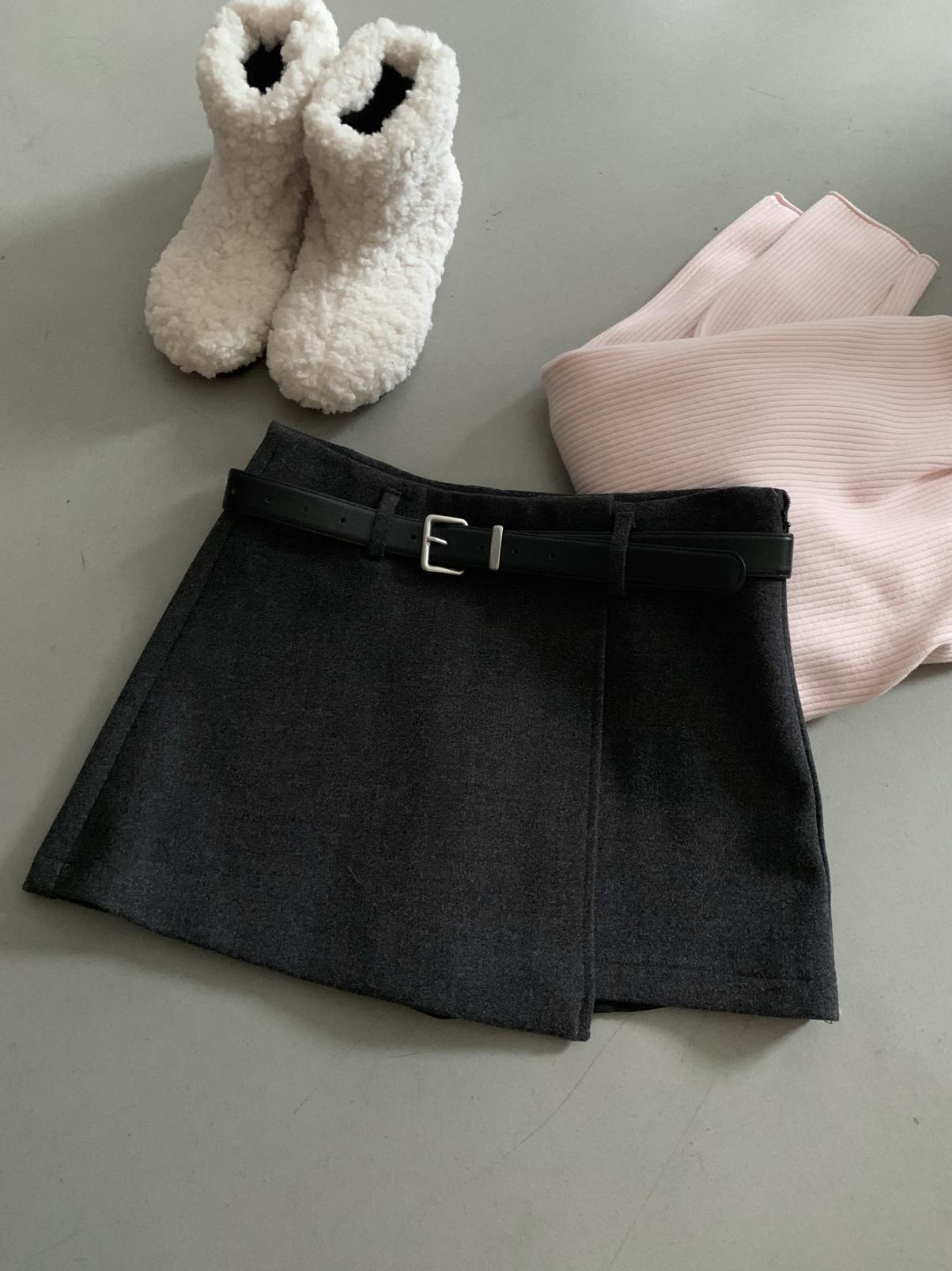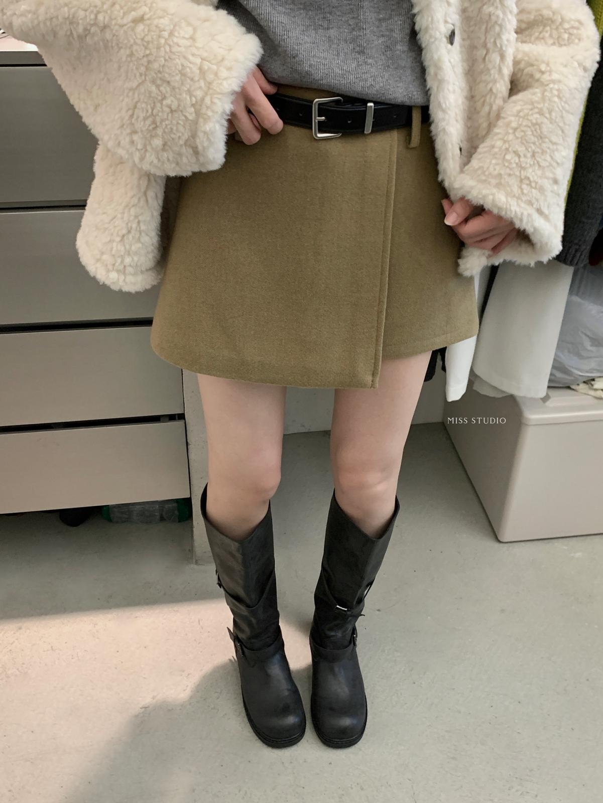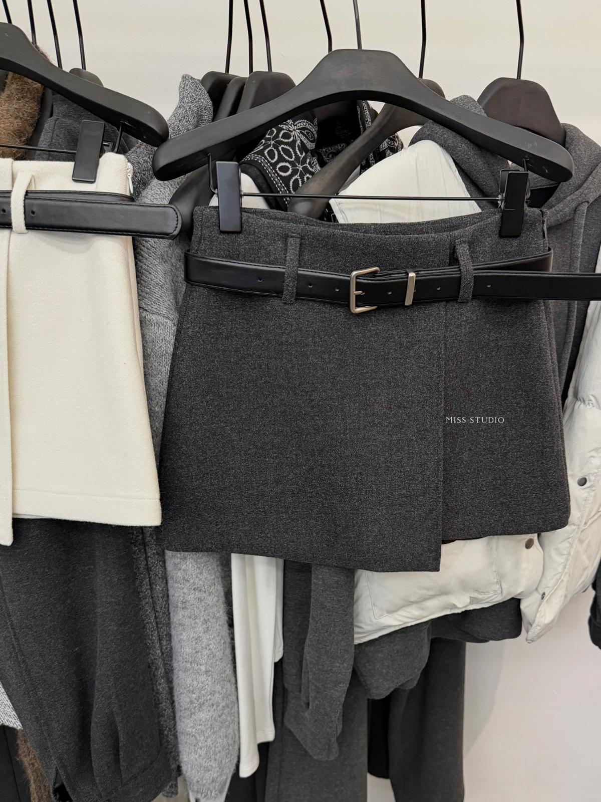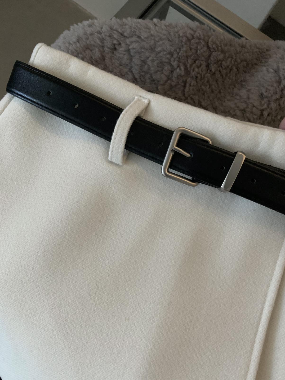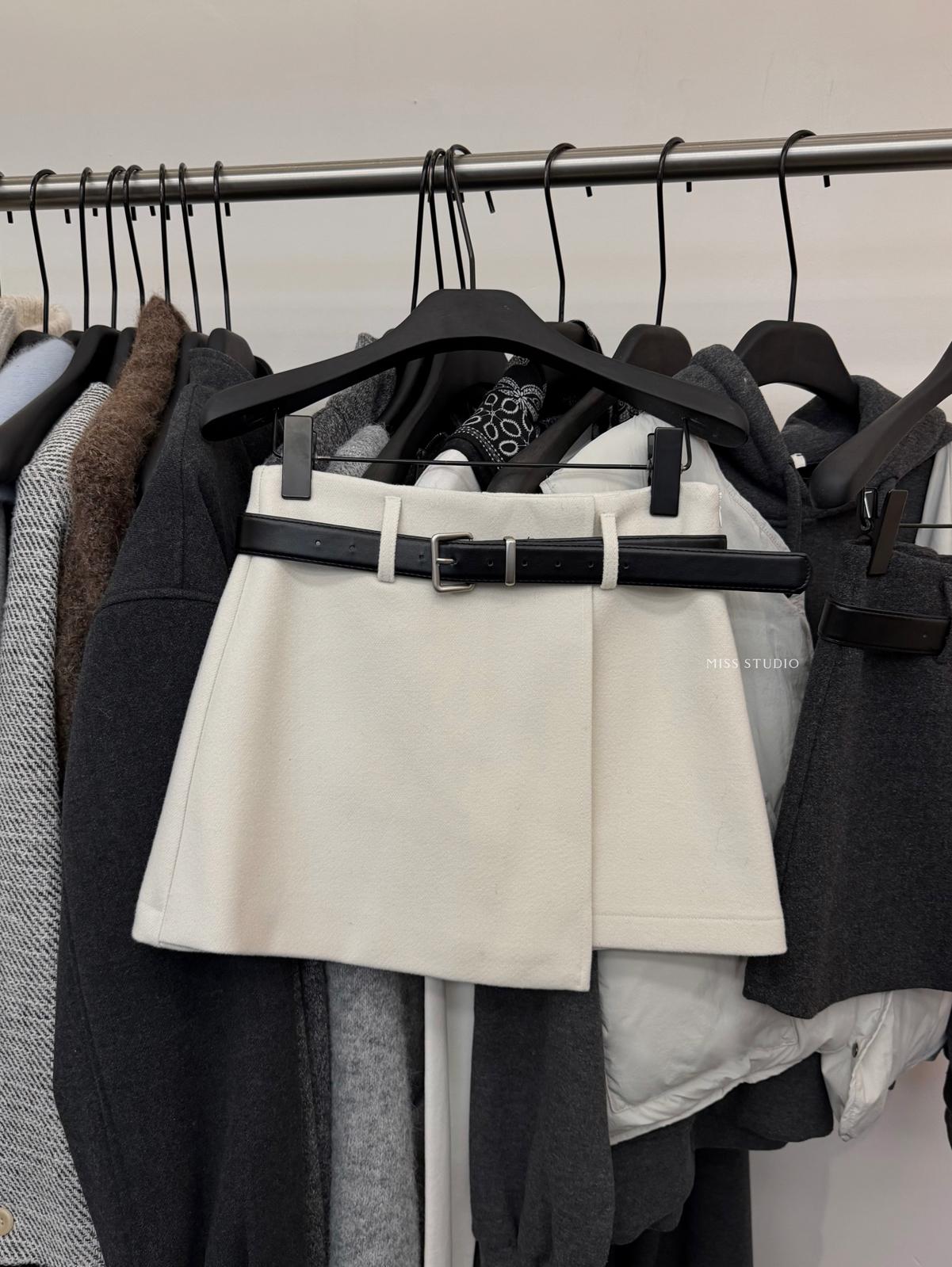 【C7792】精緻時髦巨顯腿長拉長比例!毛呢厚實短款半身裙(配皮帶)(含10%羊毛)