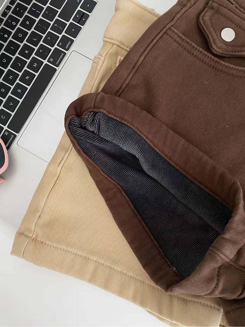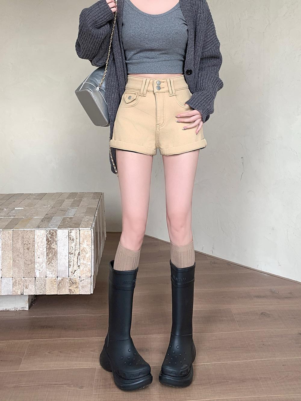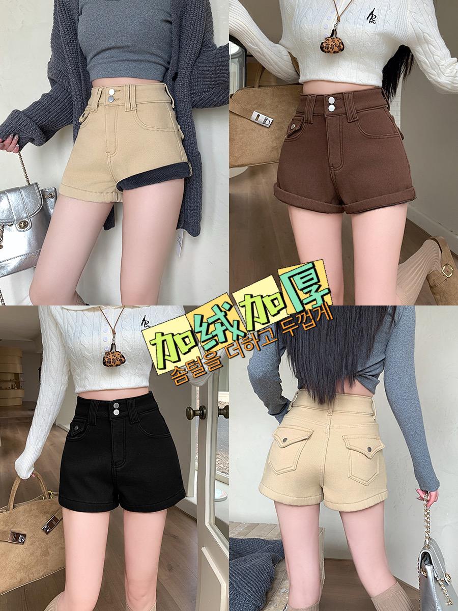 【C7796】2025年冬新款韓版純色百搭加絨高腰顯瘦百搭A字褲牛仔短褲
