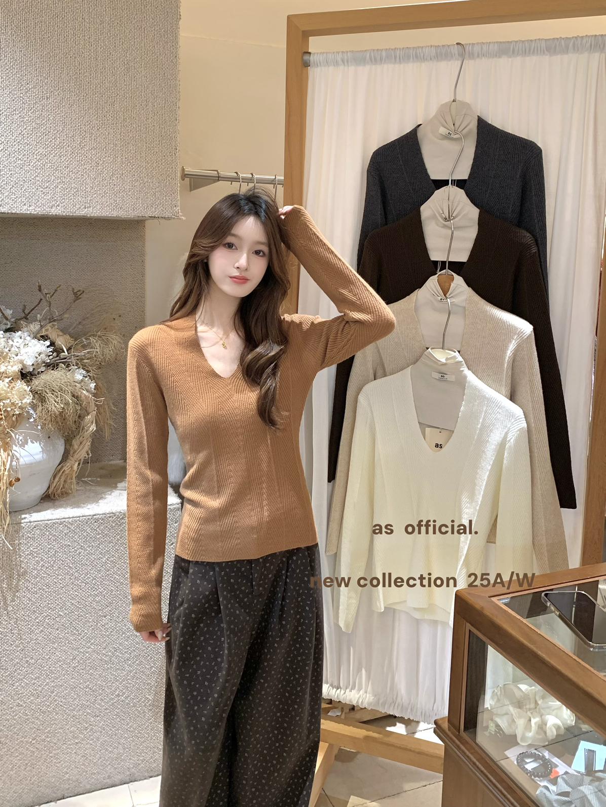 【C7804】遮住斜方肌!高知實穿主義!本期B入剛需款@ v領超顯瘦版型針織衫