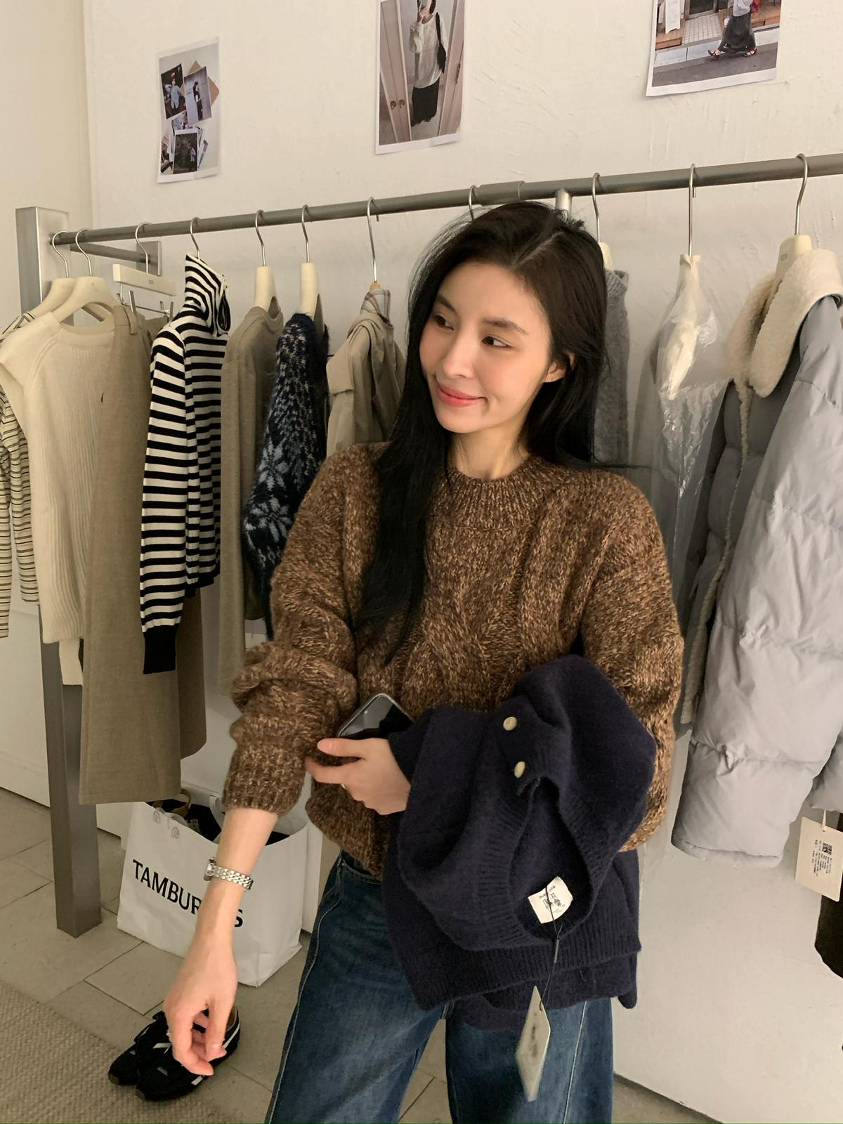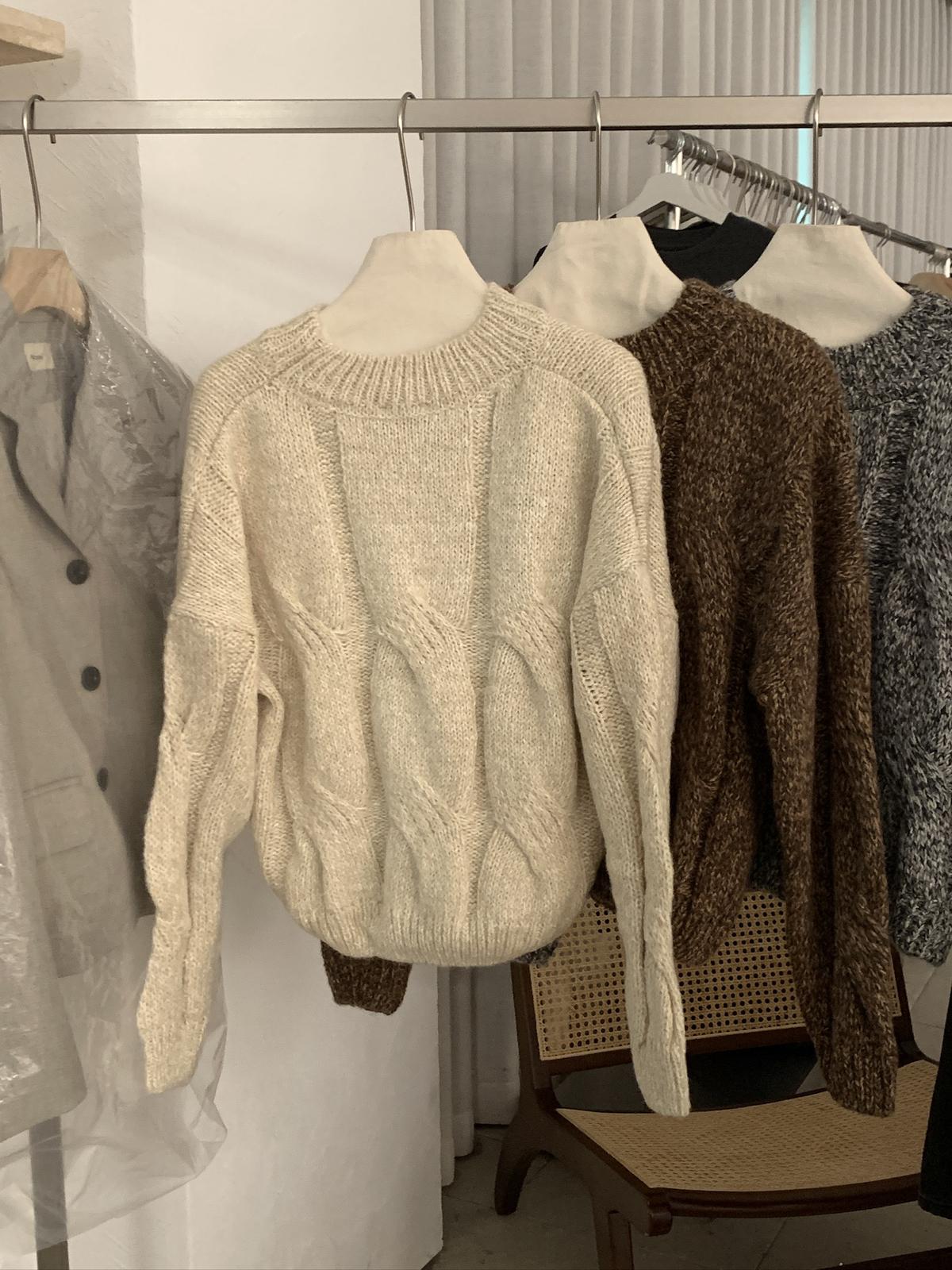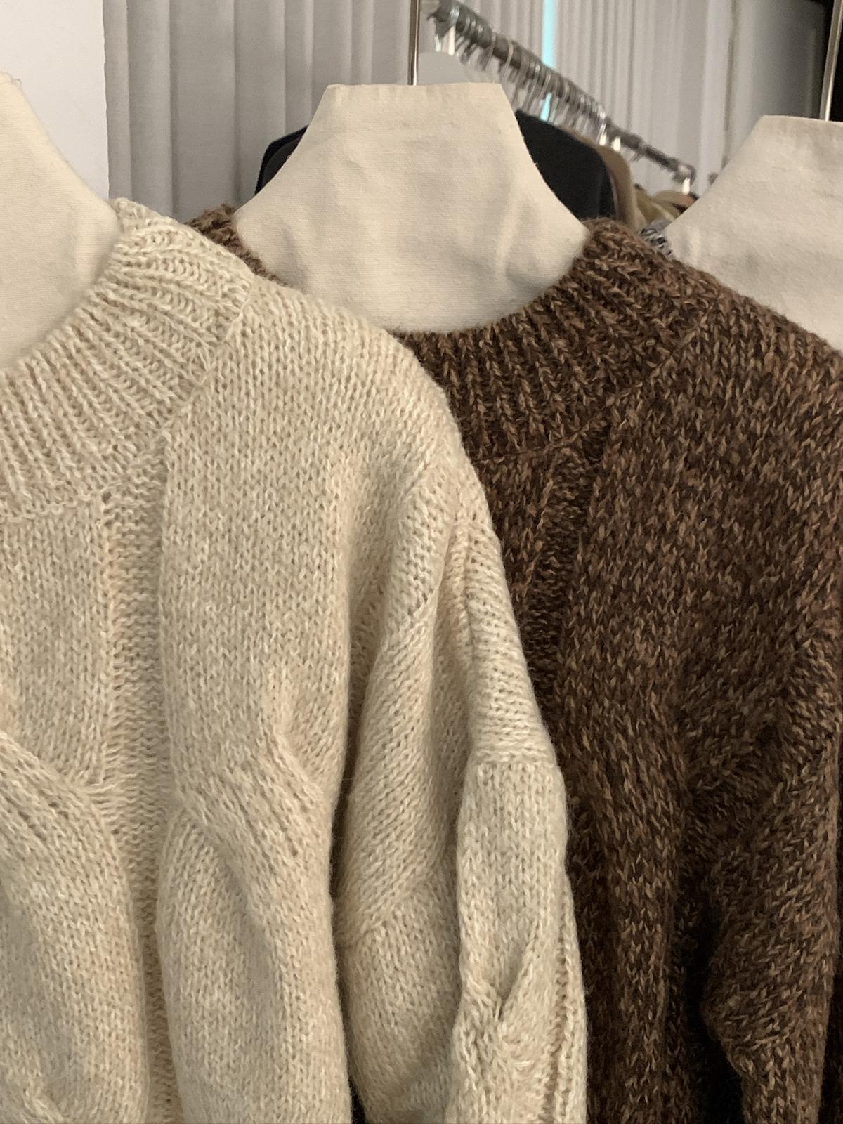 【C7806】復古老錢風絞花慵懶寬鬆保暖毛衣(含6%羊毛)