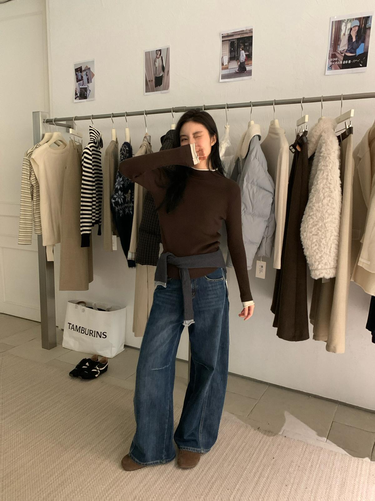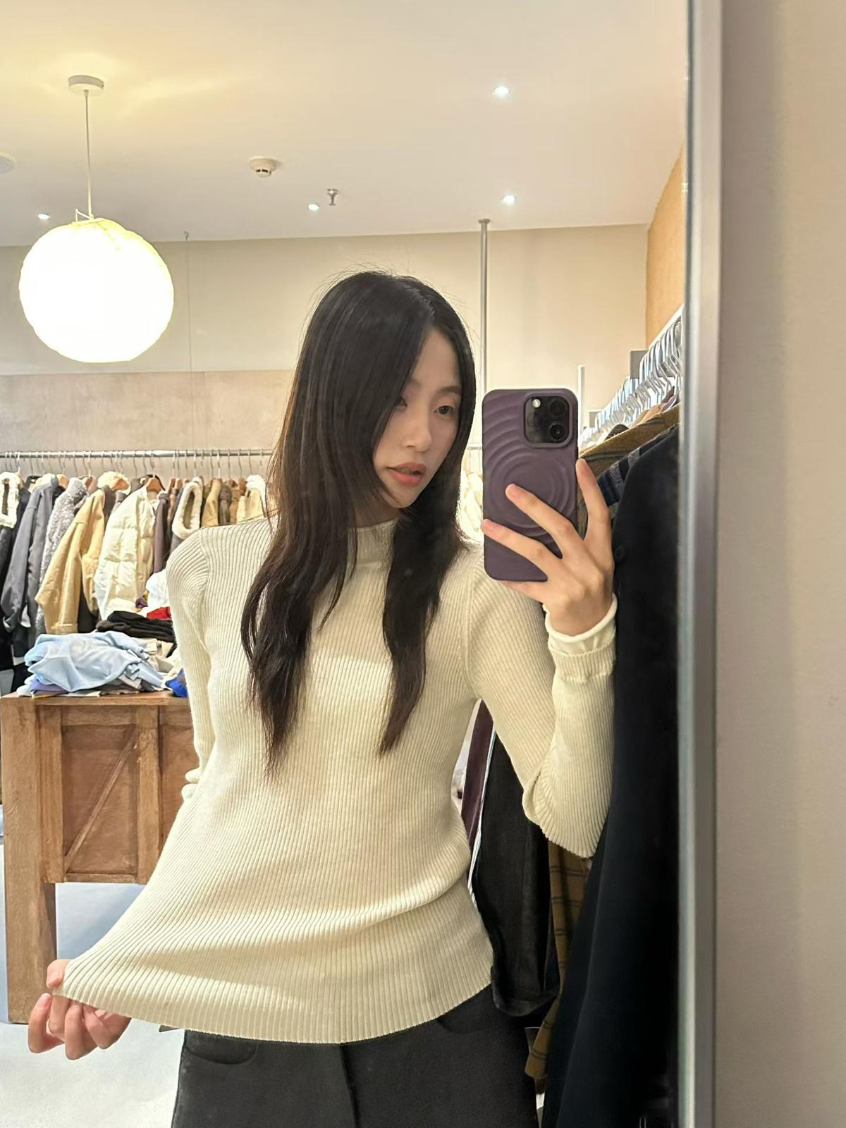 【C7807】極簡風撞色拼接半高領針織打底衫(含5.4%綿羊毛)