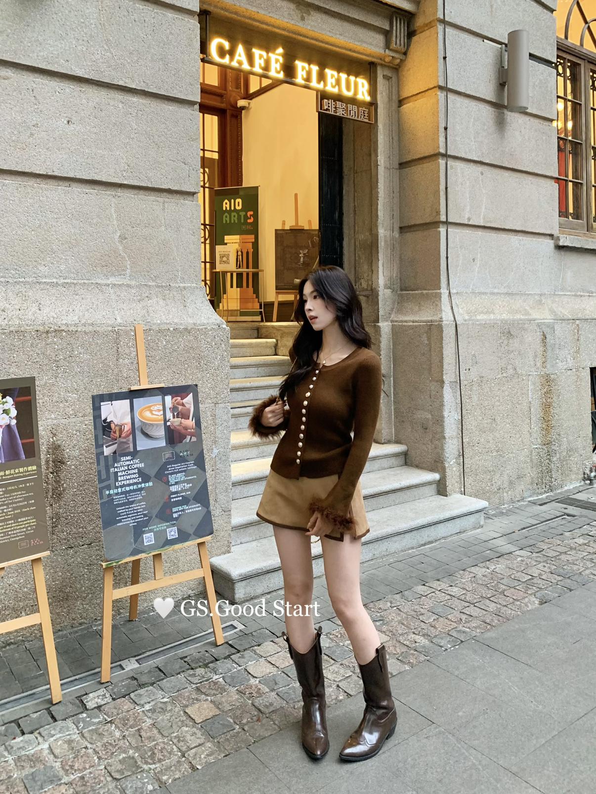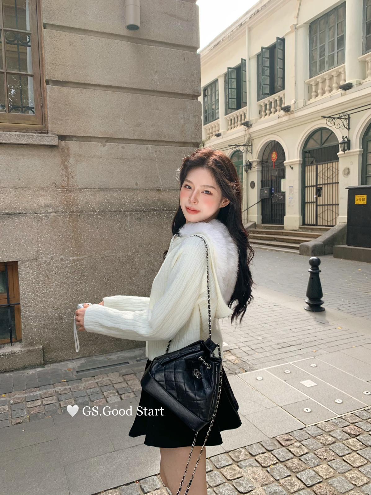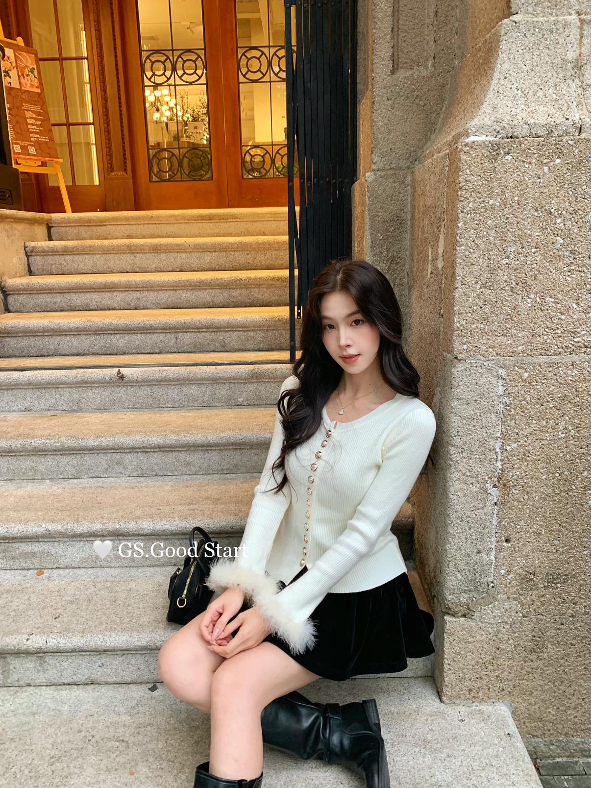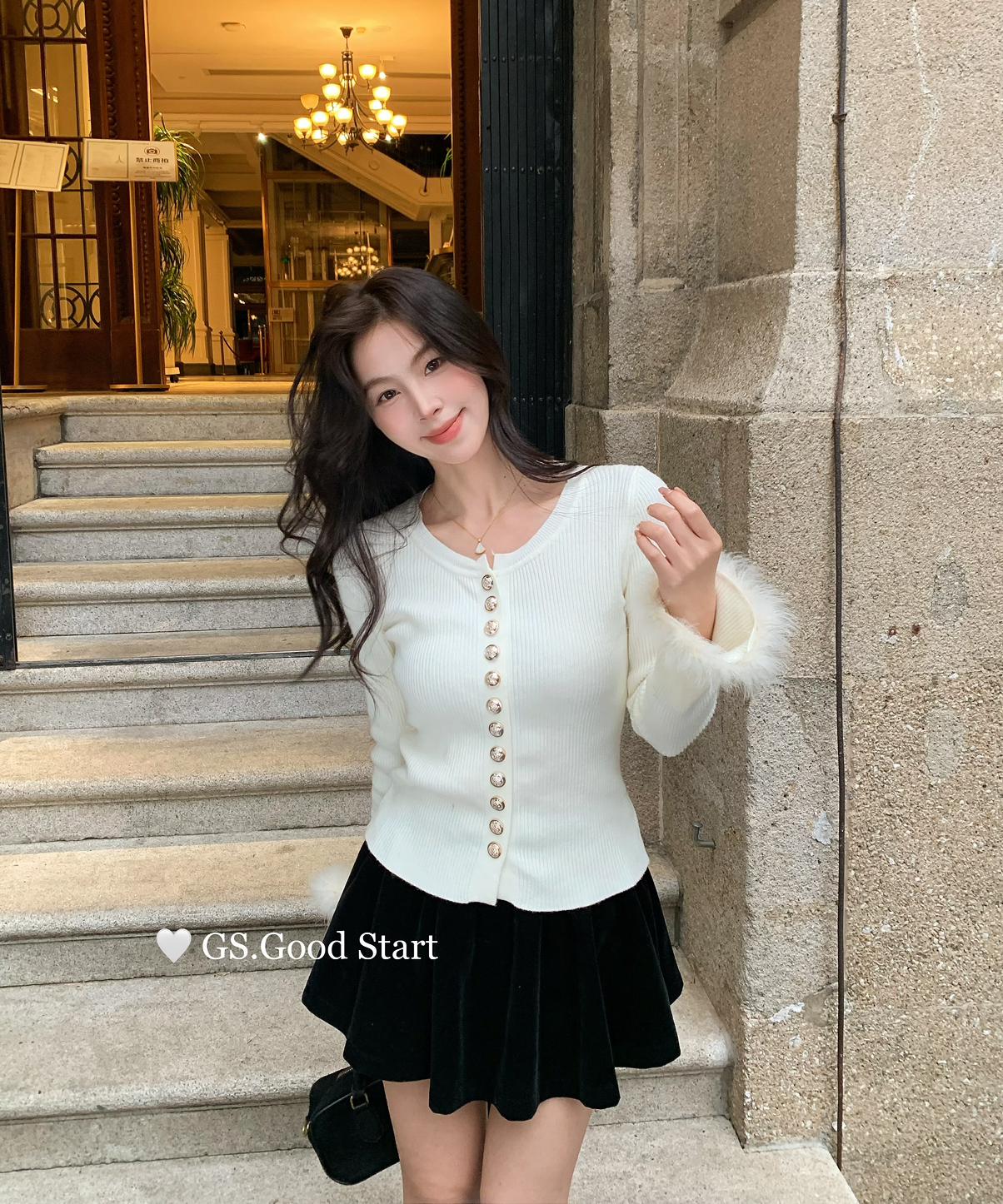 【C7811】熱賣必入!貴氣感buff*疊加~秋冬氣質千金感排扣毛毛袖顯瘦針織衫