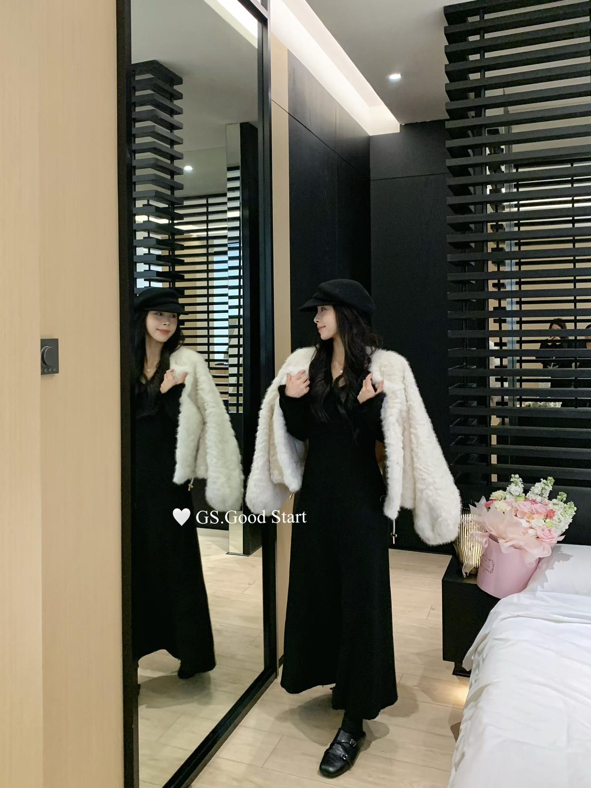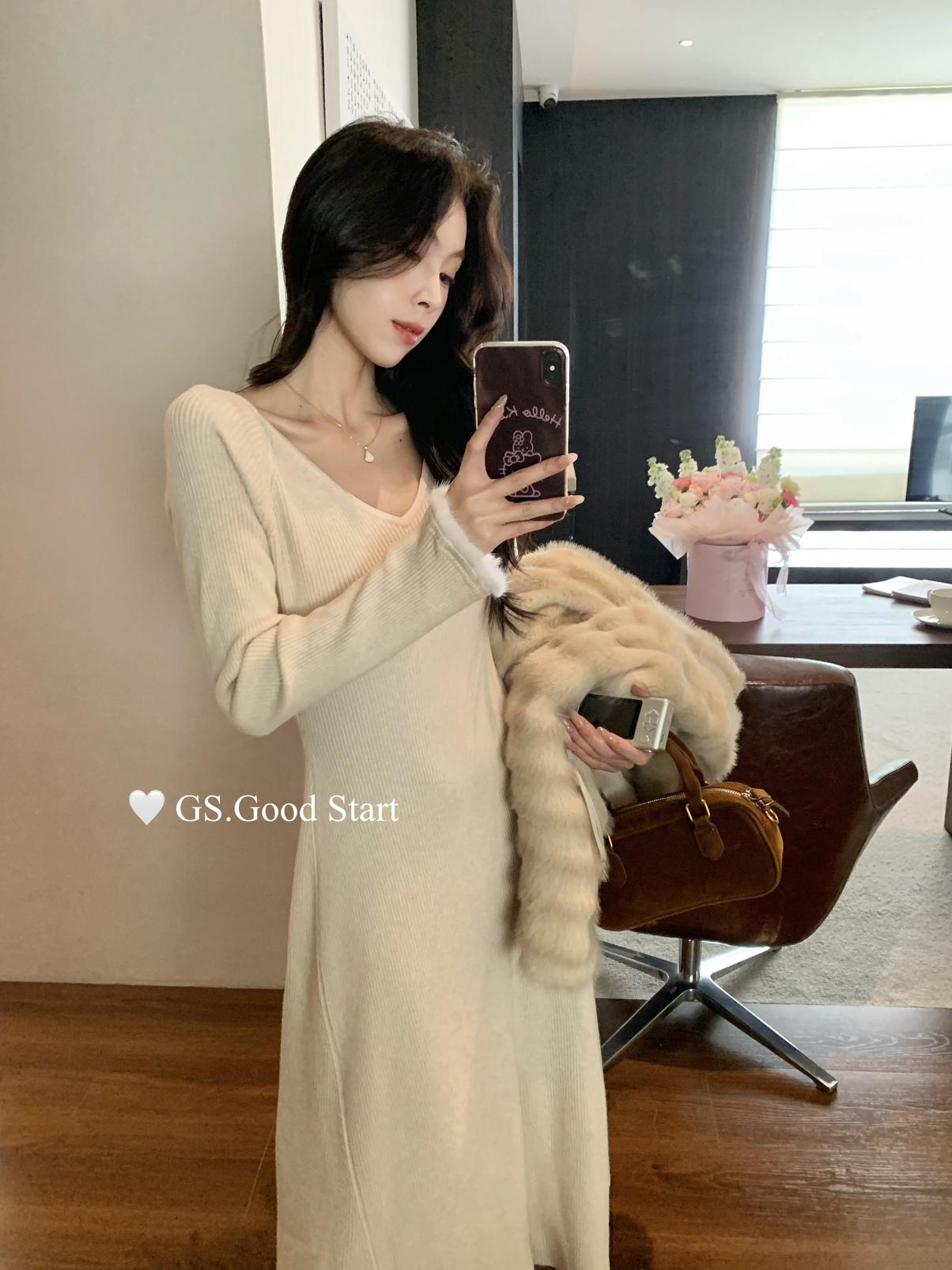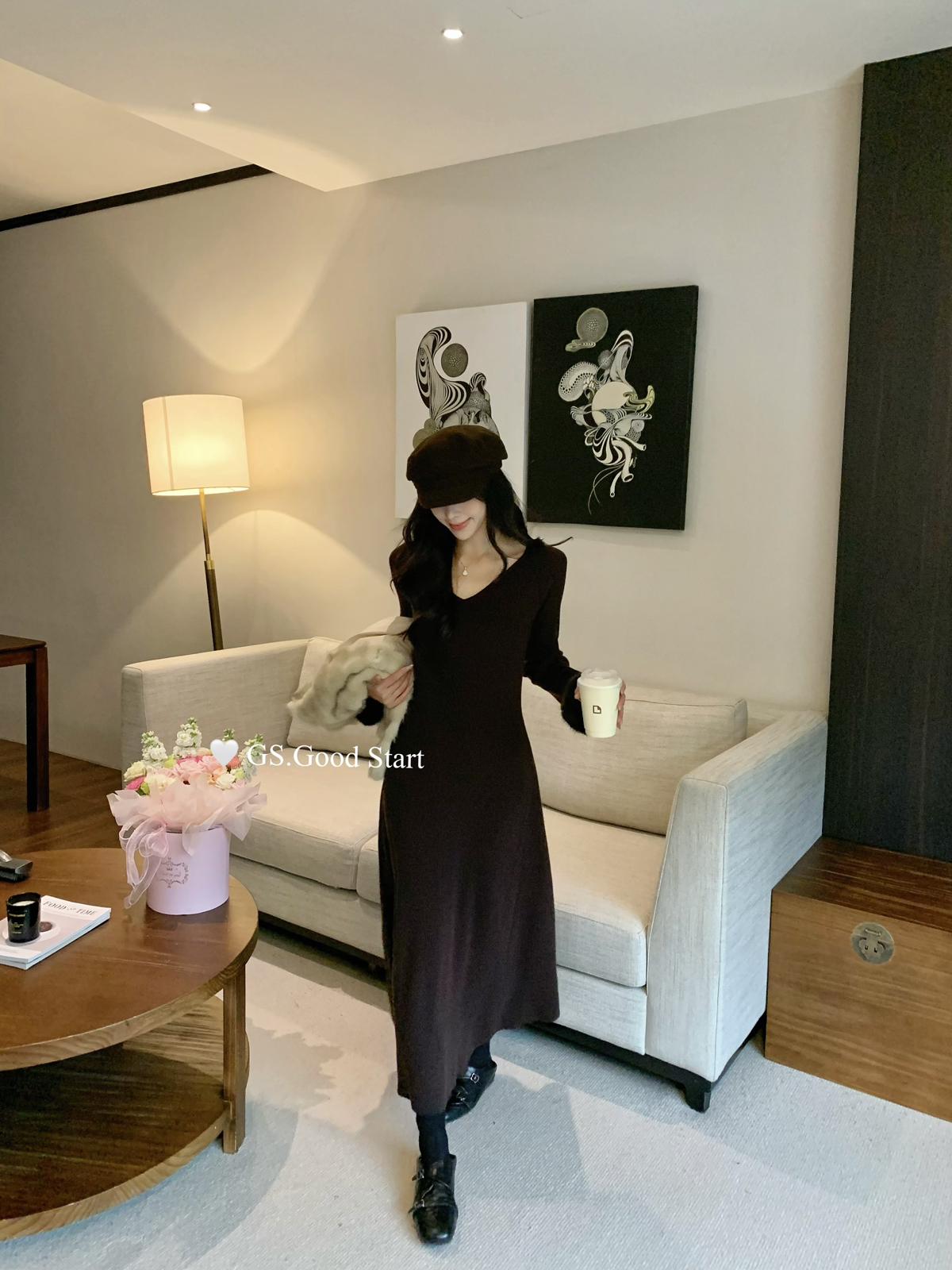 【C7812】狂安利!曼妙S曲線~絕美內搭!秋冬氣質純欲v領毛袖收腰針織連衣裙