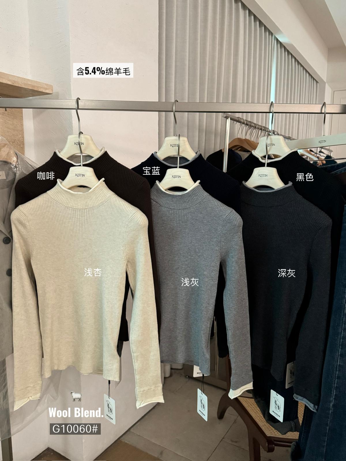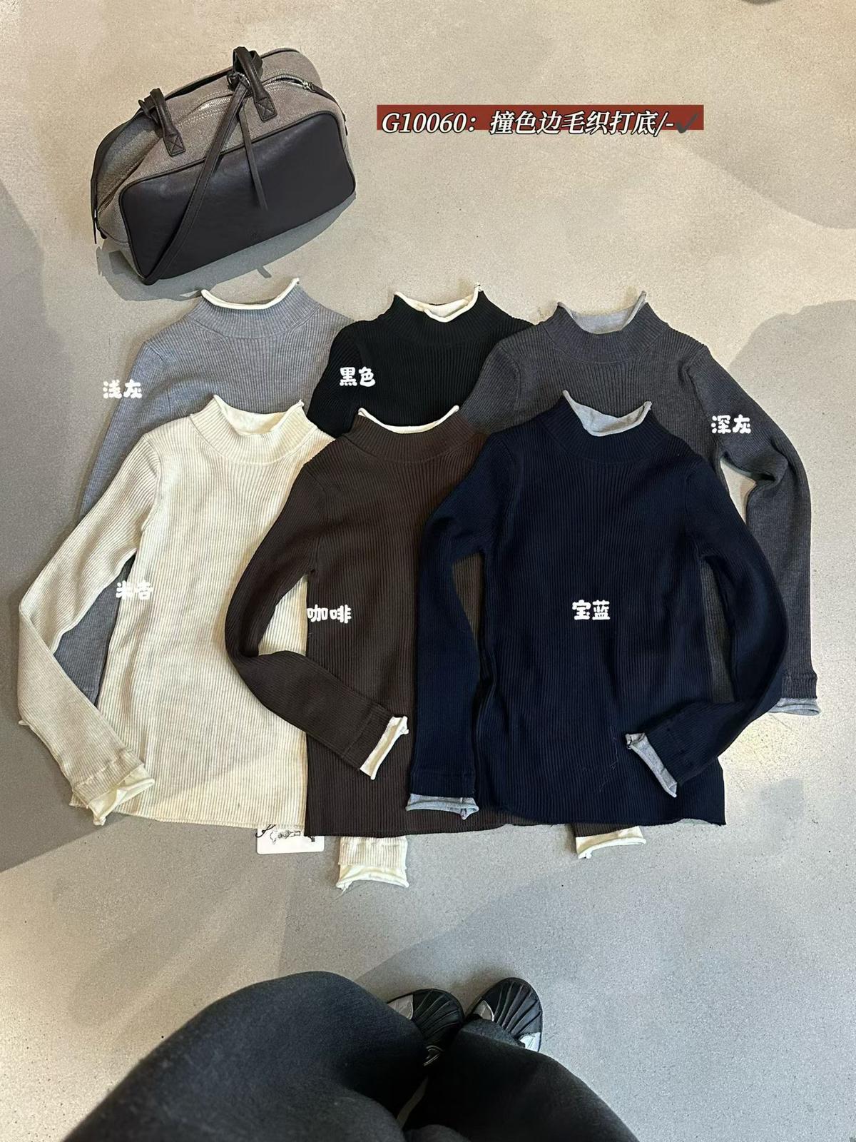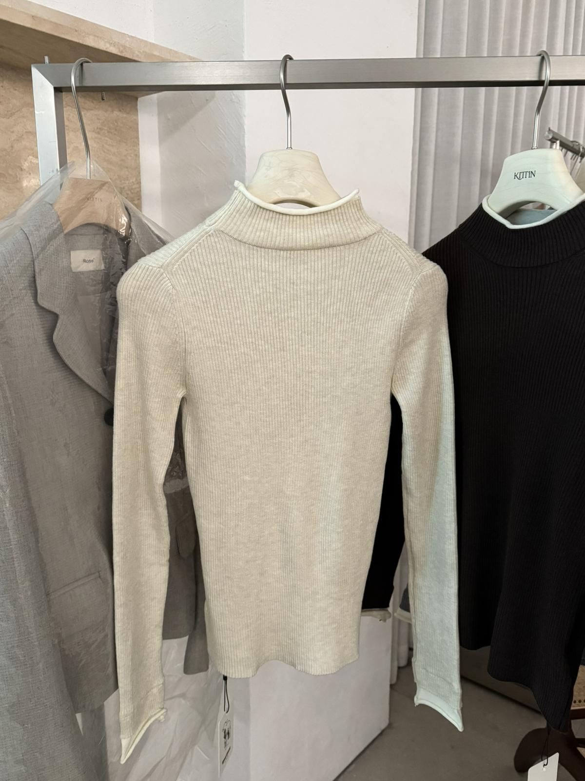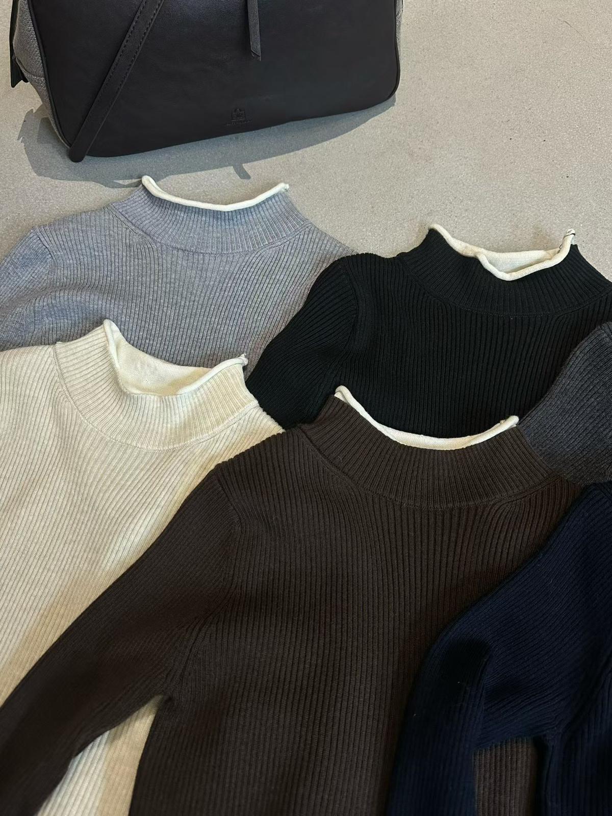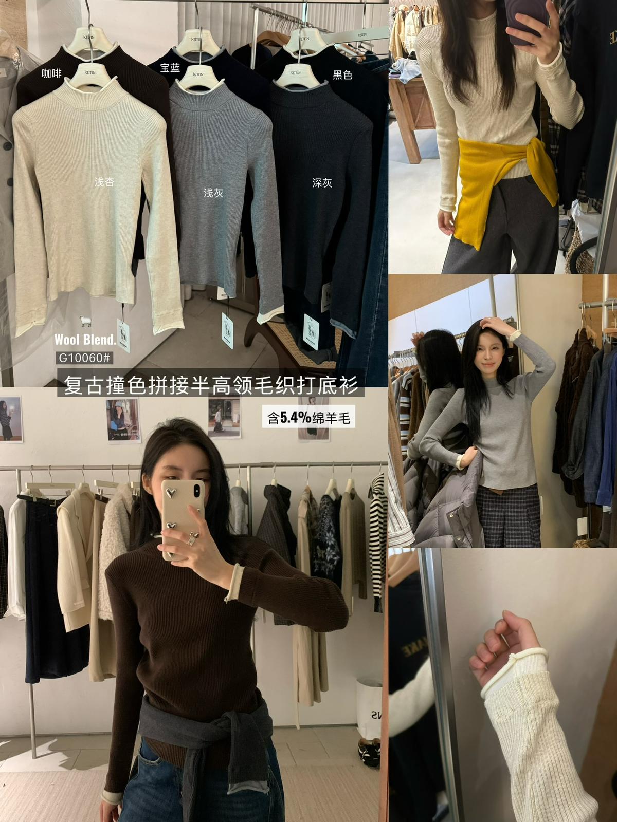【C7807】極簡風撞色拼接半高領針織打底衫(含5.4%綿羊毛)