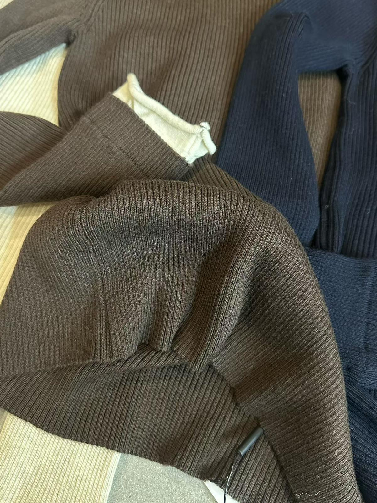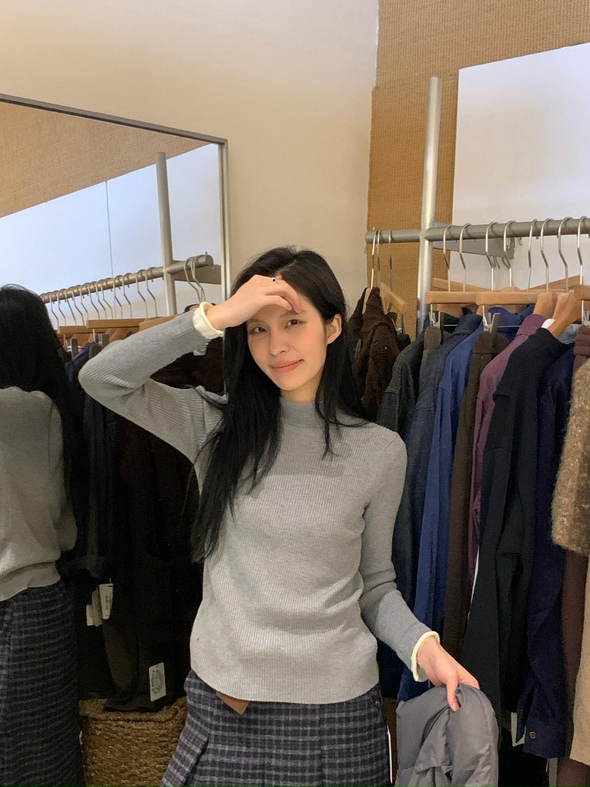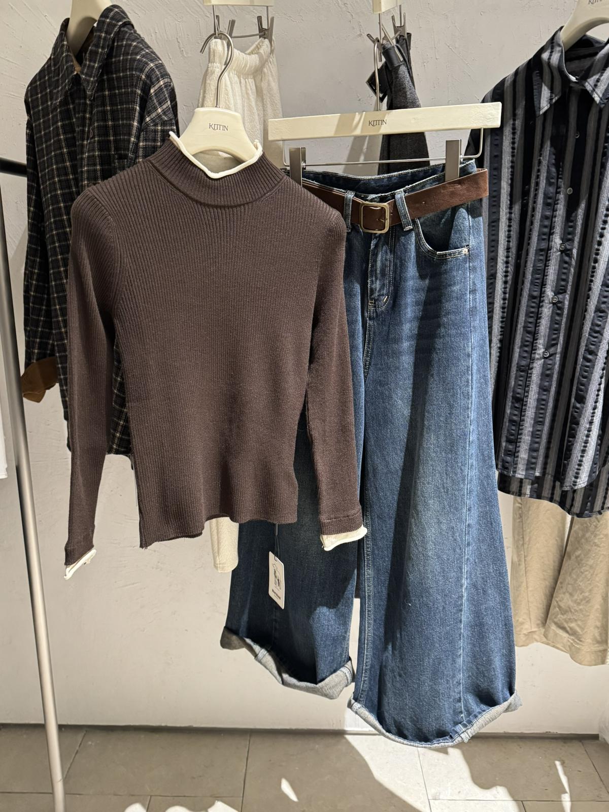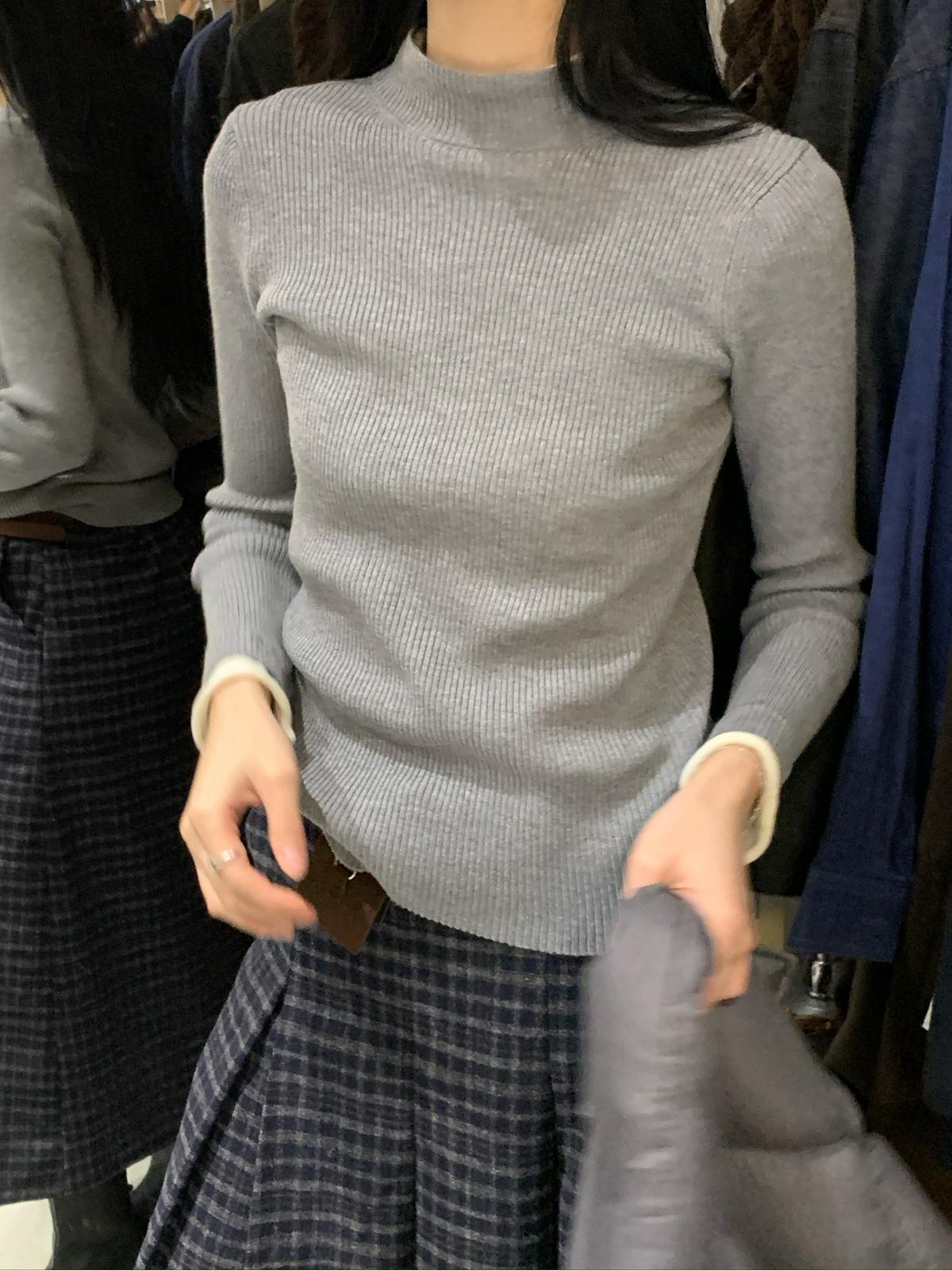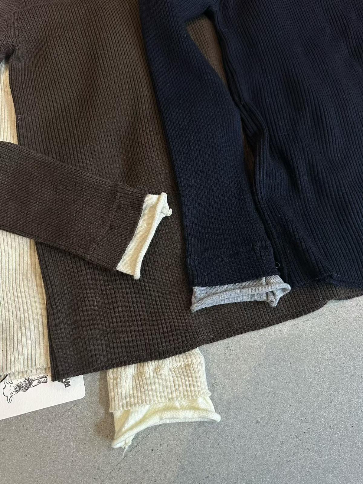 【C7807】極簡風撞色拼接半高領針織打底衫(含5.4%綿羊毛)
