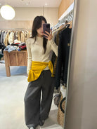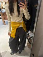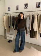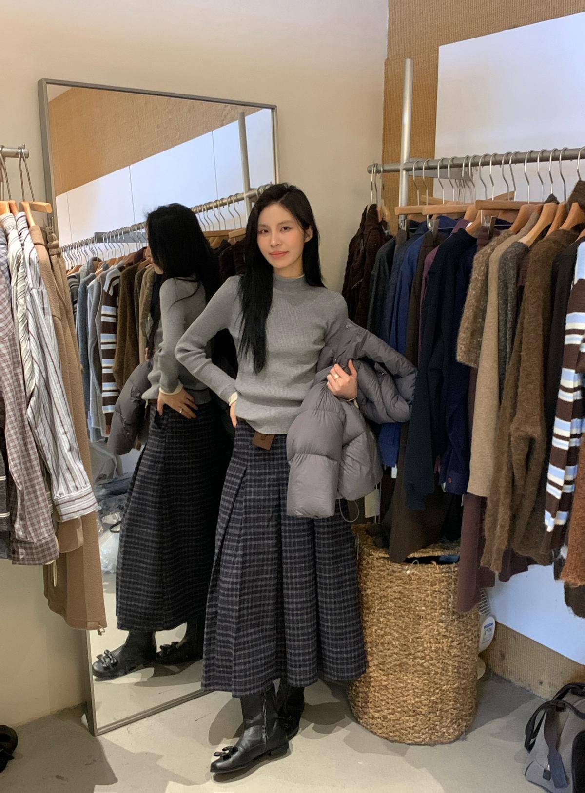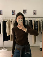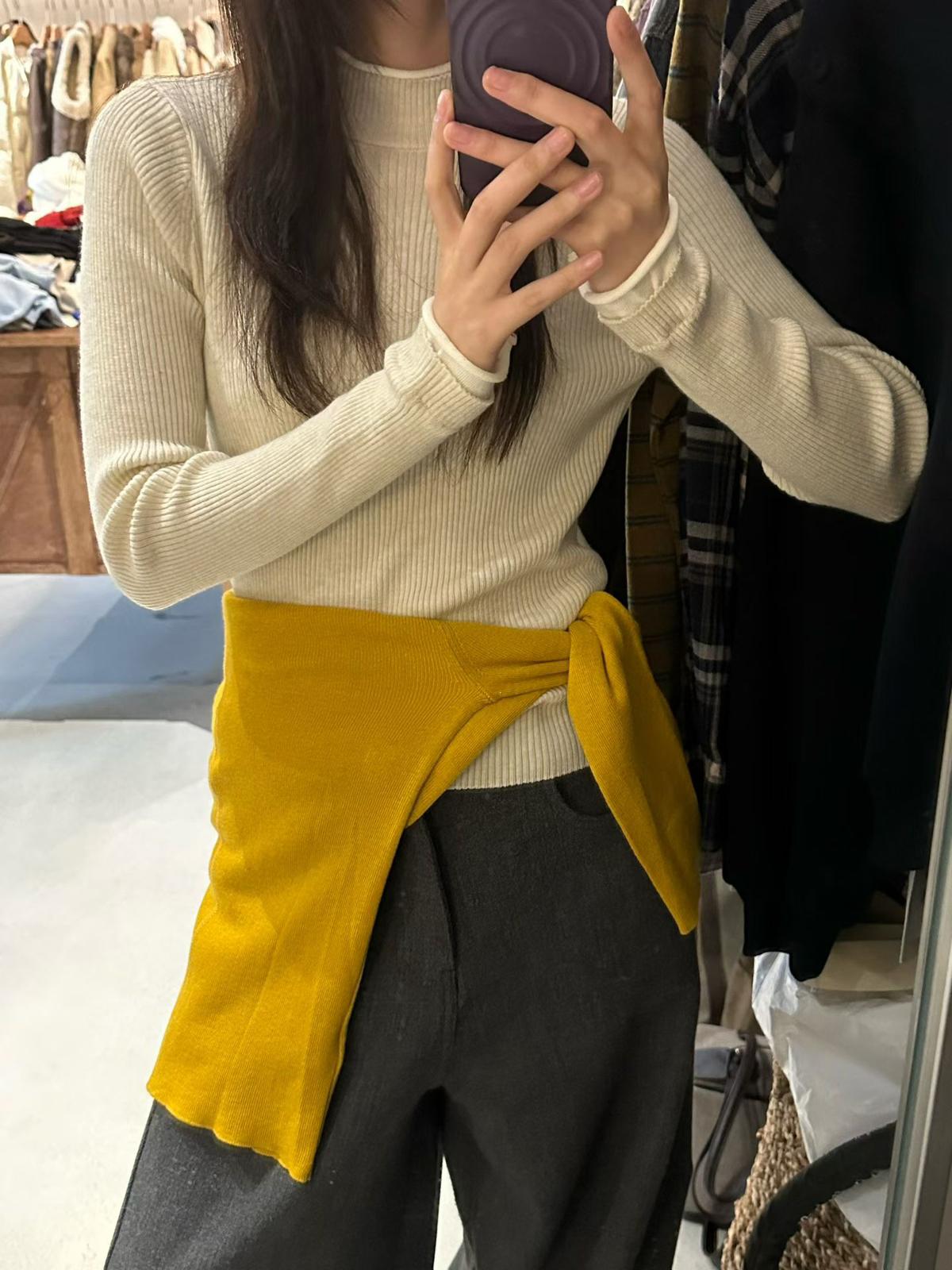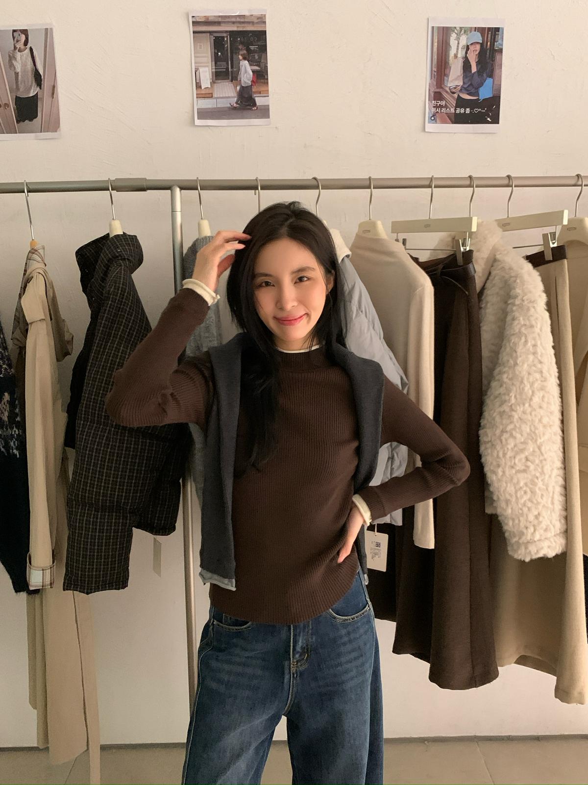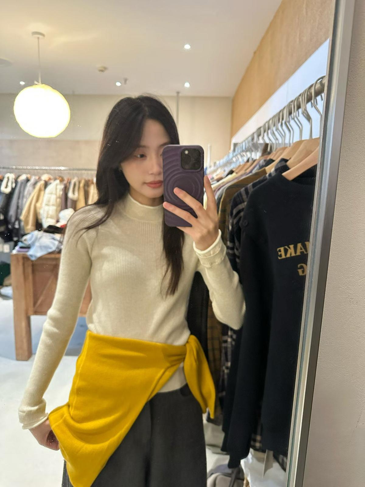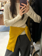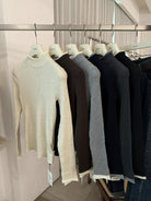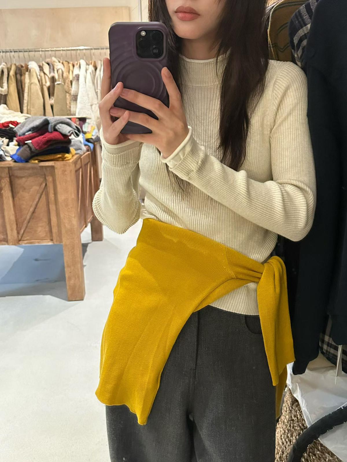 【C7807】極簡風撞色拼接半高領針織打底衫(含5.4%綿羊毛)