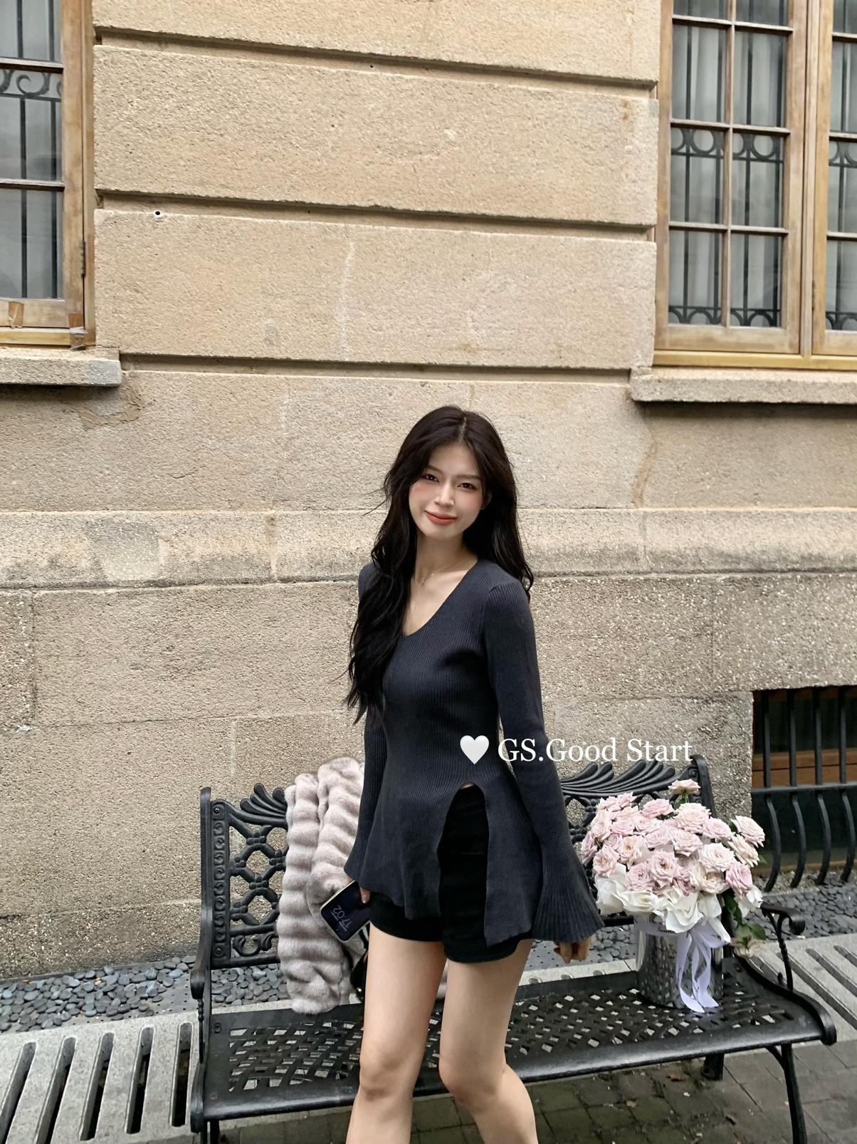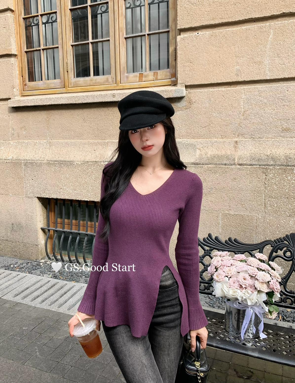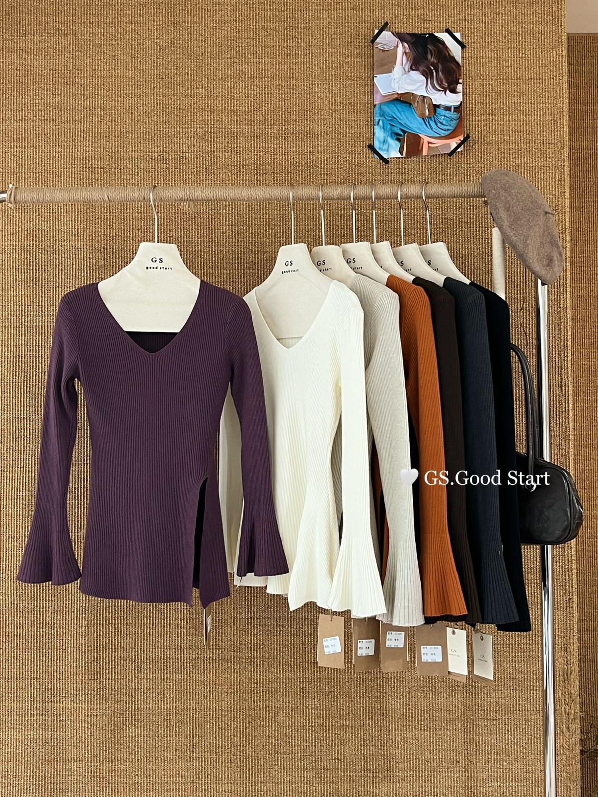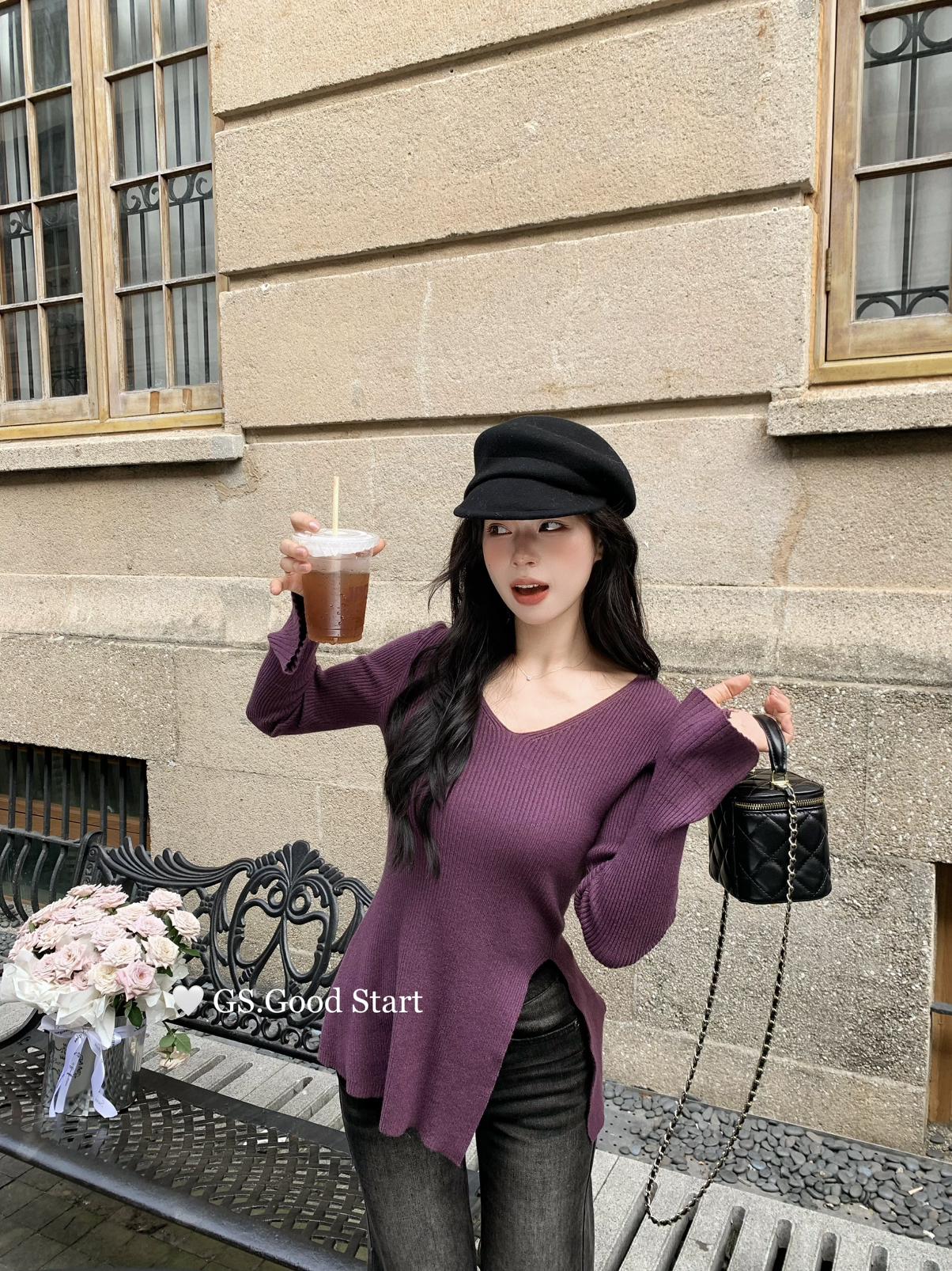 【C7809】爆賣*小腰精!秒開顯瘦濾鏡~補單王!冬氣質純欲開衩修身針織小衫