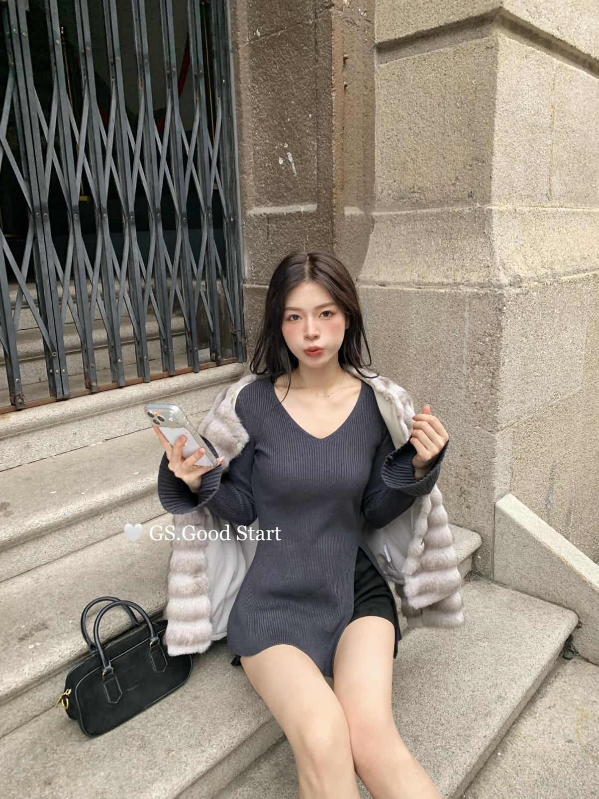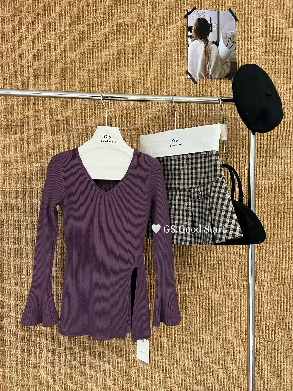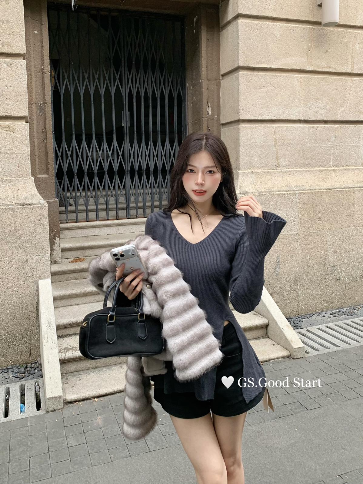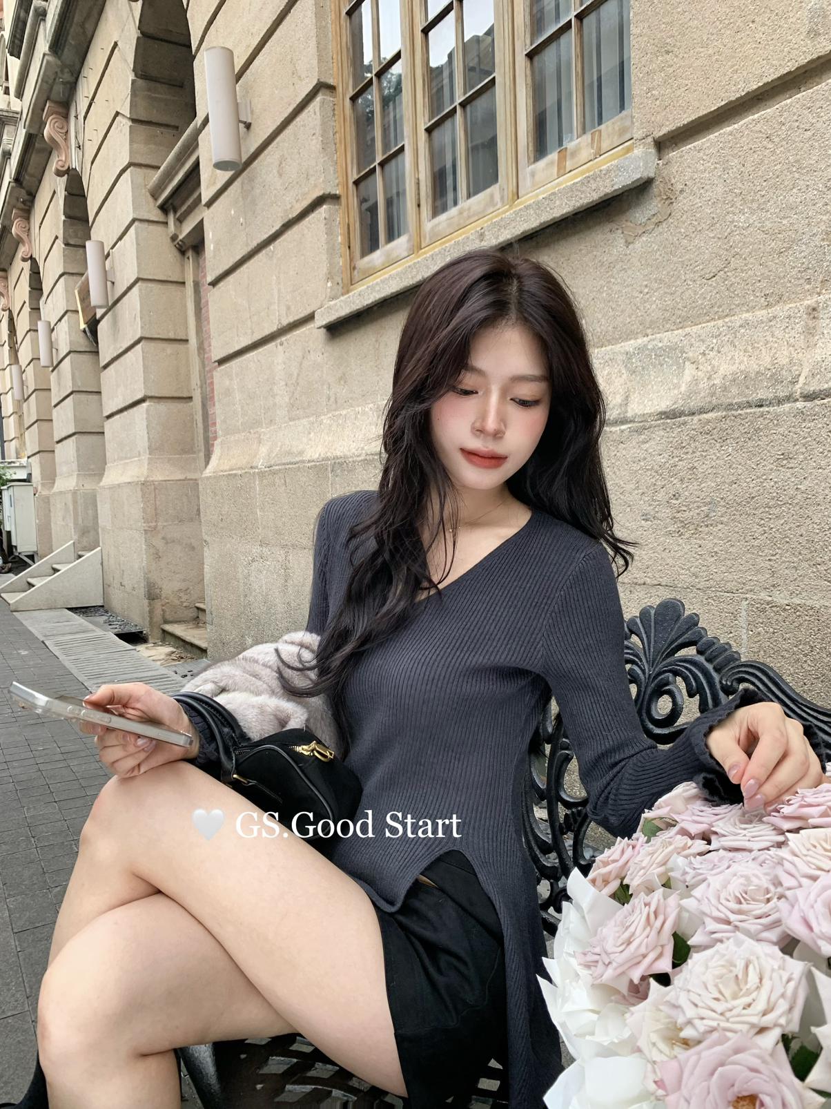 【C7809】爆賣*小腰精!秒開顯瘦濾鏡~補單王!冬氣質純欲開衩修身針織小衫