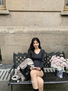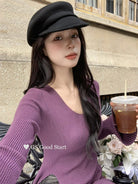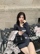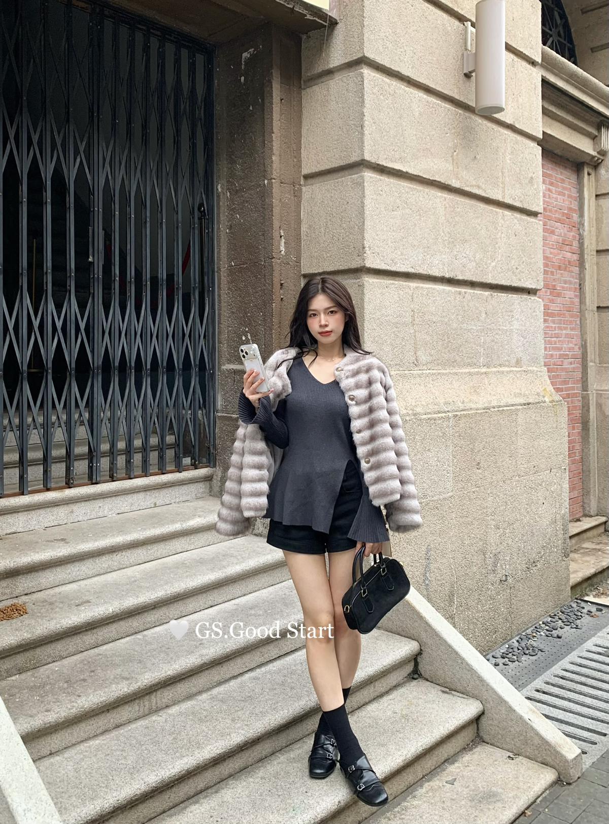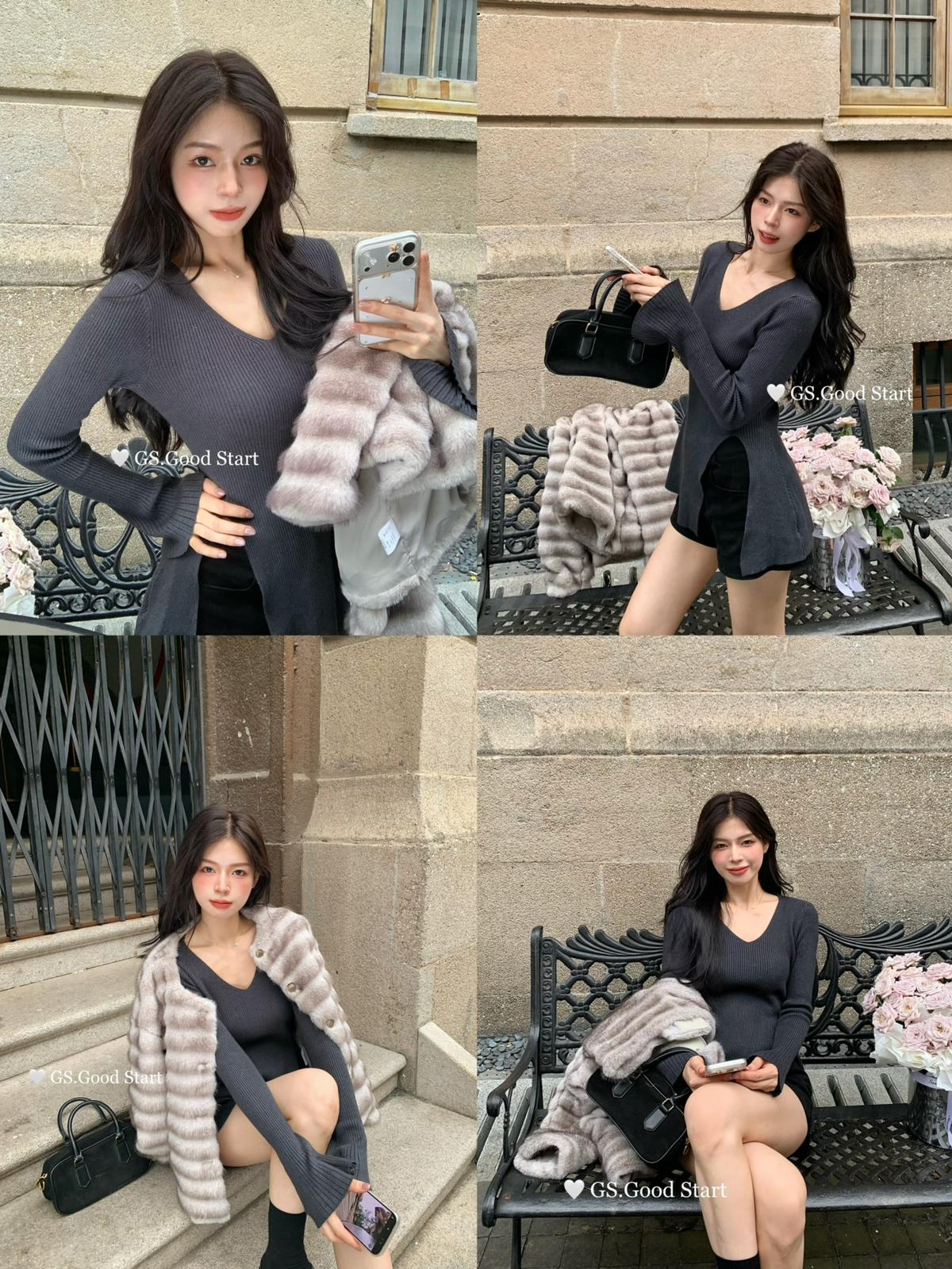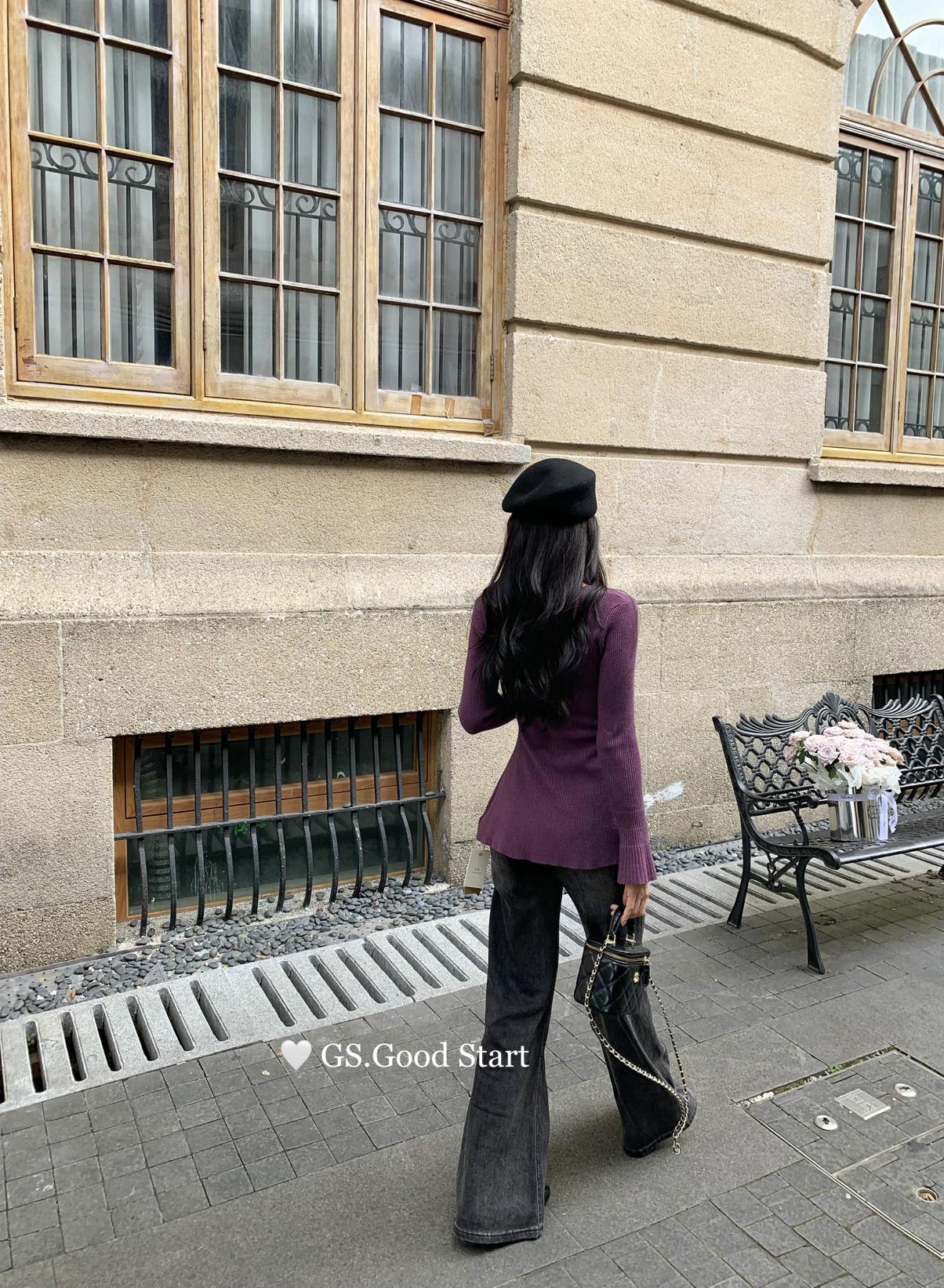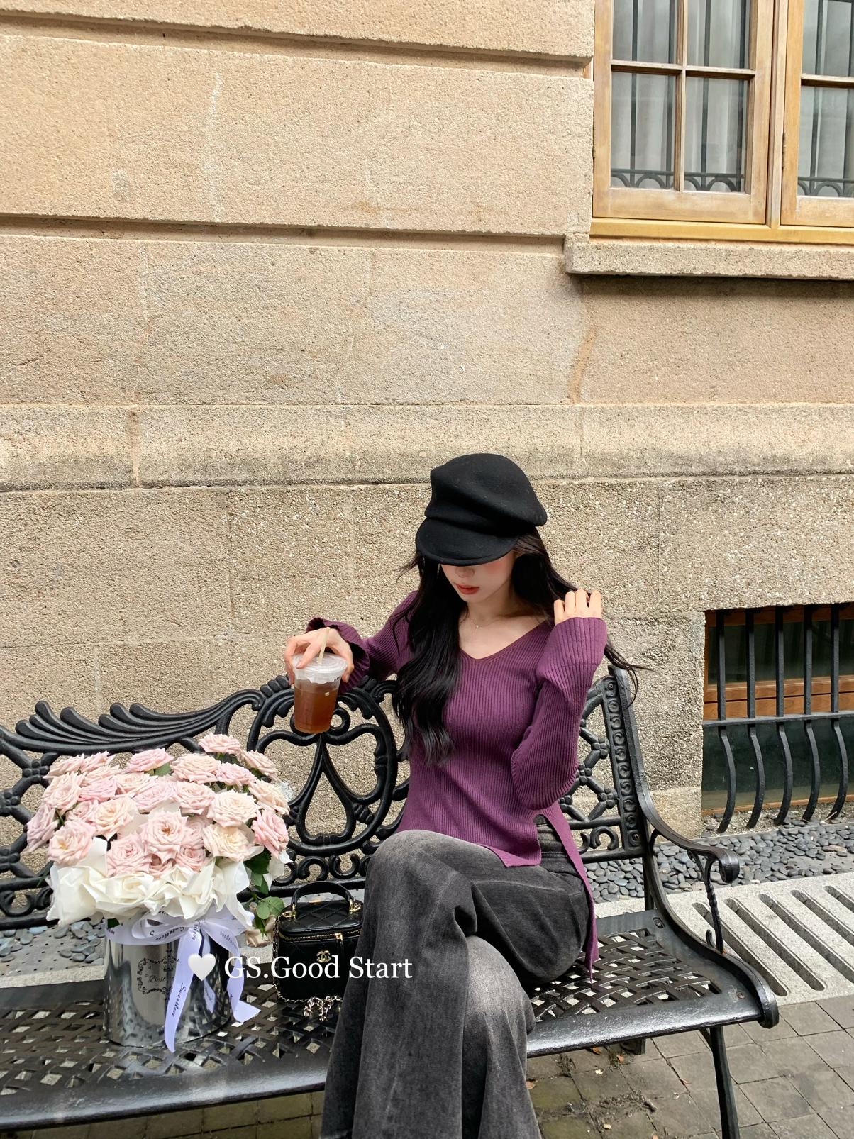 【C7809】爆賣*小腰精!秒開顯瘦濾鏡~補單王!冬氣質純欲開衩修身針織小衫
