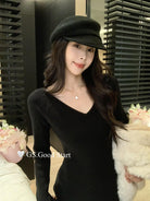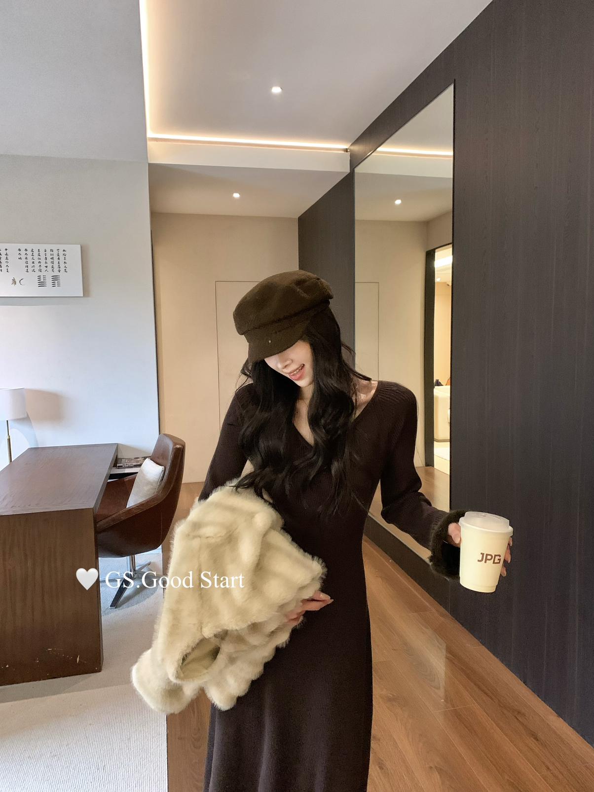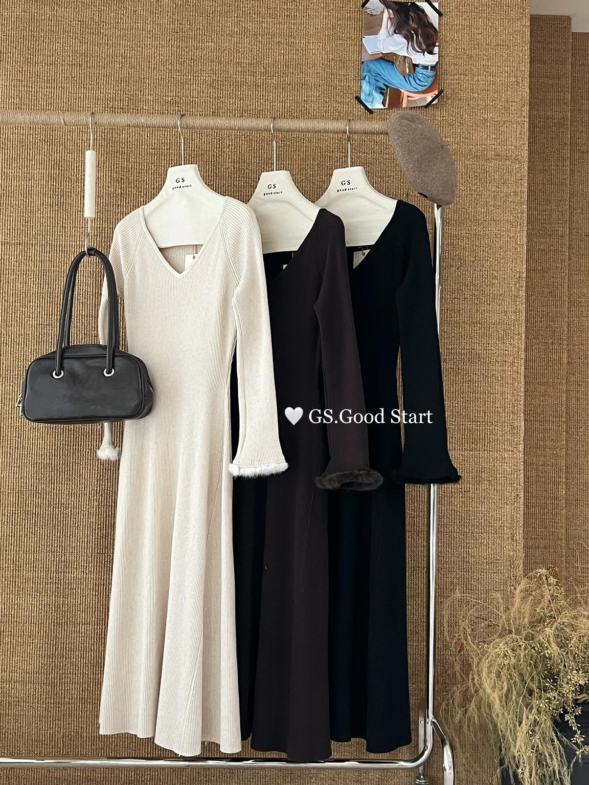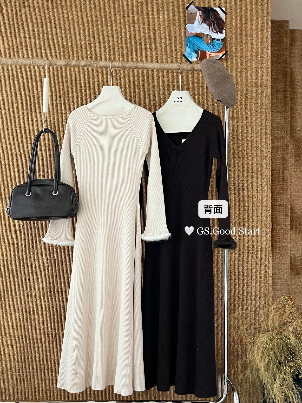 【C7812】狂安利!曼妙S曲線~絕美內搭!秋冬氣質純欲v領毛袖收腰針織連衣裙