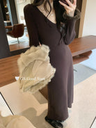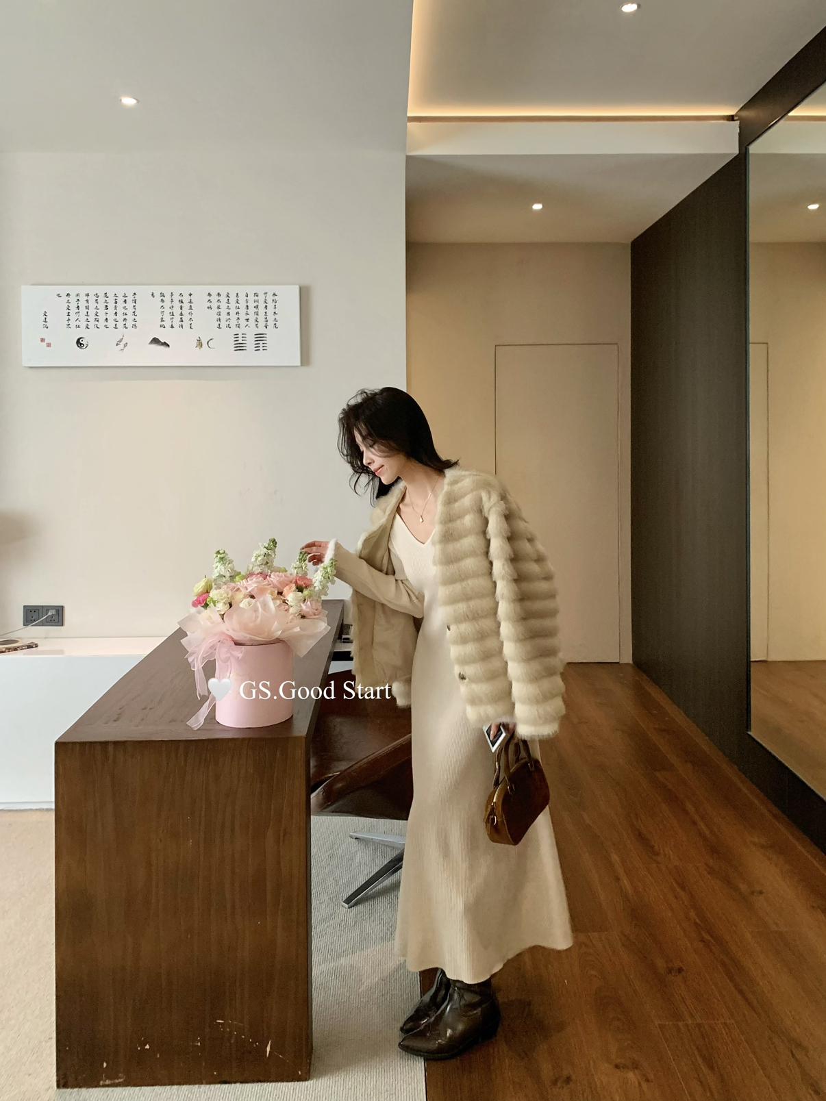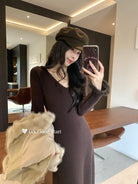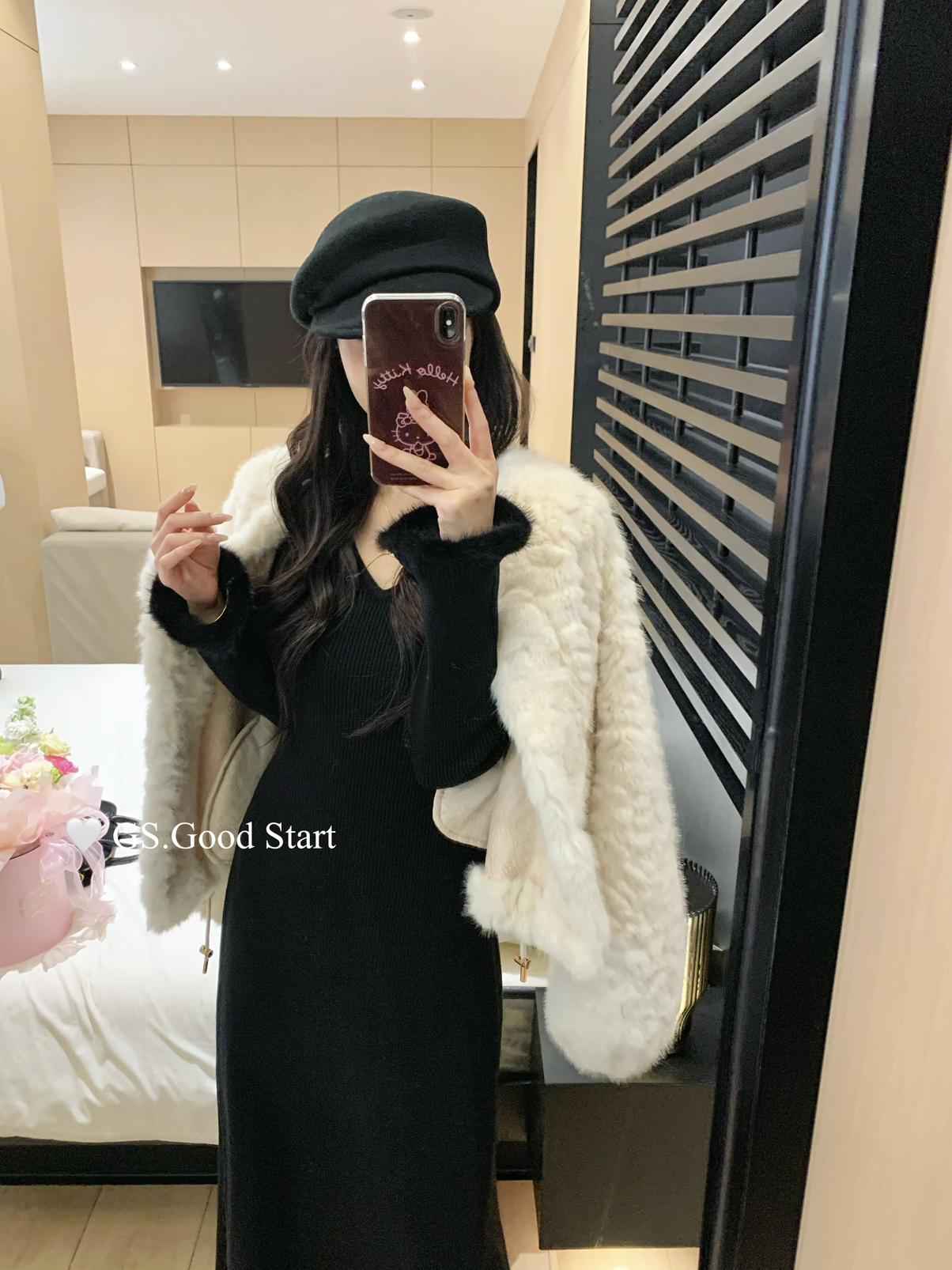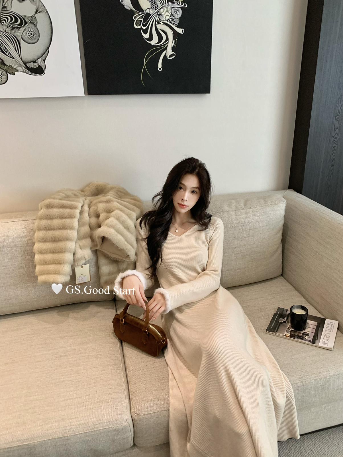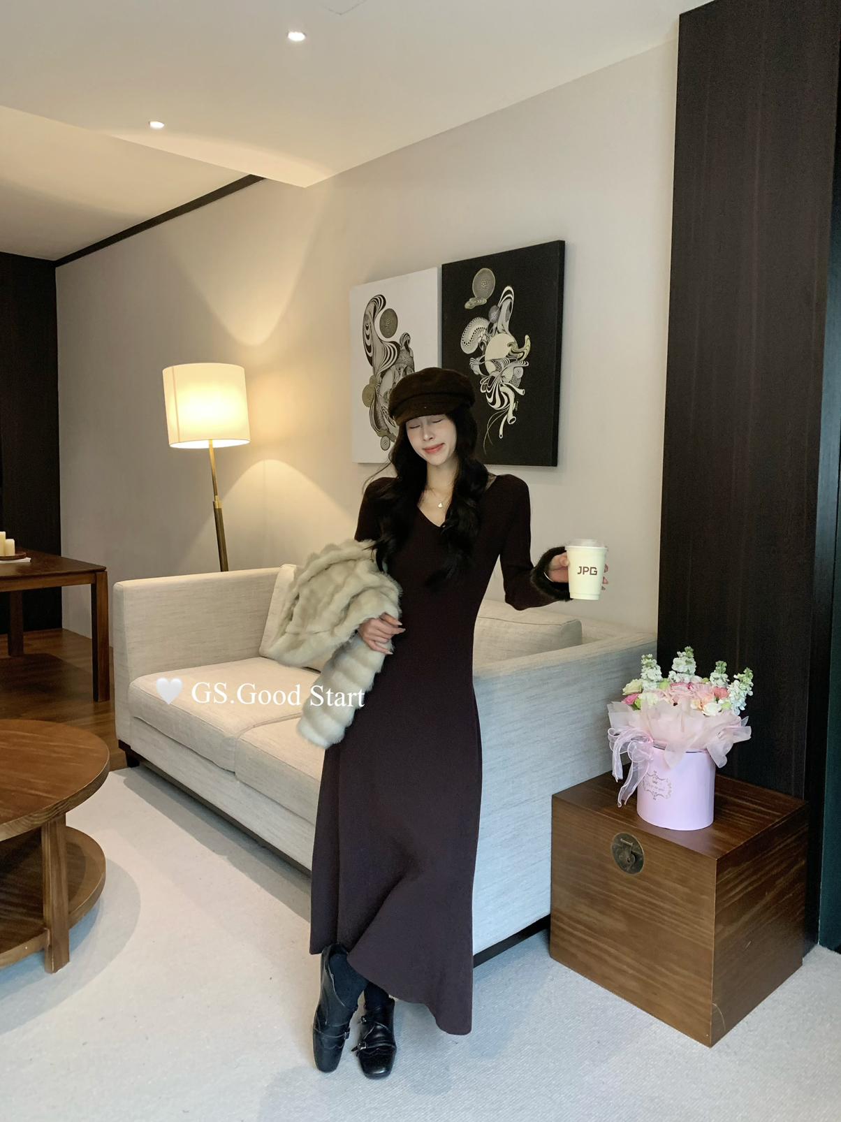 【C7812】狂安利!曼妙S曲線~絕美內搭!秋冬氣質純欲v領毛袖收腰針織連衣裙