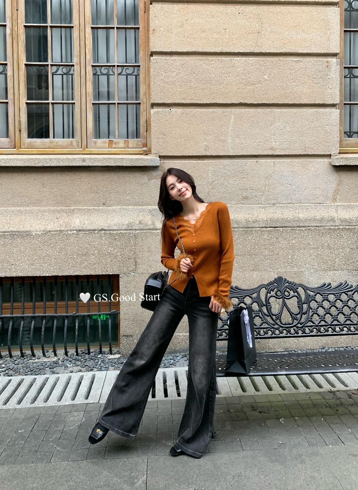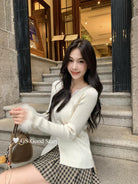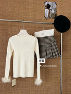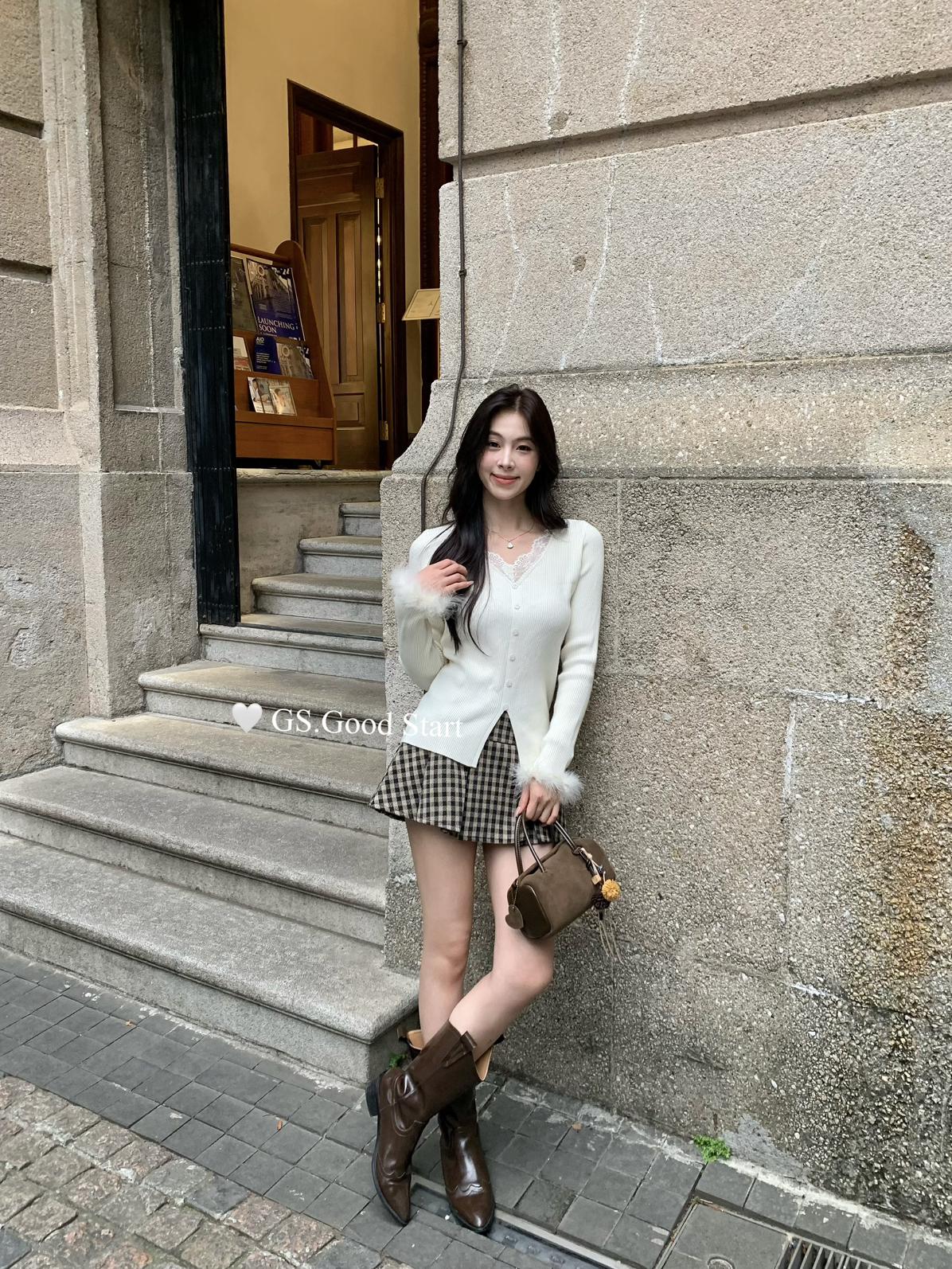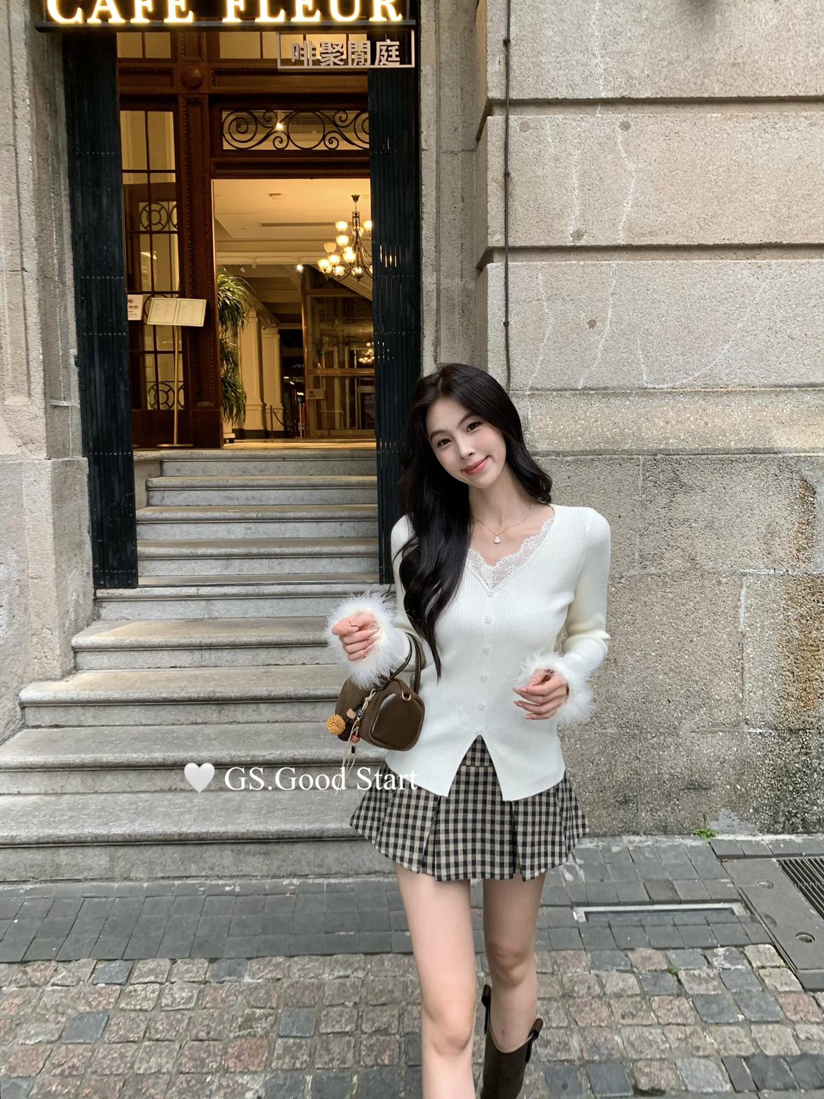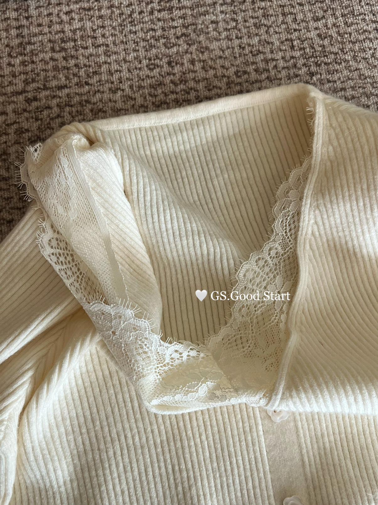【C7814】吸睛爆款!心頭愛@嬌貴千金~冬氣質純欲感蕾絲v領毛毛袖針織衫