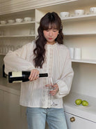 【C7815】冬上新!法式復古木耳邊長袖女開衫小衫